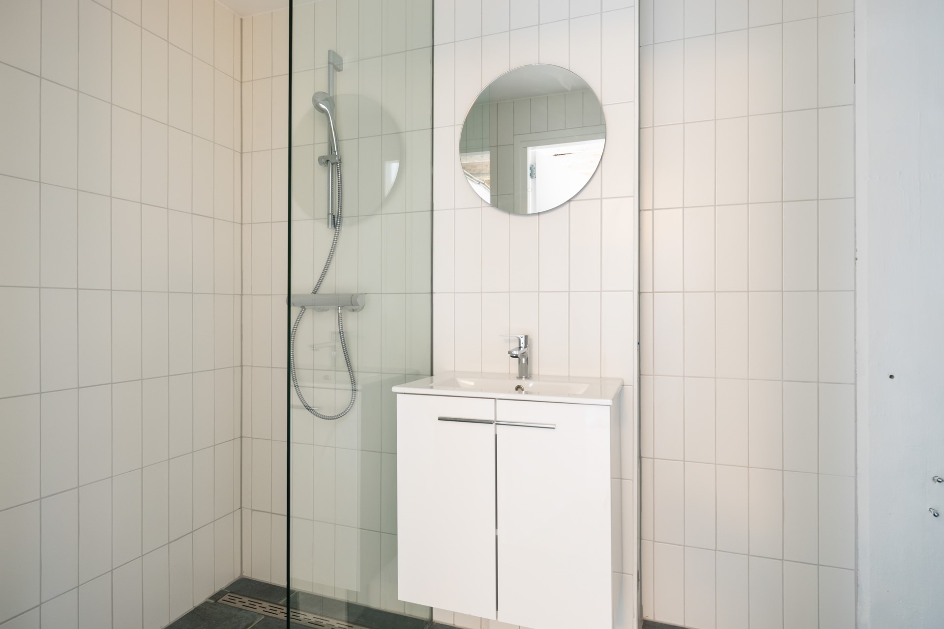 Via de entree – met berging, meterkast en trapopgang – kom je in de royale lounge: een multifunctionele ruimte die uitstekend dienst kan doen als studieplek, tv-ruimte of relaxruimte. Vanuit hier bereik je de slaapkamer vanwaar je over de lounge uitkijkt. Deze kamer biedt ruimte aan een groot bed en grenst aan zowel praktische kastruimte als een nette badkamer met douche, wastafel en toilet. Achter de trap naar dit verhoogde gedeelte bevindt zich nog een grote, verrassend ruime berging.