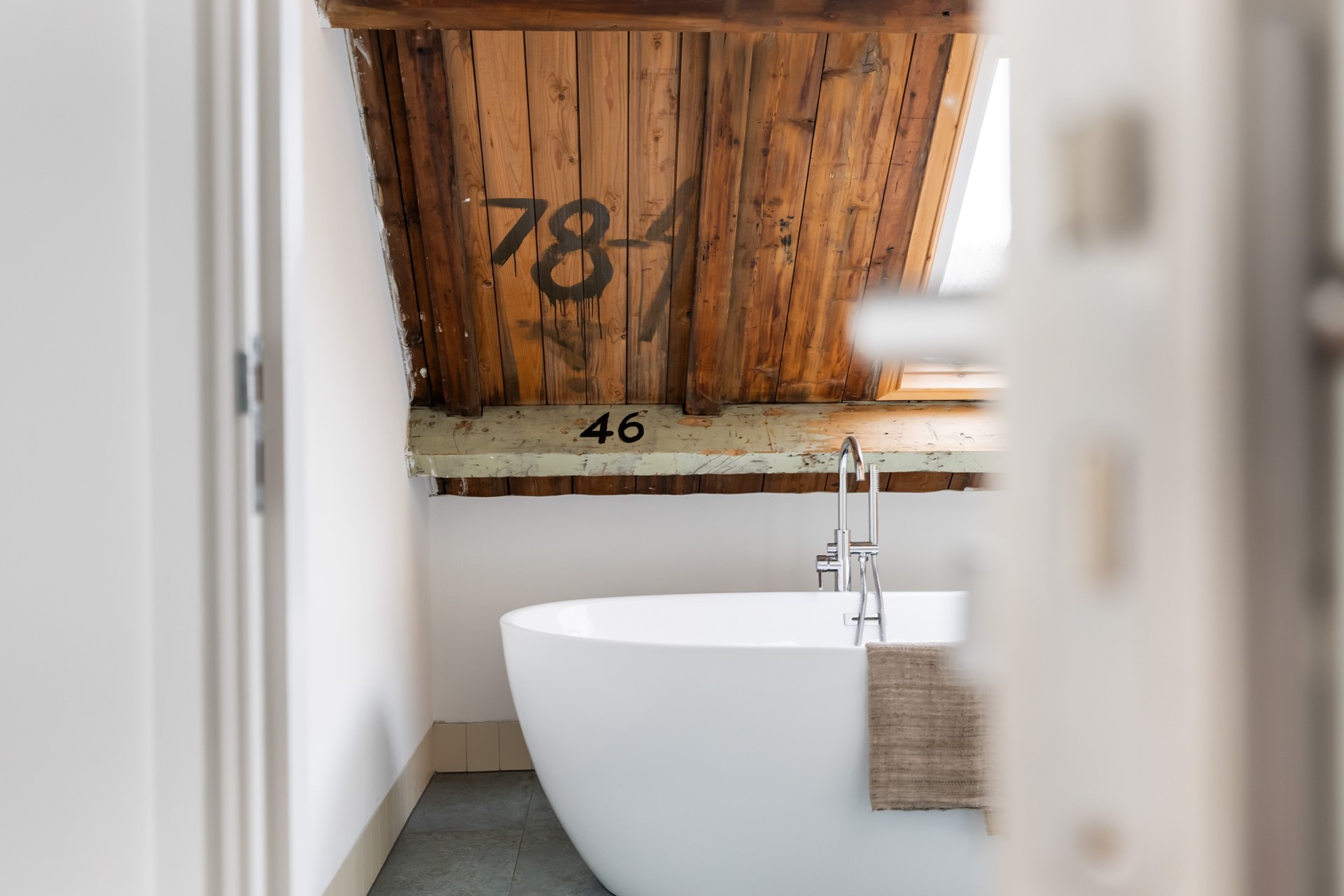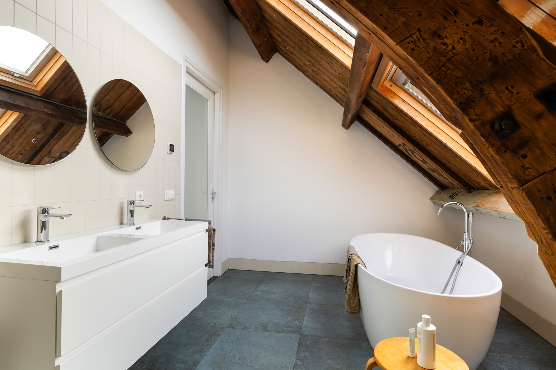 De eerste slaapkamer heeft vier dakramen en een vaste kastenwand. De tweede slaapkamer profiteert van de extra ruimte en lichtinval van de dakkapel. Aan de achterzijde bevindt zich de moderne badkamer, uitgerust met vloerverwarming, een vrijstaand ligbad, inloopdouche en dubbele wastafel. Daarnaast is er een separaat toilet.