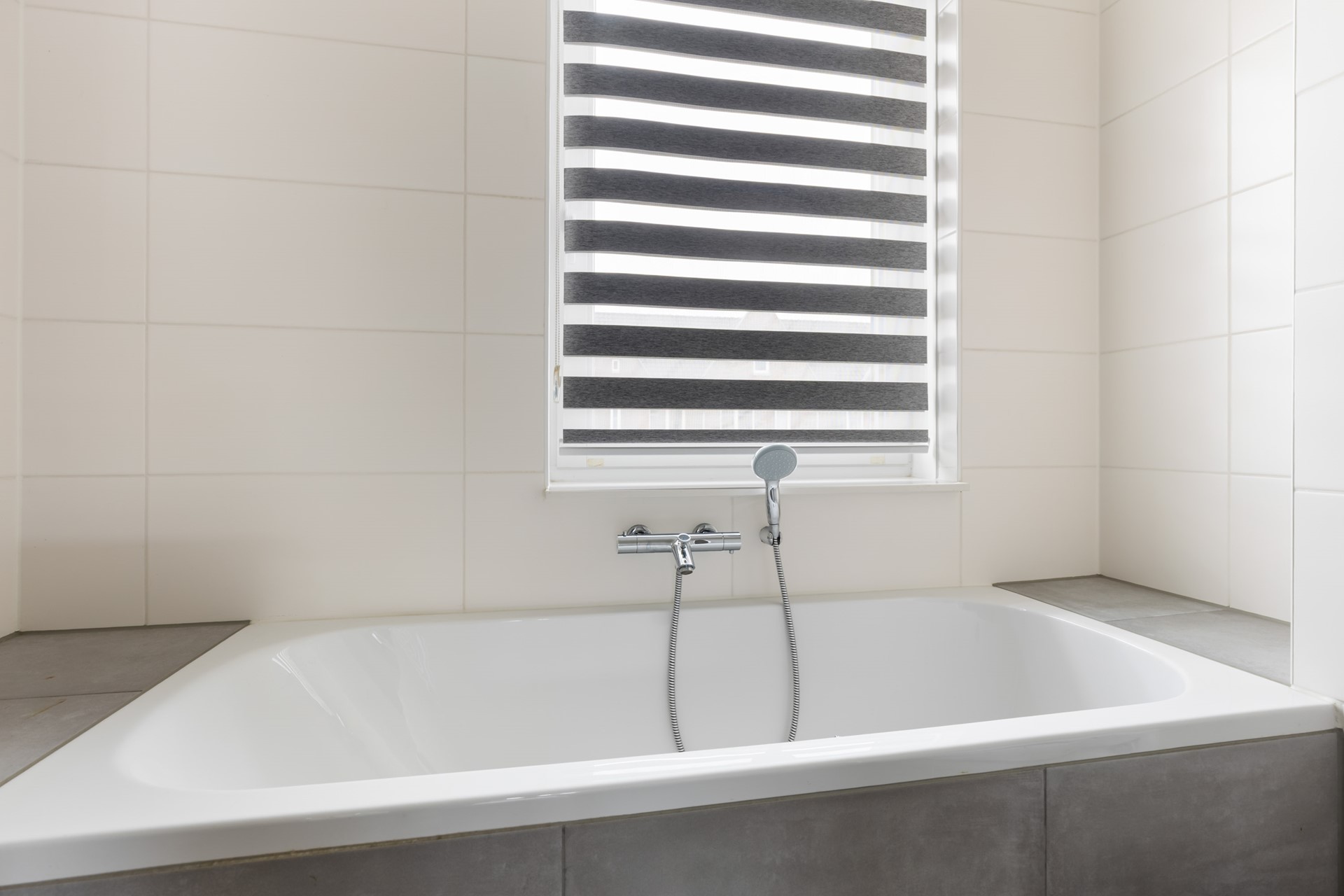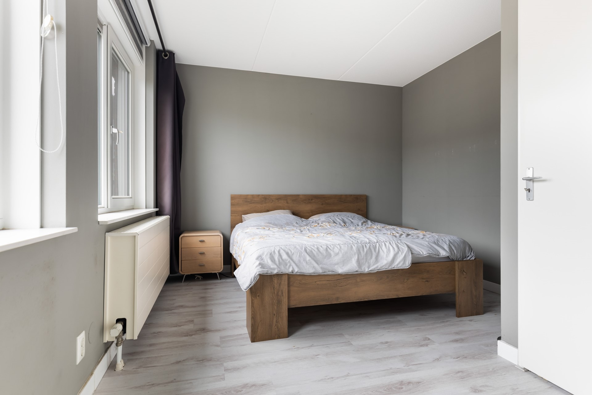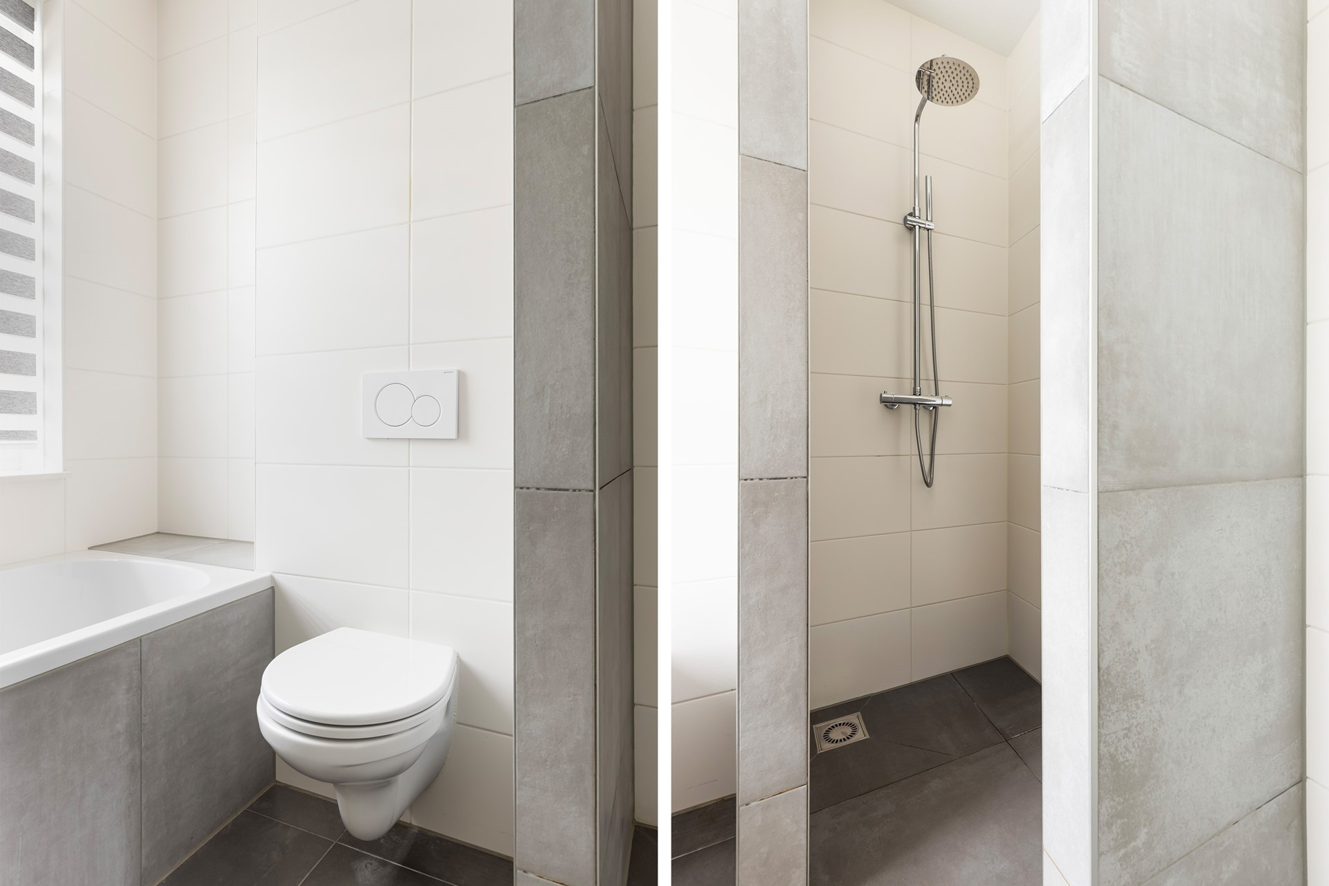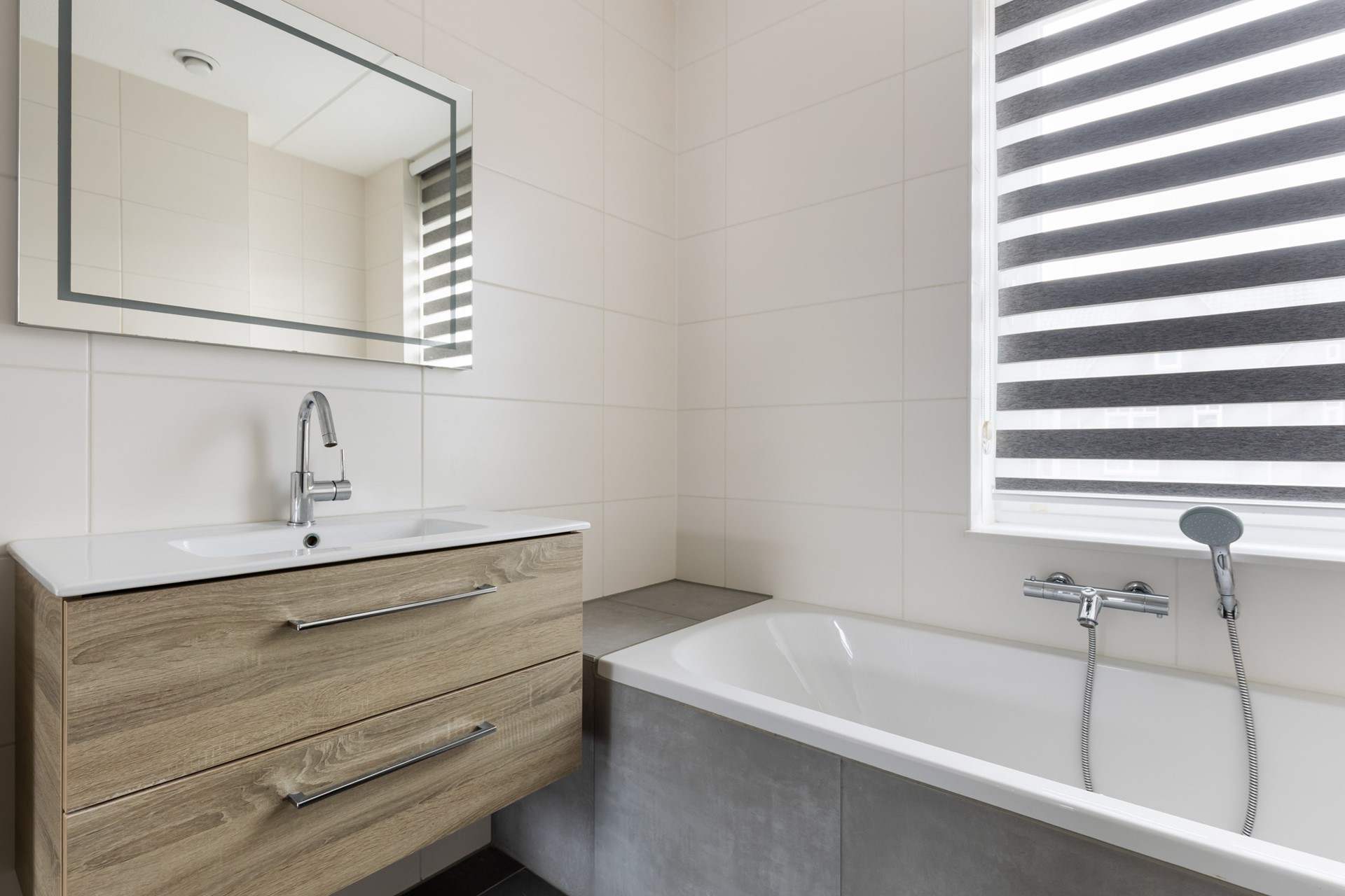 Op de eerste verdieping biedt de overloop toegang tot twee ruime slaapkamers en een moderne badkamer. De badkamer, gelegen aan de voorzijde van de woning, is strak betegeld en voorzien van een ligbad, inloopdouche, wastafelmeubel met spiegel (inclusief verlichting en verwarming) en een wandcloset. Direct naast de badkamer bevindt zich een royale en netjes afgewerkte (kinder)slaapkamer. Aan de achterzijde ligt de ouderslaapkamer, die over de volledige breedte van de woning is gesitueerd en daardoor extra ruimte biedt. Alle kamers zijn afgewerkt met een keurige vloer en beschikken over grote raampartijen, waardoor ze heerlijk licht en comfortabel aanvoelen.
