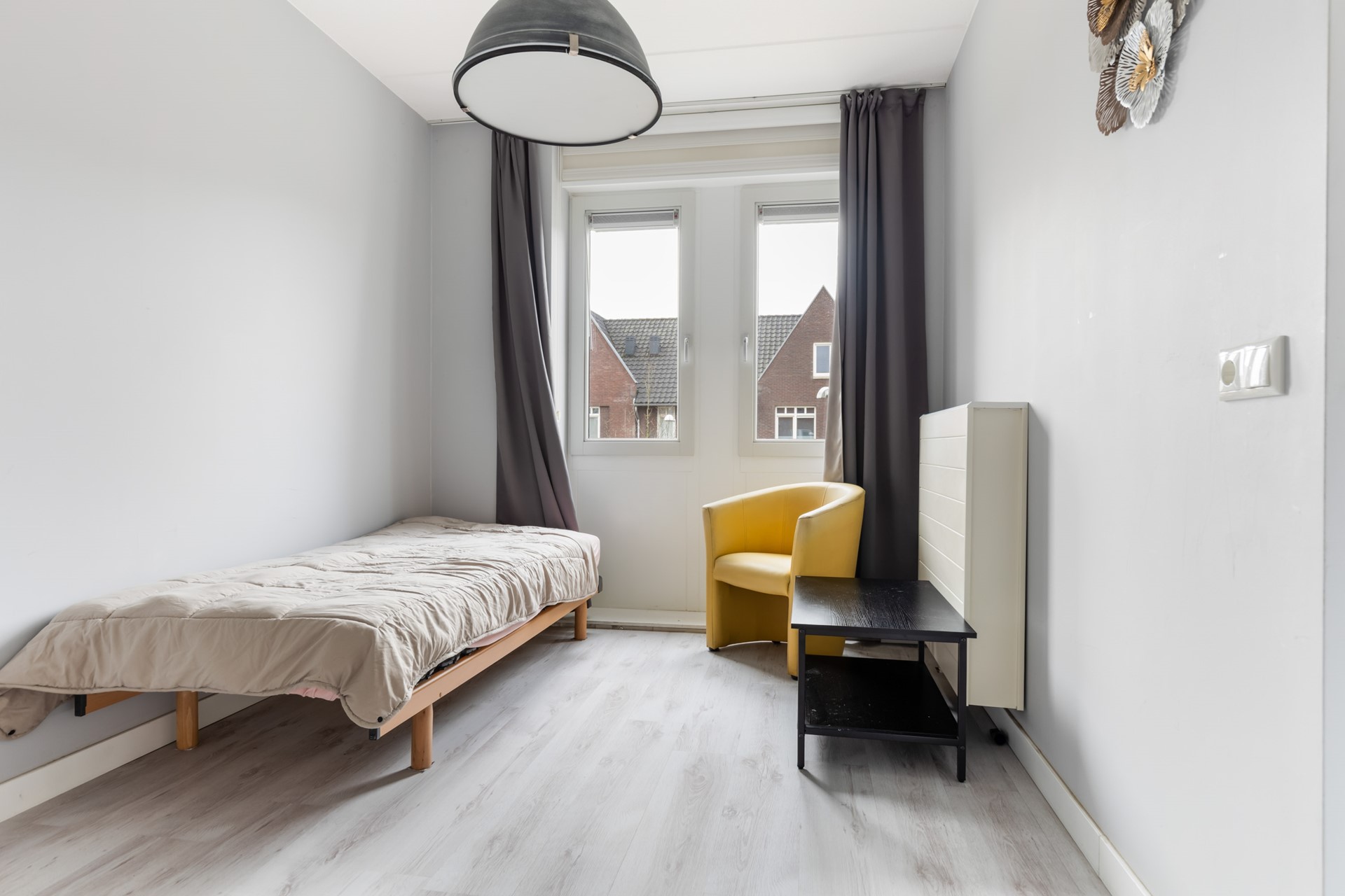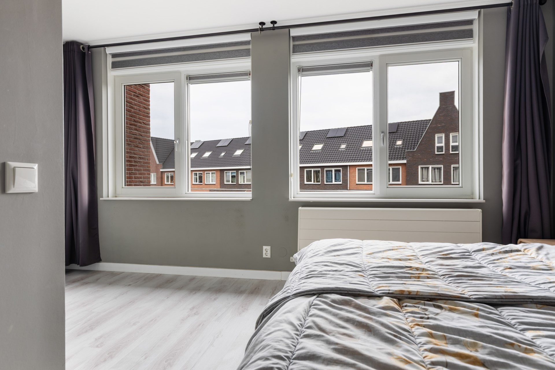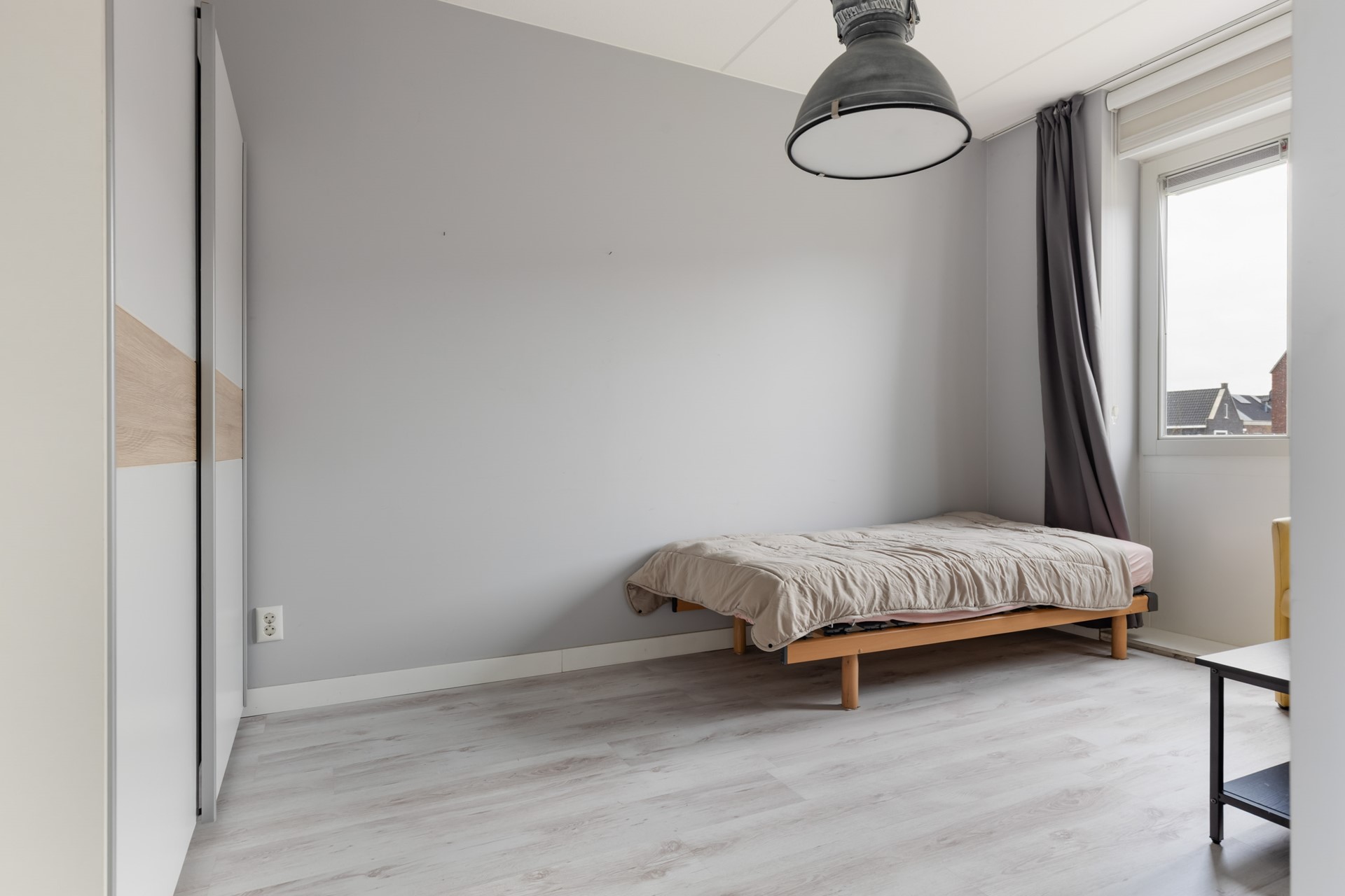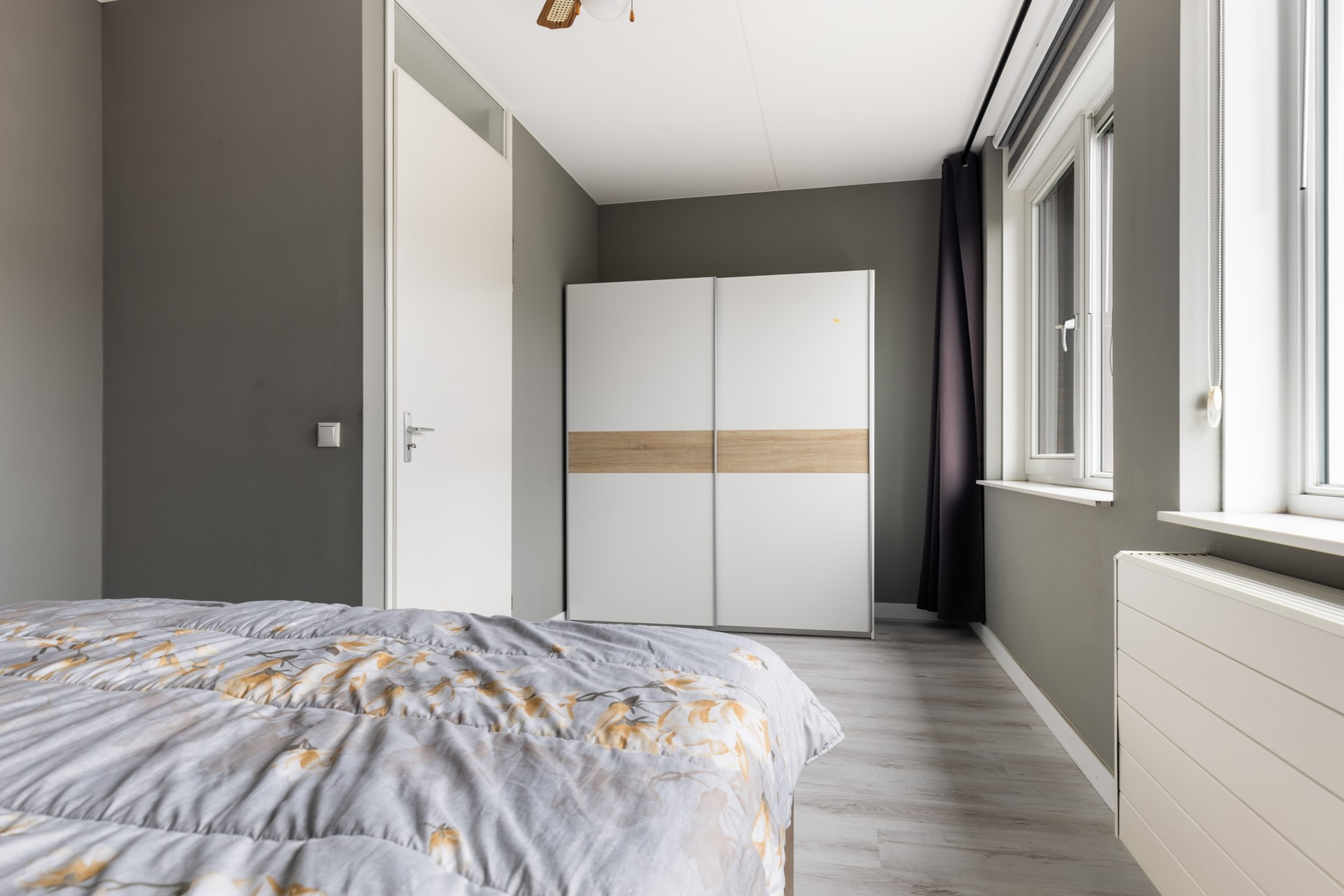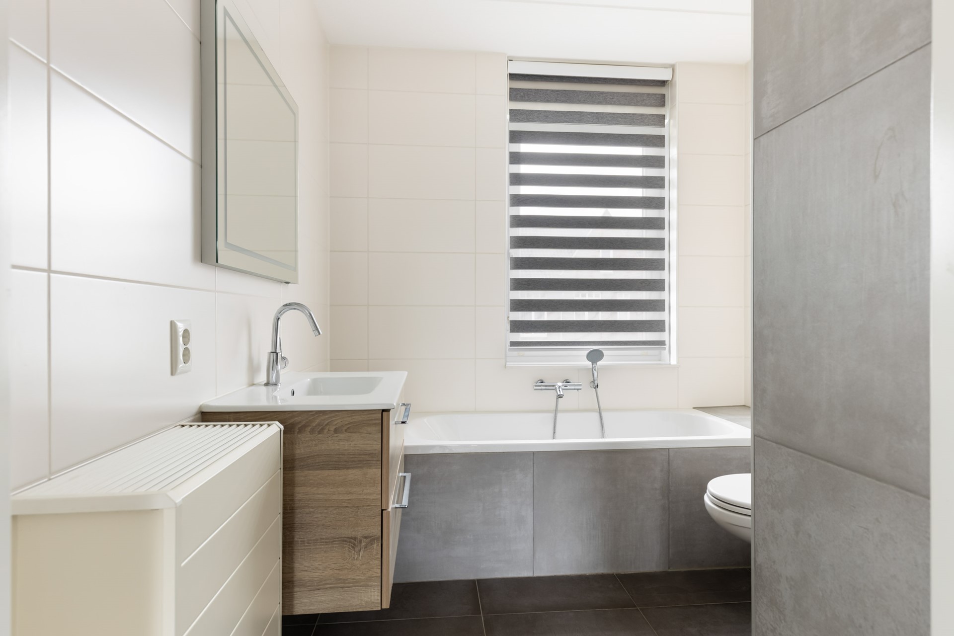 Op de eerste verdieping biedt de overloop toegang tot twee ruime slaapkamers en een moderne badkamer. De badkamer, gelegen aan de voorzijde van de woning, is strak betegeld en voorzien van een ligbad, inloopdouche, wastafelmeubel met spiegel (inclusief verlichting en verwarming) en een wandcloset. Direct naast de badkamer bevindt zich een royale en netjes afgewerkte (kinder)slaapkamer. Aan de achterzijde ligt de ouderslaapkamer, die over de volledige breedte van de woning is gesitueerd en daardoor extra ruimte biedt. Alle kamers zijn afgewerkt met een keurige vloer en beschikken over grote raampartijen, waardoor ze heerlijk licht en comfortabel aanvoelen.