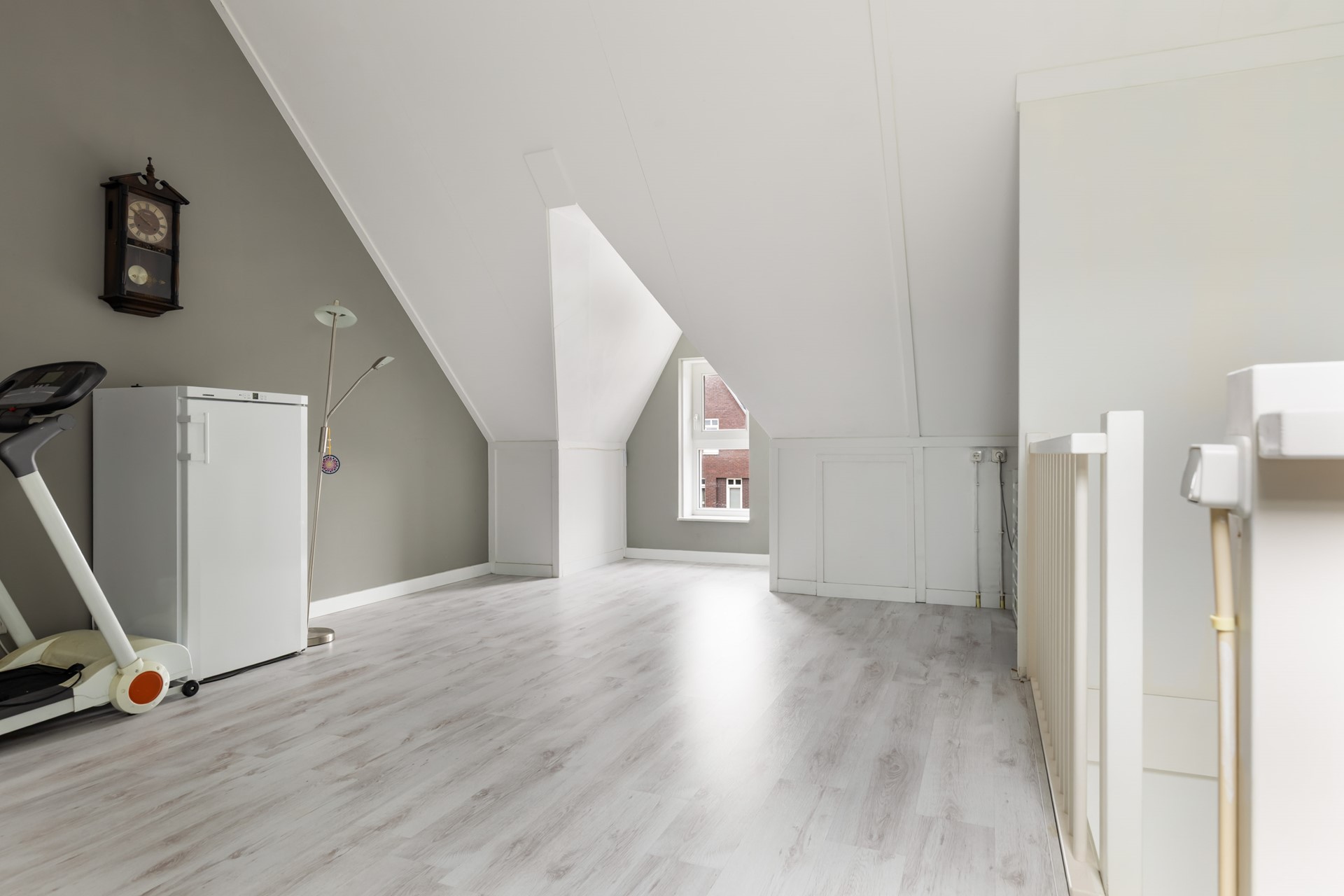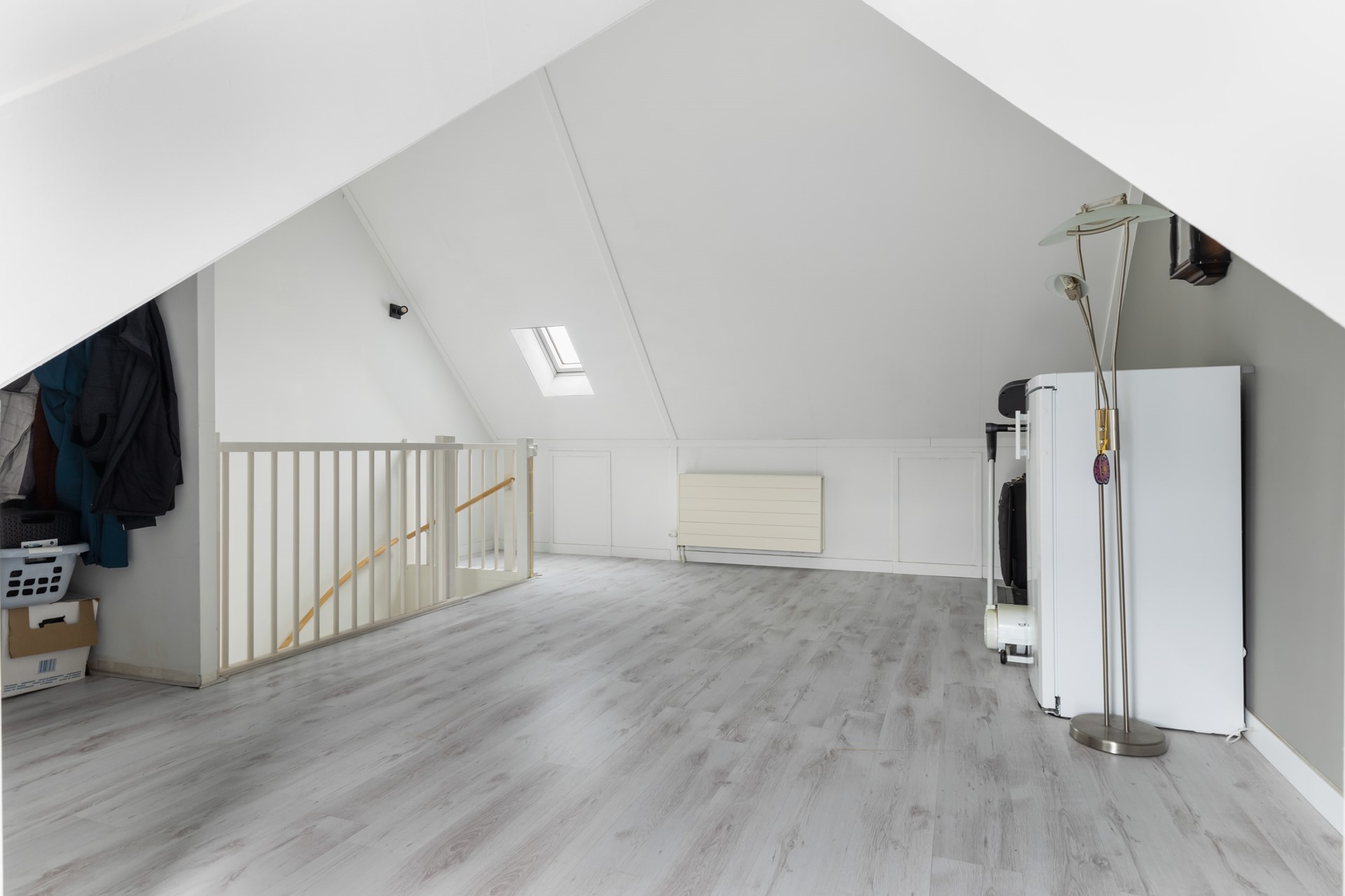Via een vaste trap bereik je de tweede verdieping, waar een royale zolderverdieping is. Dankzij de verhoogde nok aan de voorzijde voelt deze ruimte extra ruim aan. De zolder is uitstekend geschikt als extra slaapkamer, werkkamer of hobbyruimte. Daarnaast vind je hier de aansluitingen voor wasmachine en droger, de cv-installatie (Intergas 2017) en de mechanische ventilatie-unit. Onder de schuine kanten is praktische bergruimte aanwezig. Momenteel biedt deze open ruimte volop mogelijkheden om meerdere extra slaapkamers te realiseren.