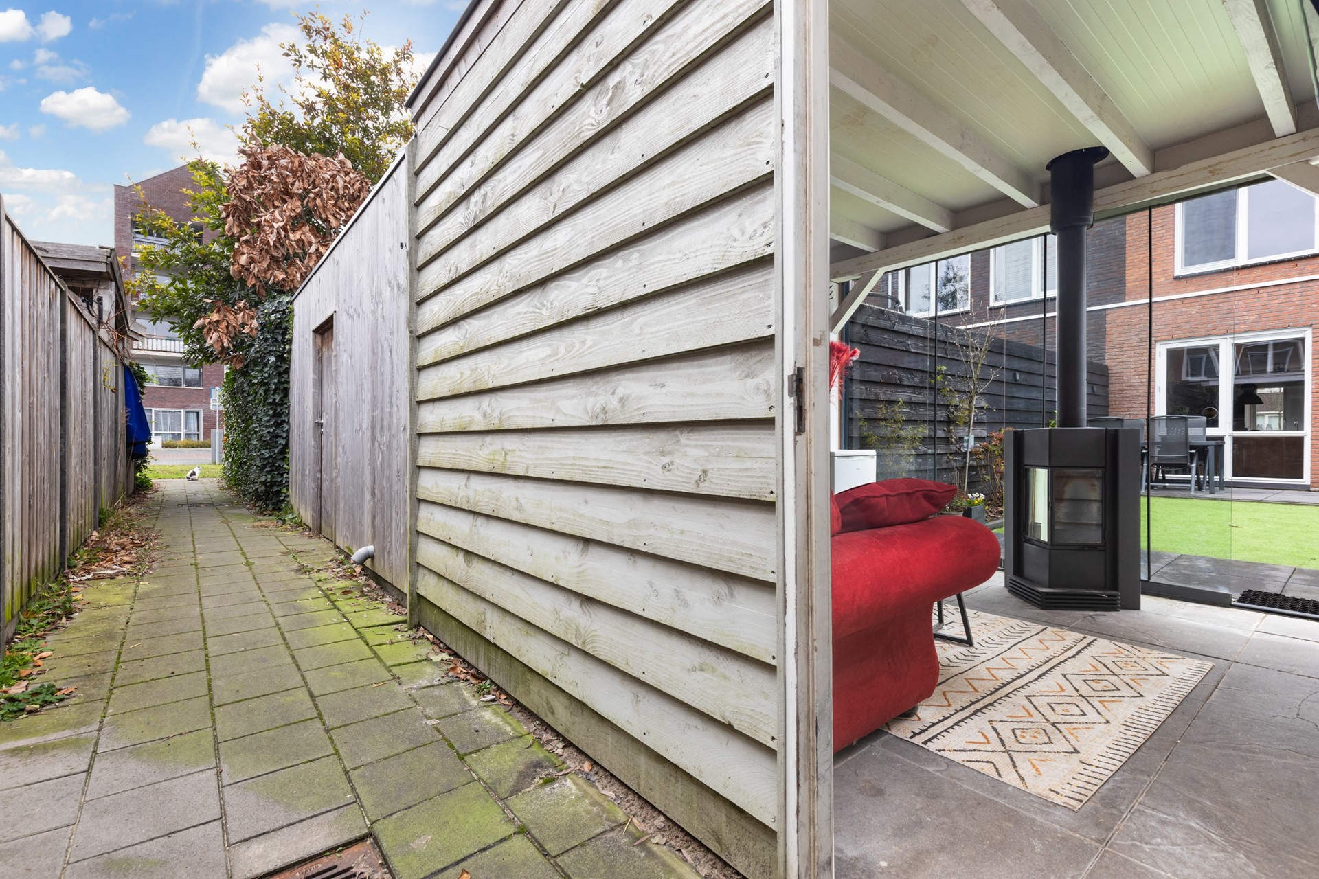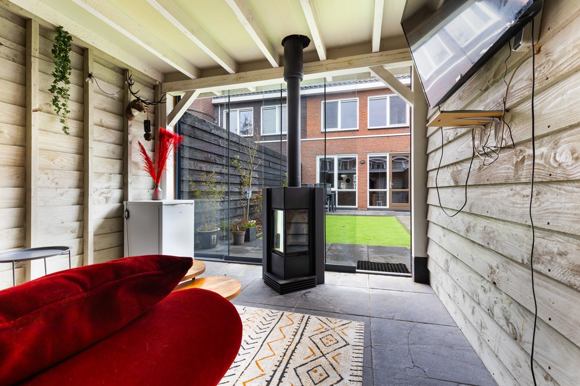 De achtertuin is fraai aangelegd met een combinatie van terras, kunstgazon en een kleurrijke plantenborder. Achterin de tuin vind je een veranda met glazen pui en een gezellige houtkachel, evenals een houten berging met elektra – perfect voor fietsen en tuingereedschap. Dankzij de verschillende zitplekken, zowel in de zon als overkapt, kun je op elk moment van de dag optimaal van het buitenleven genieten. In de wijk zijn bovendien voldoende parkeerplaatsen en speelgelegenheden aanwezig, waardoor dit een ideale woonlocatie is voor jou en je gezin.
