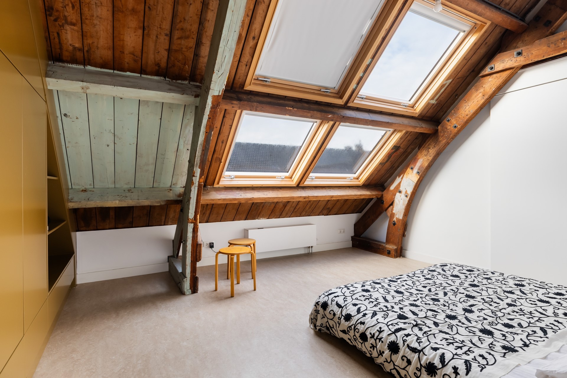 De eerste slaapkamer heeft vier dakramen en een vaste kastenwand. De tweede slaapkamer profiteert van de extra ruimte en lichtinval van de dakkapel. Aan de achterzijde bevindt zich de moderne badkamer, uitgerust met vloerverwarming, een vrijstaand ligbad, inloopdouche en dubbele wastafel. Daarnaast is er een separaat toilet.