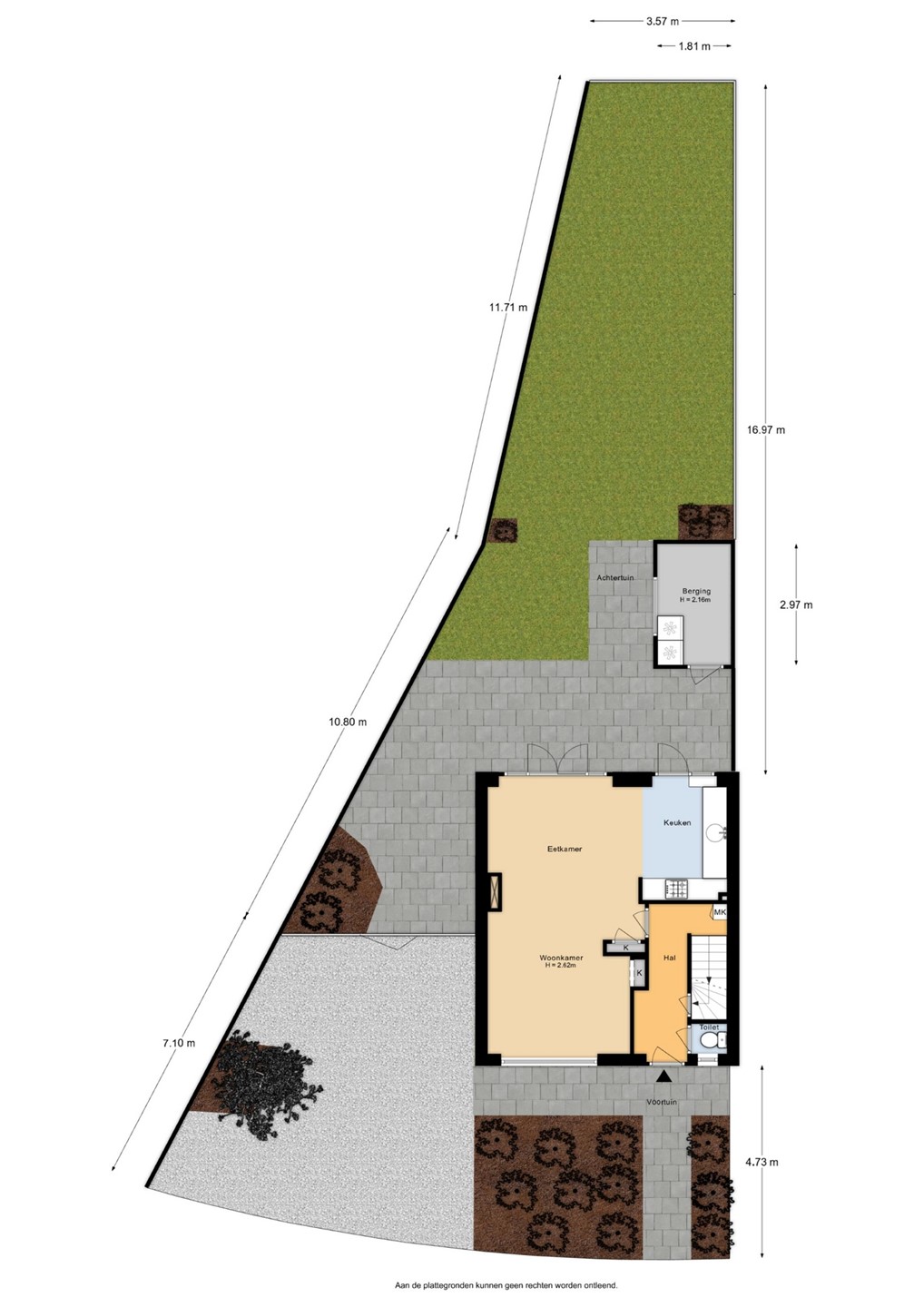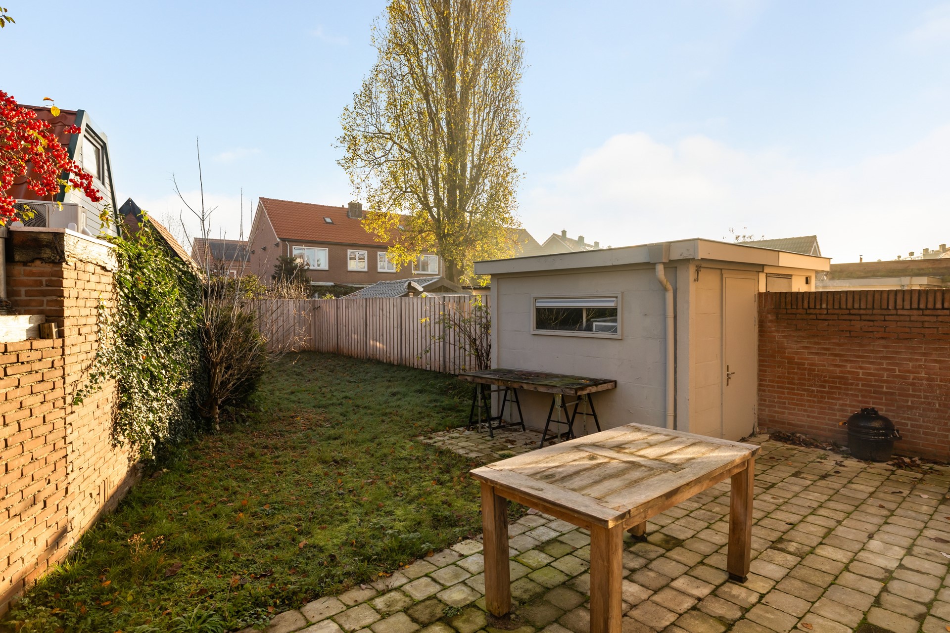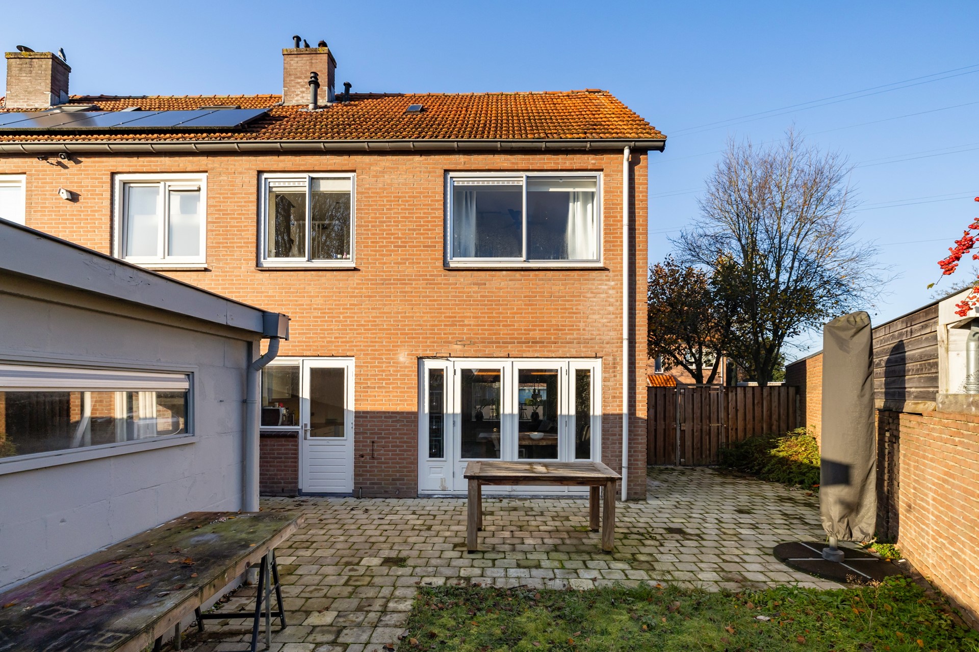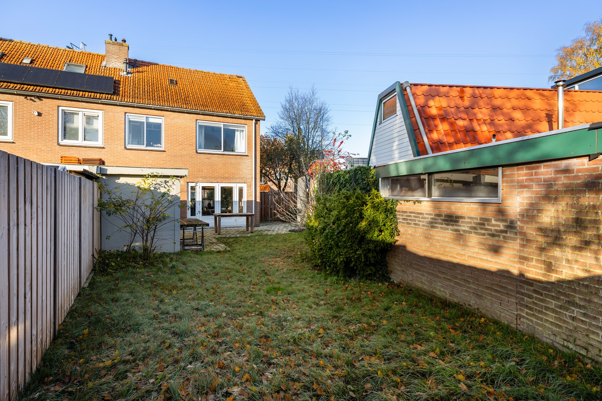 De diepe achtertuin is een van de grootste pluspunten van deze hoekwoning. Met het bestraatte terras en het gazon is er volop ruimte om heerlijk buiten te zitten en te genieten van het mooie weer. Daarnaast is er een praktische stenen berging aanwezig en is de tuin ook via de zijzijde van de woning bereikbaar. Aan de voorzijde beschikt de woning over een royale oprit, wat het parkeren van meerdere auto’s op eigen terrein zeer gemakkelijk maakt.