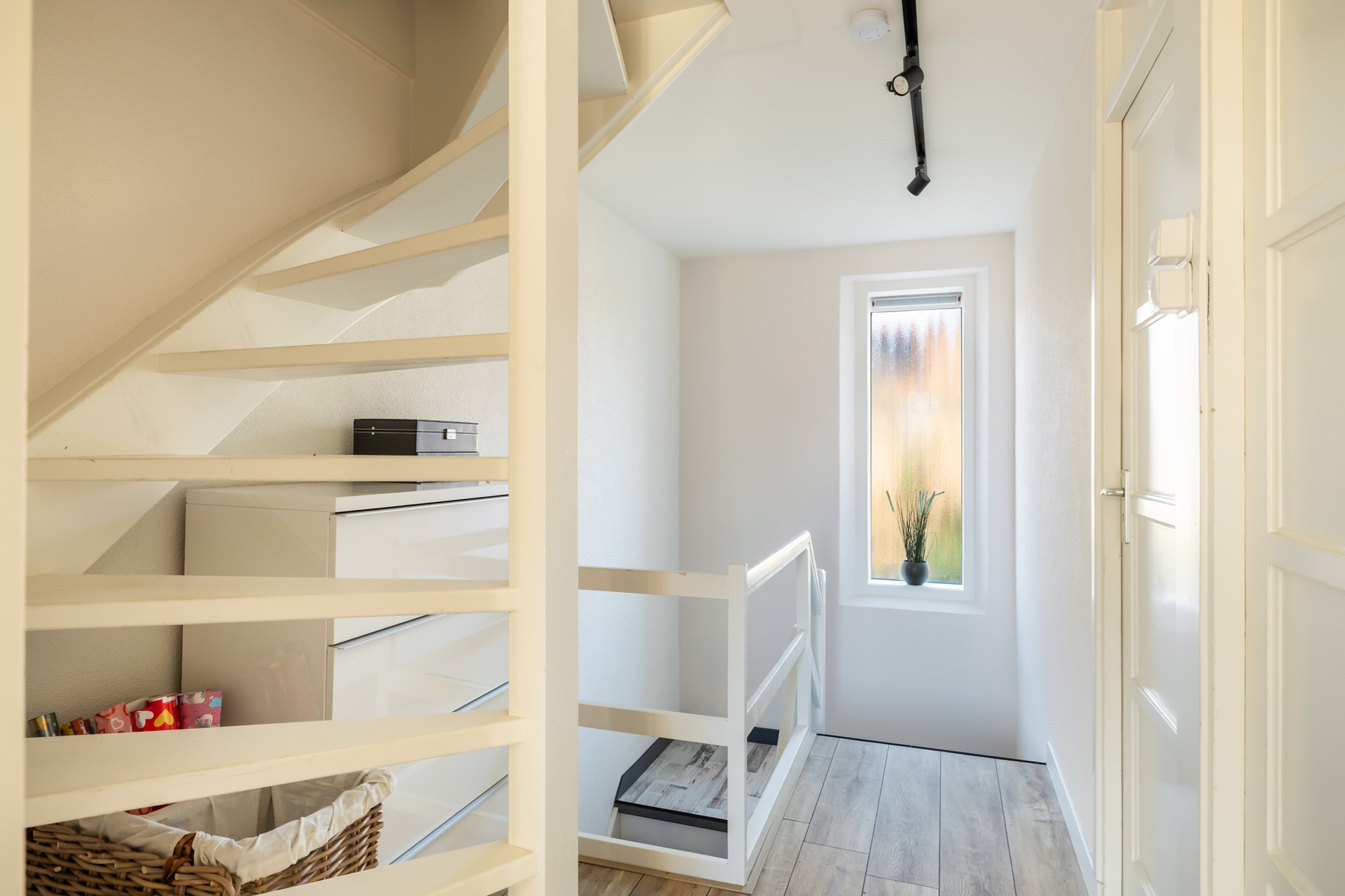 Dankzij de vaste trap is de tweede verdieping bereikbaar, die naar eigen wens kan worden ingedeeld. Op deze verdieping bevinden zich ook de aansluitingen voor de wasmachine en droger, evenals de cv-installatie (Intergas).