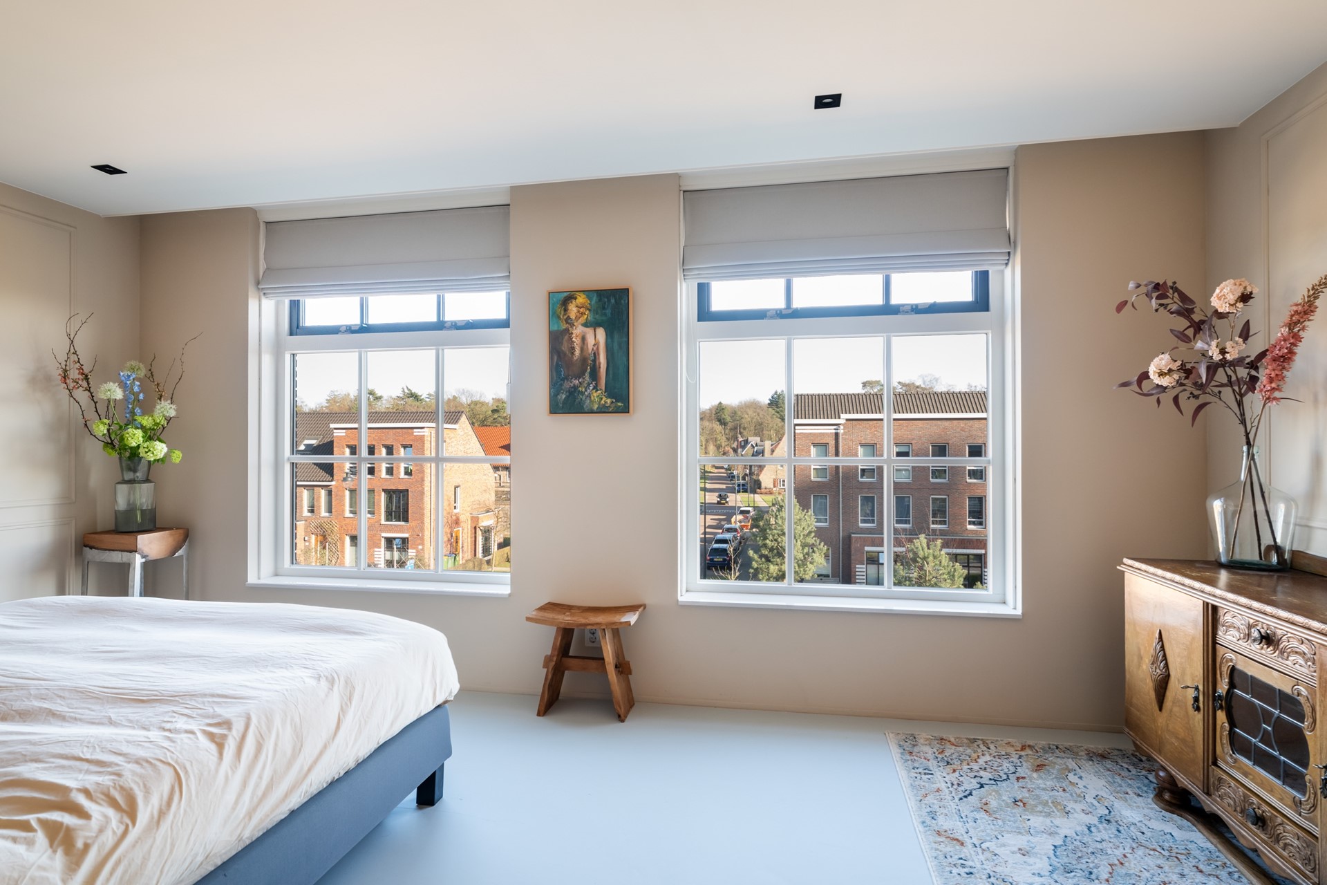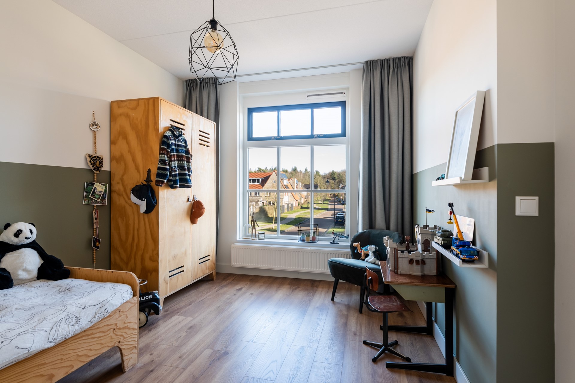 Met twee volwaardige verdiepingen biedt deze woning volop ruimte voor al je wensen. De vijf slaapkamers zijn veelzijdig in gebruik en bieden plek voor het hele gezin; van kantoor of werkkamer tot game-/tv-kamer, sportruimte of extra bergruimte. Op de eerste verdieping bevinden zich drie slaapkamers en een luxe, volledig betegelde badkamer met vrijstaand ligbad, inloopdouche, wastafelmeubel en toilet. Dankzij het aanwezige raam is er prettig daglicht in de badkamer. De grootste slaapkamer op deze verdieping ligt aan de achterzijde, terwijl aan de voorzijde nog twee slaapkamers zijn gesitueerd, allemaal strak afgewerkt en voorzien van een keurige laminaatvloer. De tweede verdieping biedt nog eens twee slaapkamers en een praktische overloop die is ingericht als wasruimte met vaste kast, aansluitingen voor wasmachine en droger en een spoelbak. De royale ouderslaapkamer aan de voorzijde vormt een echt hoogtepunt met een ruime inloopkast, airconditioning en uitzicht op de omgeving en de Veluwse bossen in de verte. Aan de achterzijde kijk je vanuit de slaapkamer uit op beide karakteristieke ENKA-schoorstenen. De tweede verdieping is strak afgewerkt met paneeldeuren en gladde wanden en plafonds, voorzien van inbouwspots, wat samen met de ruime indeling zorgt voor een moderne en verzorgde leefruimte.