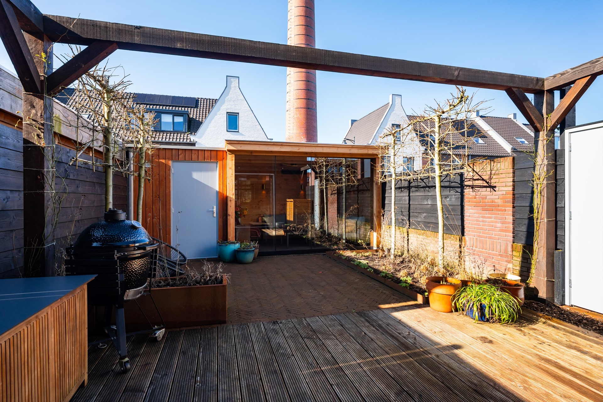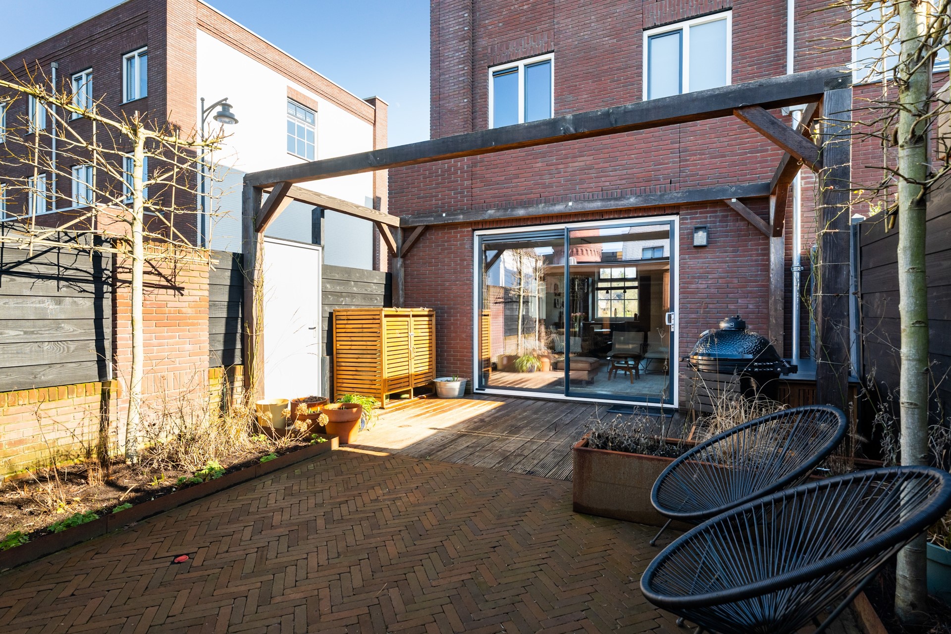 De gezellige achtertuin biedt volop ruimte voor een eettafel of comfortabele loungeset en in de veranda met glazen schuifpui kun je vrijwel het hele jaar door beschut genieten. De houten berging zorgt voor praktische opslagruimte voor fietsen en tuinspullen. Bovendien is de tuin achterom bereikbaar, met direct achter de woning een speelveldje voor de kinderen. Parkeren doe je gemakkelijk aan de voorzijde of aan de daarvoor bestemde binnenhofjes. Voor verwarming en warm water is de woning aangesloten op de Edese Biocentrale, wat zorgt voor een duurzaam en toekomstbestendig wooncomfort op een unieke, groene locatie. Kortom; instapklaar, hoogwaardig afgewerkt en goed onderhouden! Een woning met karakter en volop ruimte op een toplocatie, hier kun je direct genieten van alles wat deze omgeving te bieden heeft.