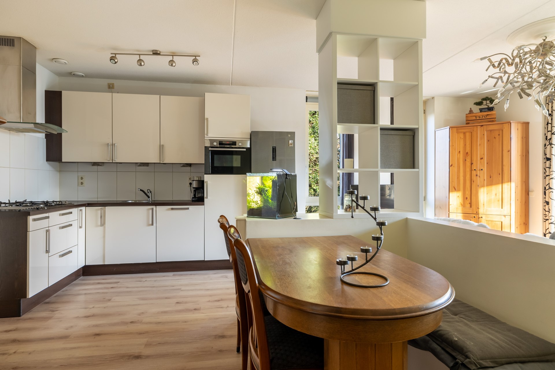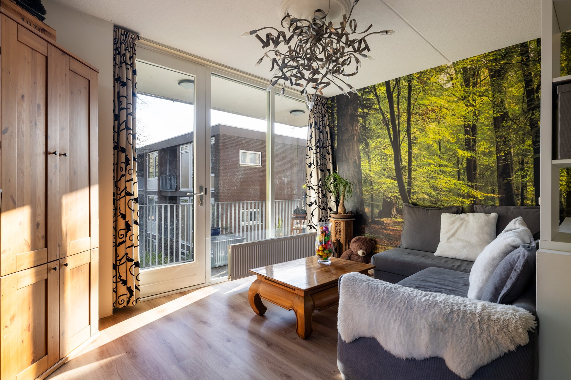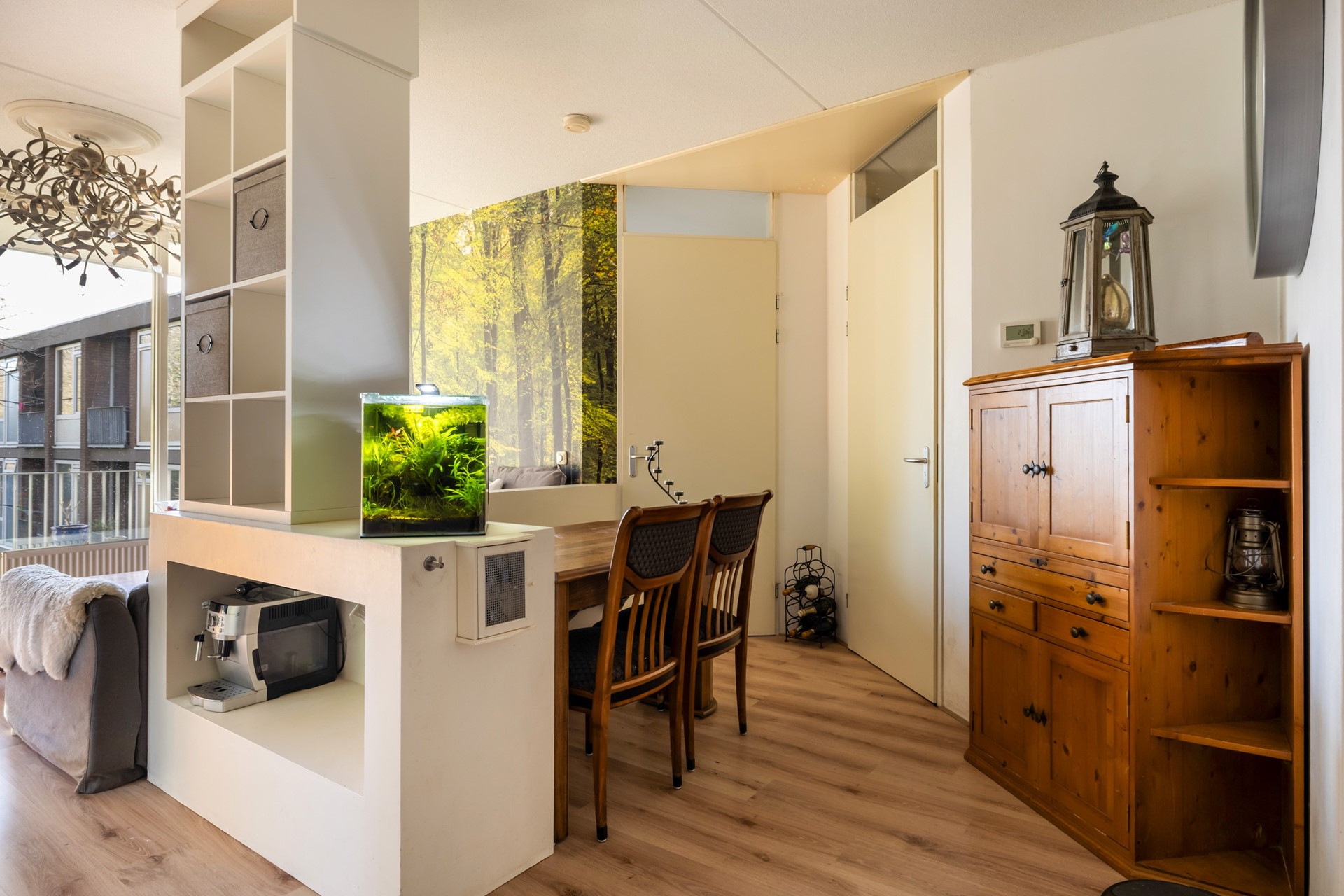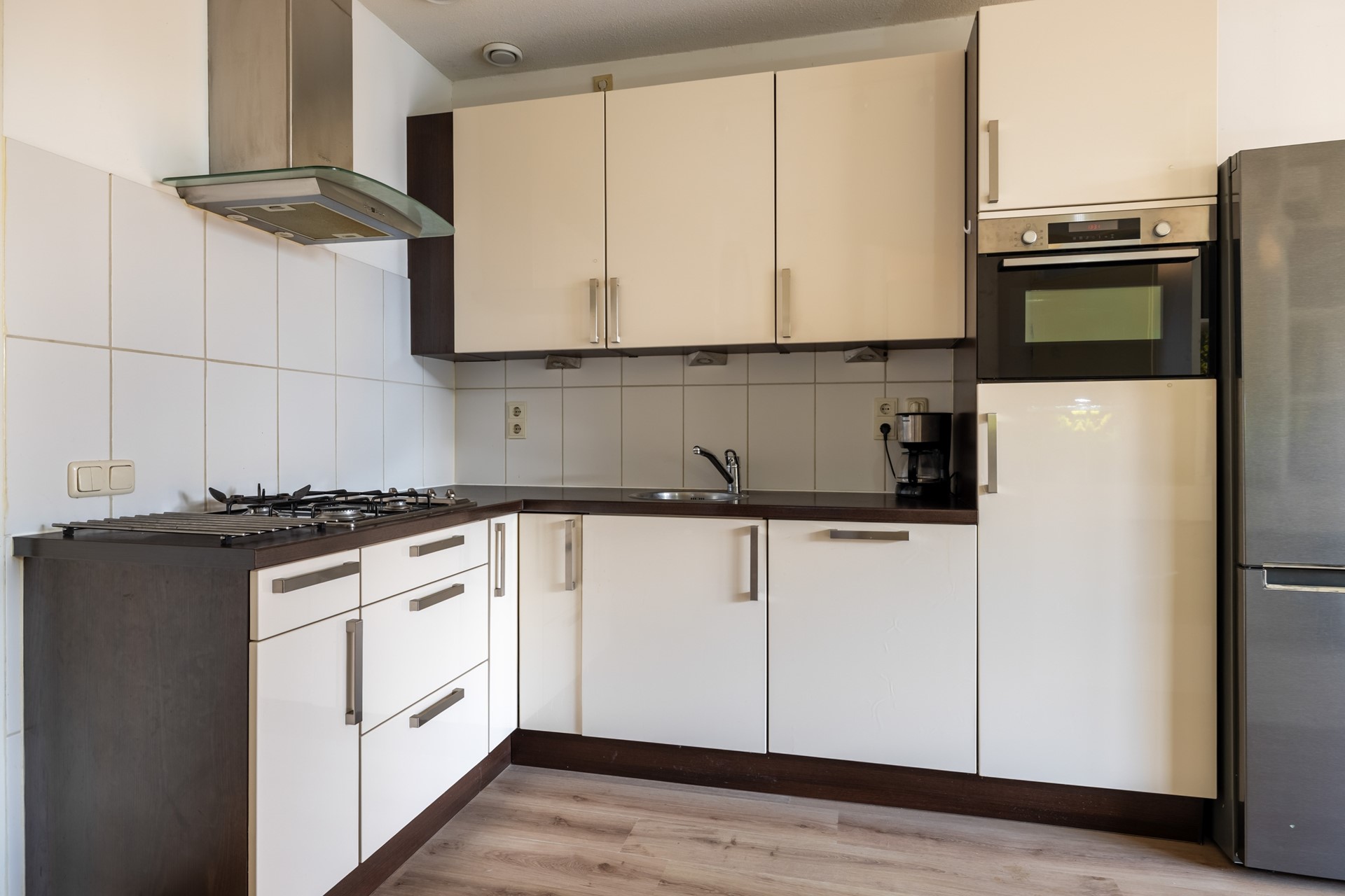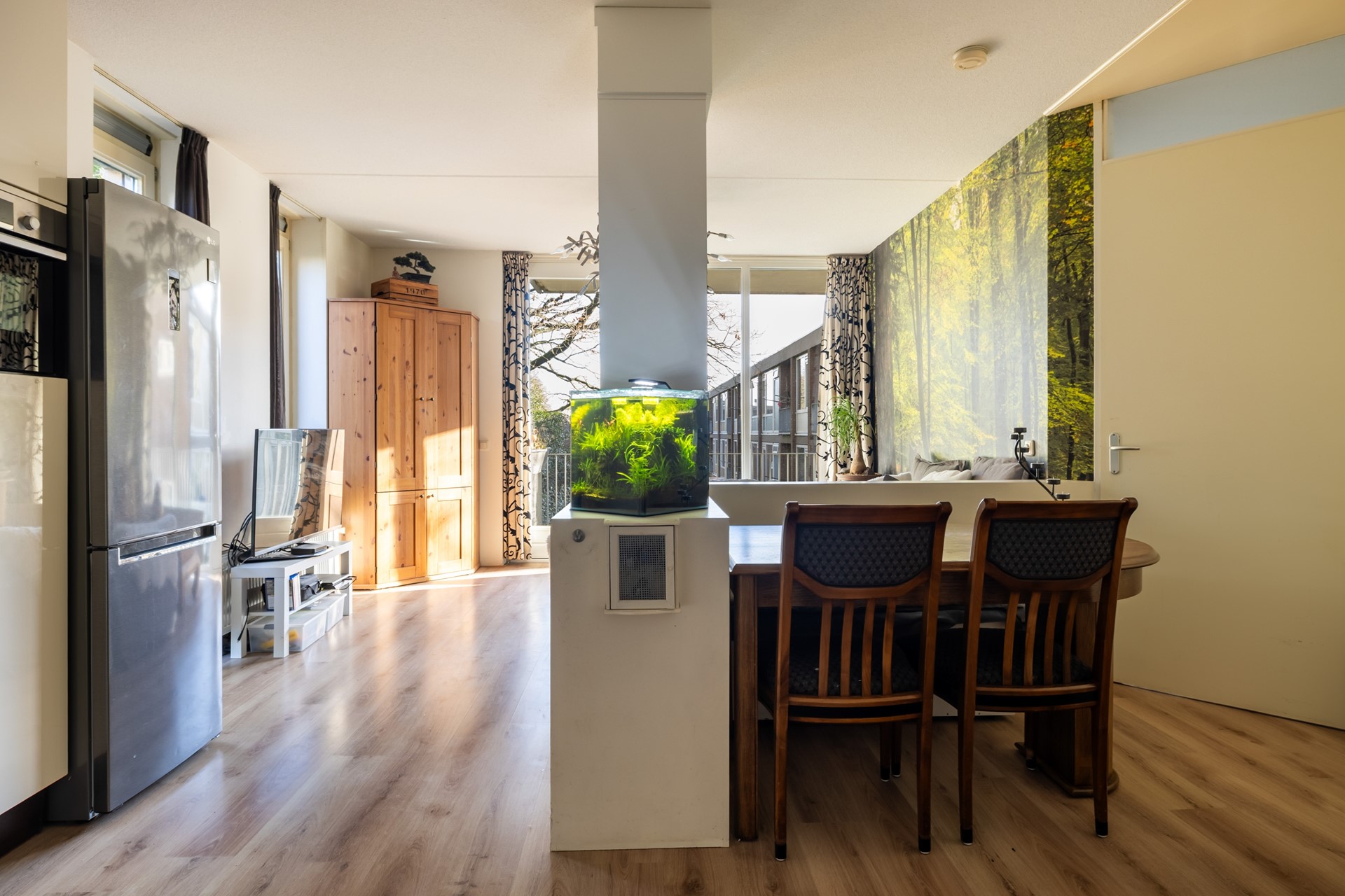 Via de centrale hal, waar de meterkast is gesitueerd, is de entree van het appartement bereikbaar. Vanaf de entree is er toegang tot een slaapkamer, de stookruimte – voorzien van aansluitingen voor de wasmachine/droger en de cv-installatie (Intergas, 2023) – en de woonkamer. De woonkamer met open keuken beschikt over grote raampartijen die zorgen voor veel natuurlijk daglicht en biedt tevens toegang tot het zonnige balkon op het zuidoosten. De open keuken in hoekopstelling is voorzien van diverse inbouwapparatuur, waaronder een 4-pits gaskookplaat, afzuigkap, combi-oven (2023) en vaatwasser. Vanuit de woonkamer zijn de tweede slaapkamer en de badkamer bereikbaar. De geheel betegelde badkamer is voorzien van vloerverwarming en uitgerust met een douche, wastafel en toilet. Tot slot is het gehele appartement afgewerkt met een laminaatvloer.