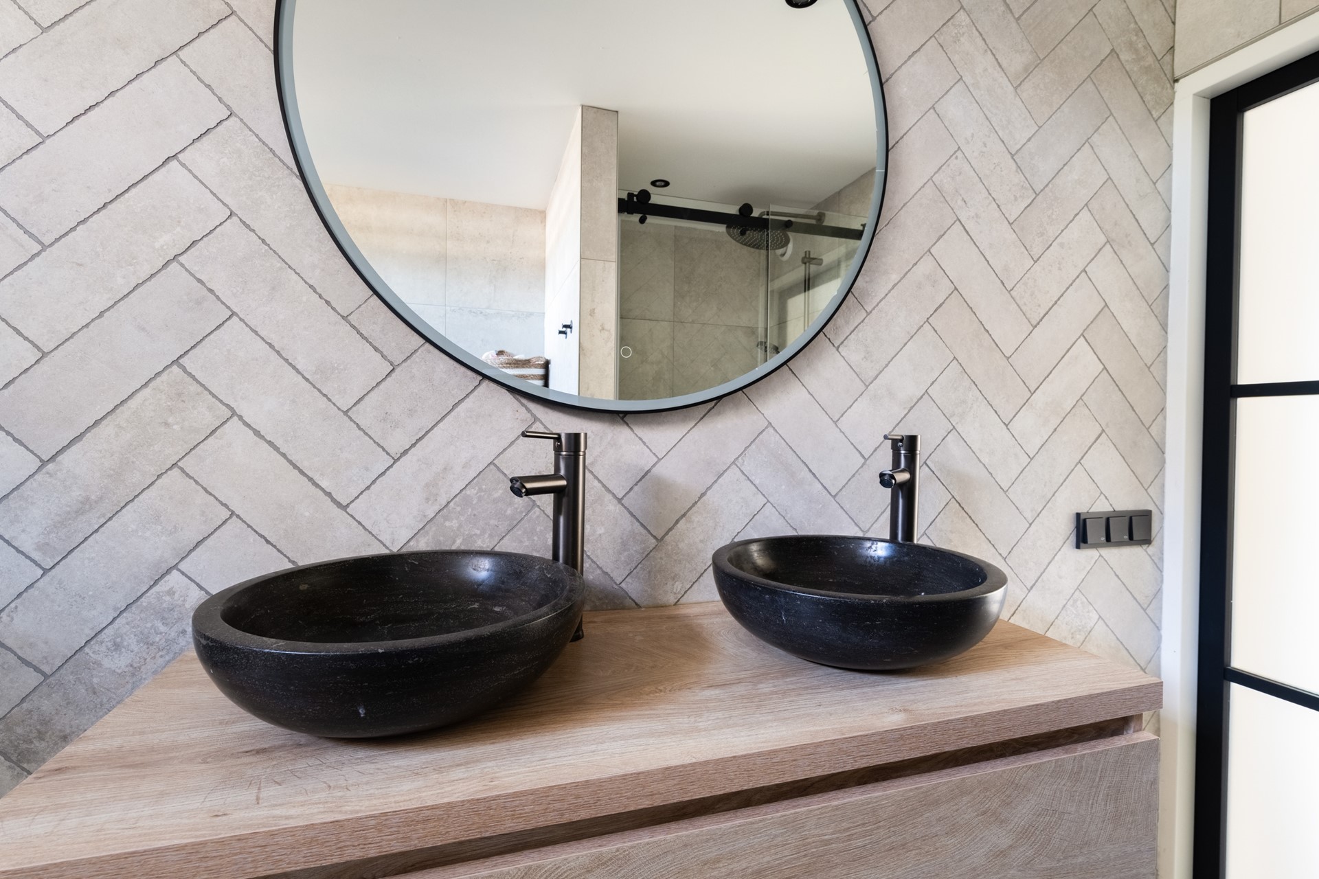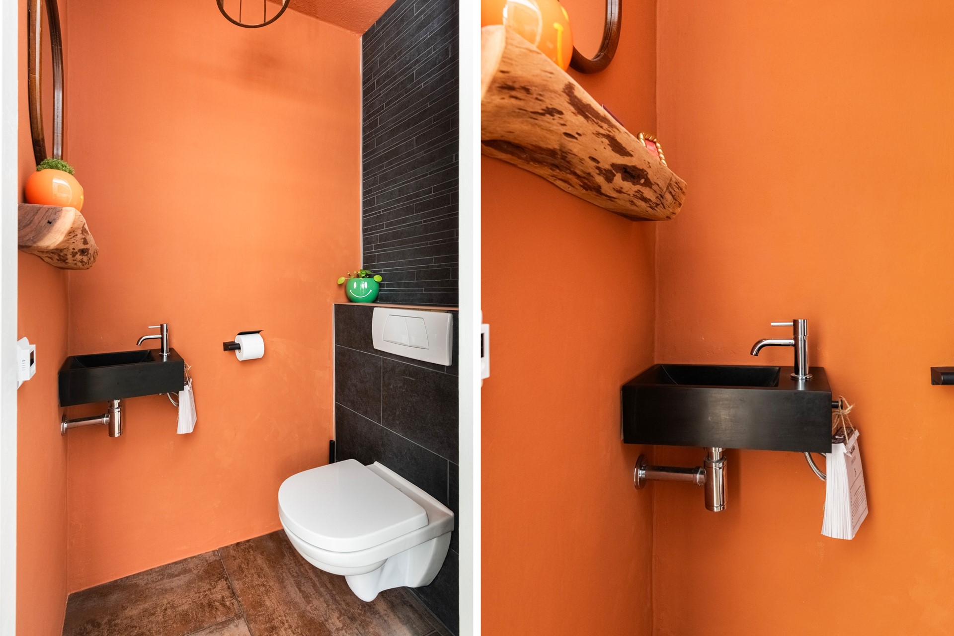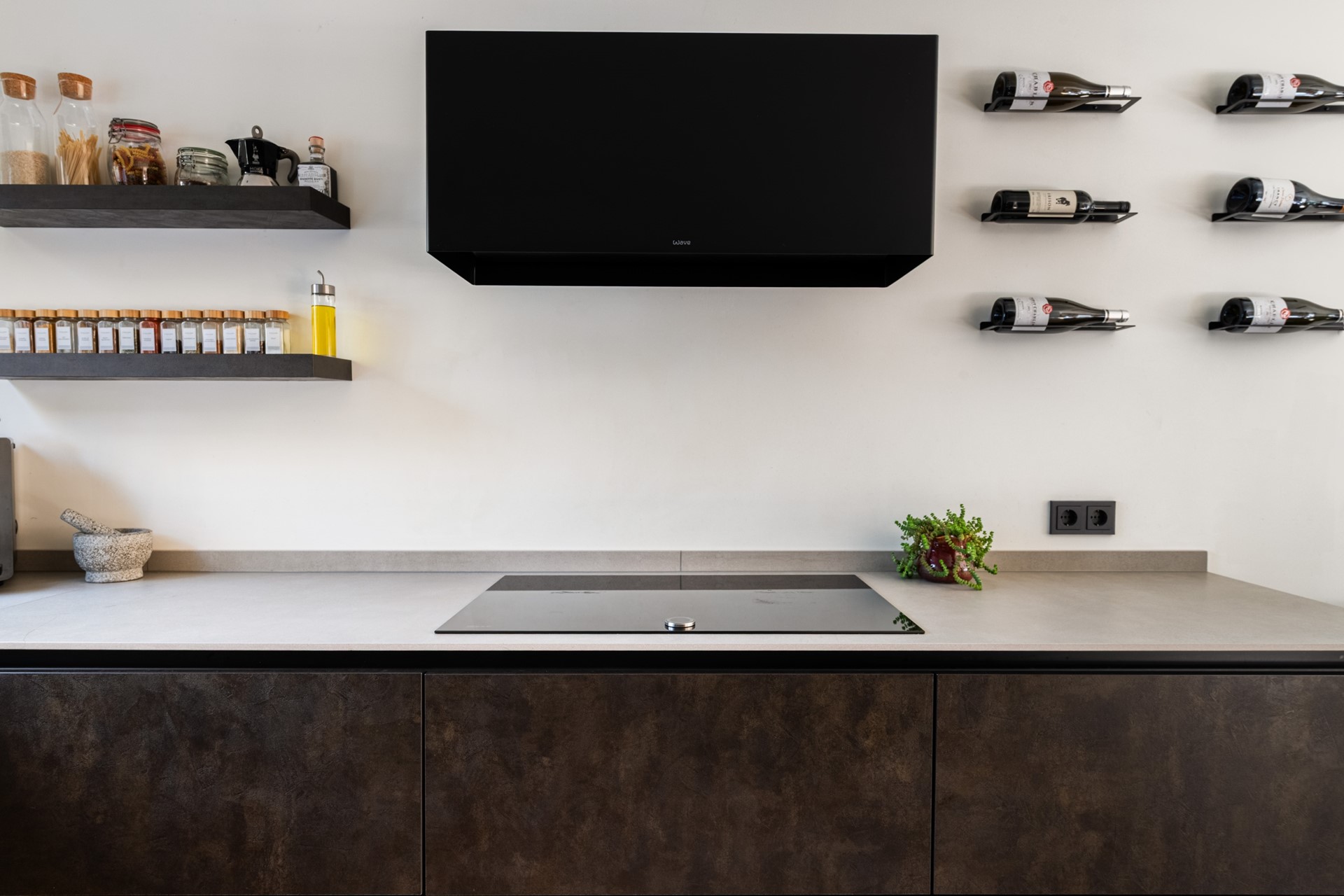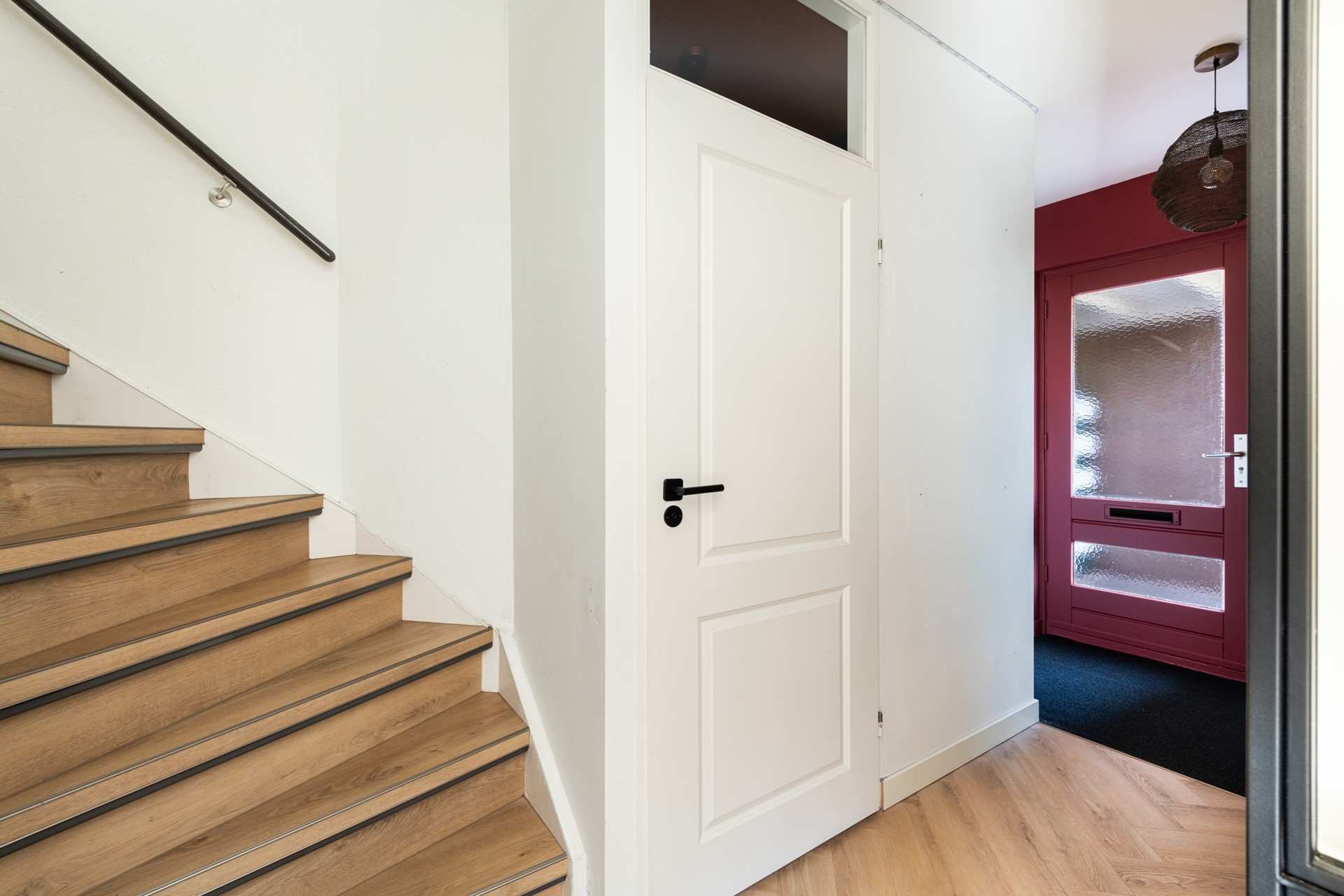 Via de overdekte entree betreed je de hal, die toegang geeft tot de meterkast met glasvezelaansluiting, het toilet met wandcloset en fontein en de trapopgang naar de 1e verdieping. Een moderne stalen taatsdeur nodigt je uit om de woonkamer binnen te stappen. De woonkamer is heerlijk tuingericht en strak afgewerkt, met gladde wanden en een strak plafond. De visgraatvloer en vloerverwarming geven de ruimte een warme uitstraling en dankzij een loopdeur stap je zo buiten het terras op. Aan de voorzijde bevindt zich de in 2021 geplaatste moderne keuken, compleet met divers inbouwapparatuur, waaronder een inductiekookplaat, afzuigkap, vaatwasser, koelkast met vriesvak, stoomoven, combi-oven én een Quooker.