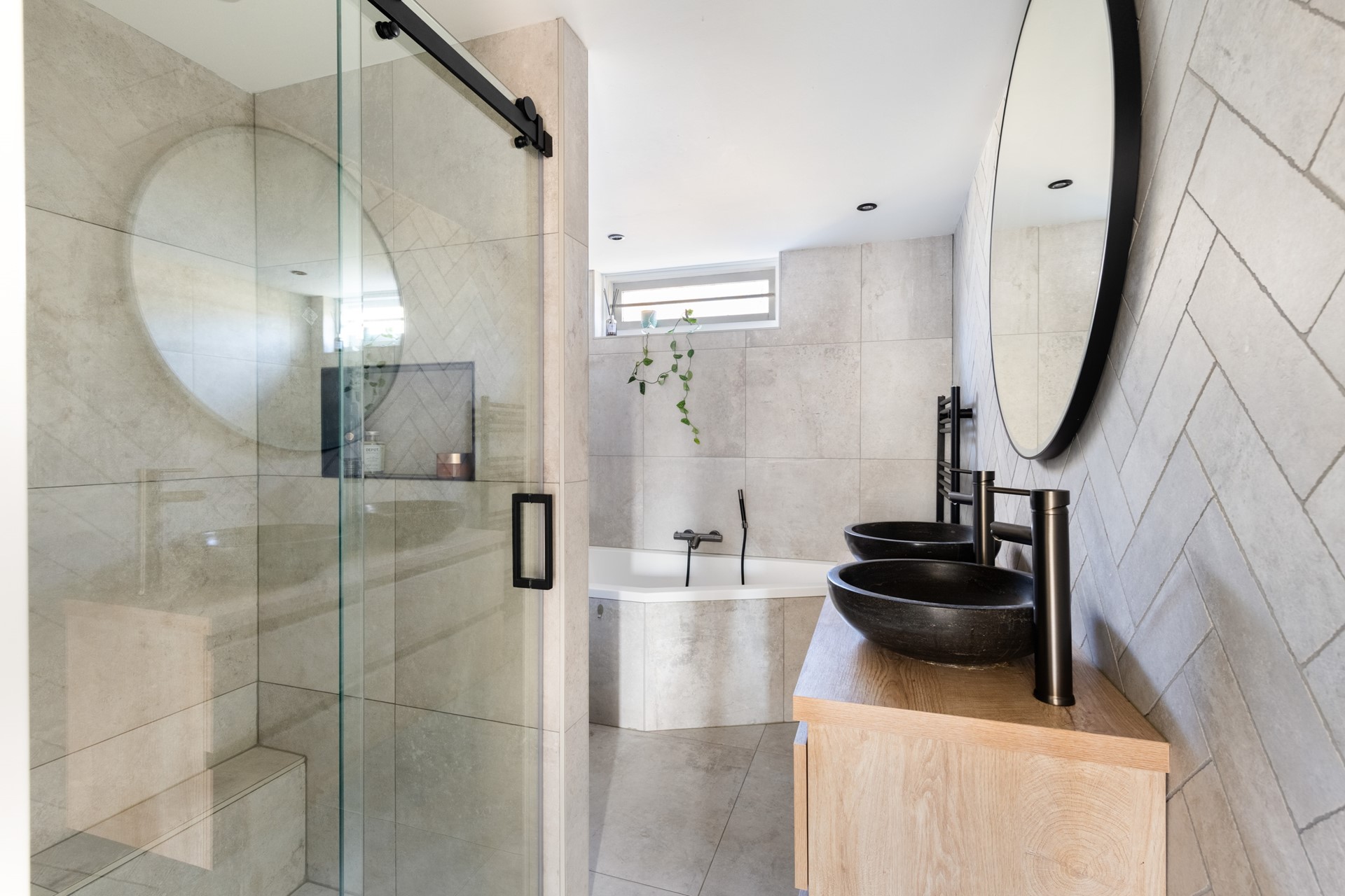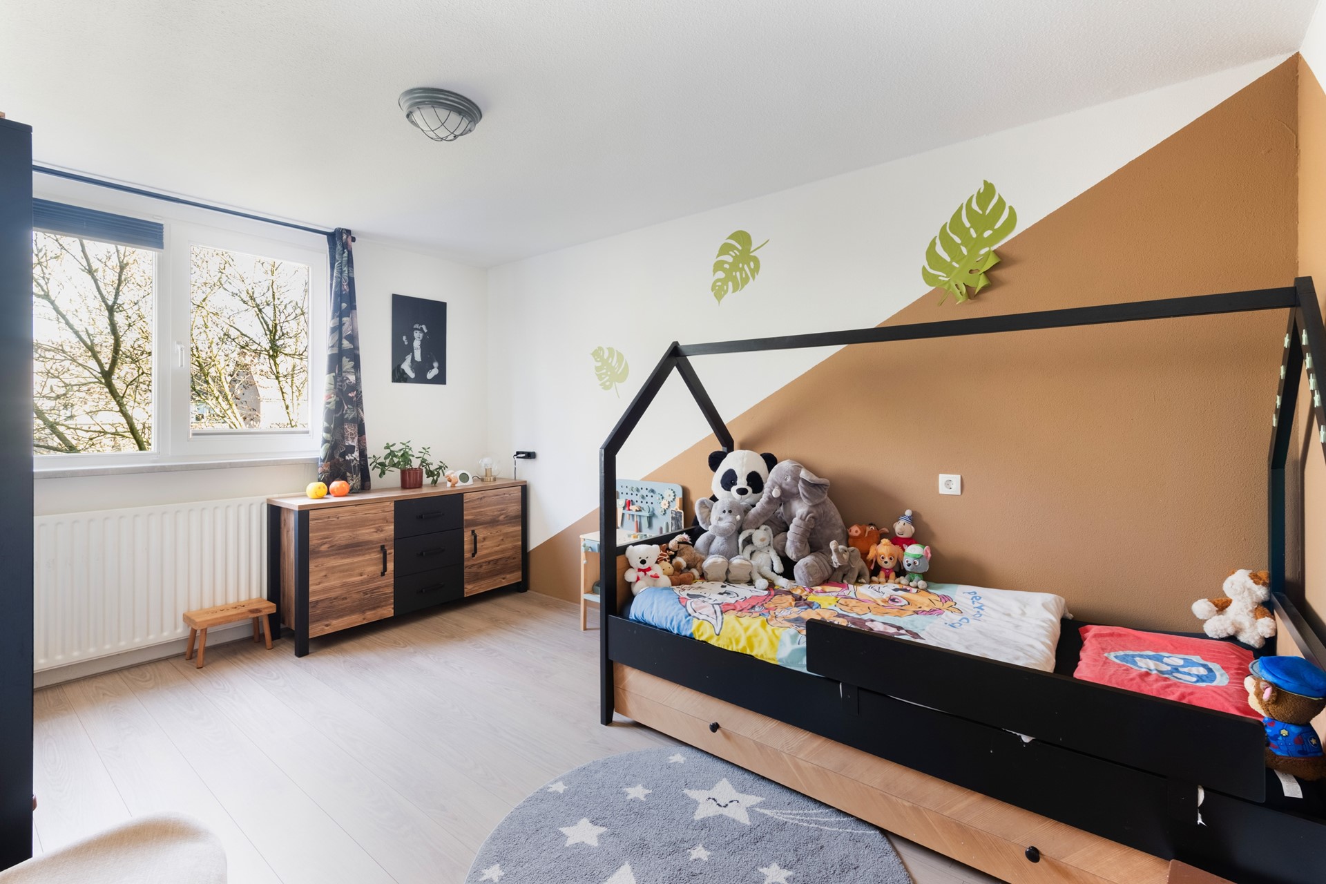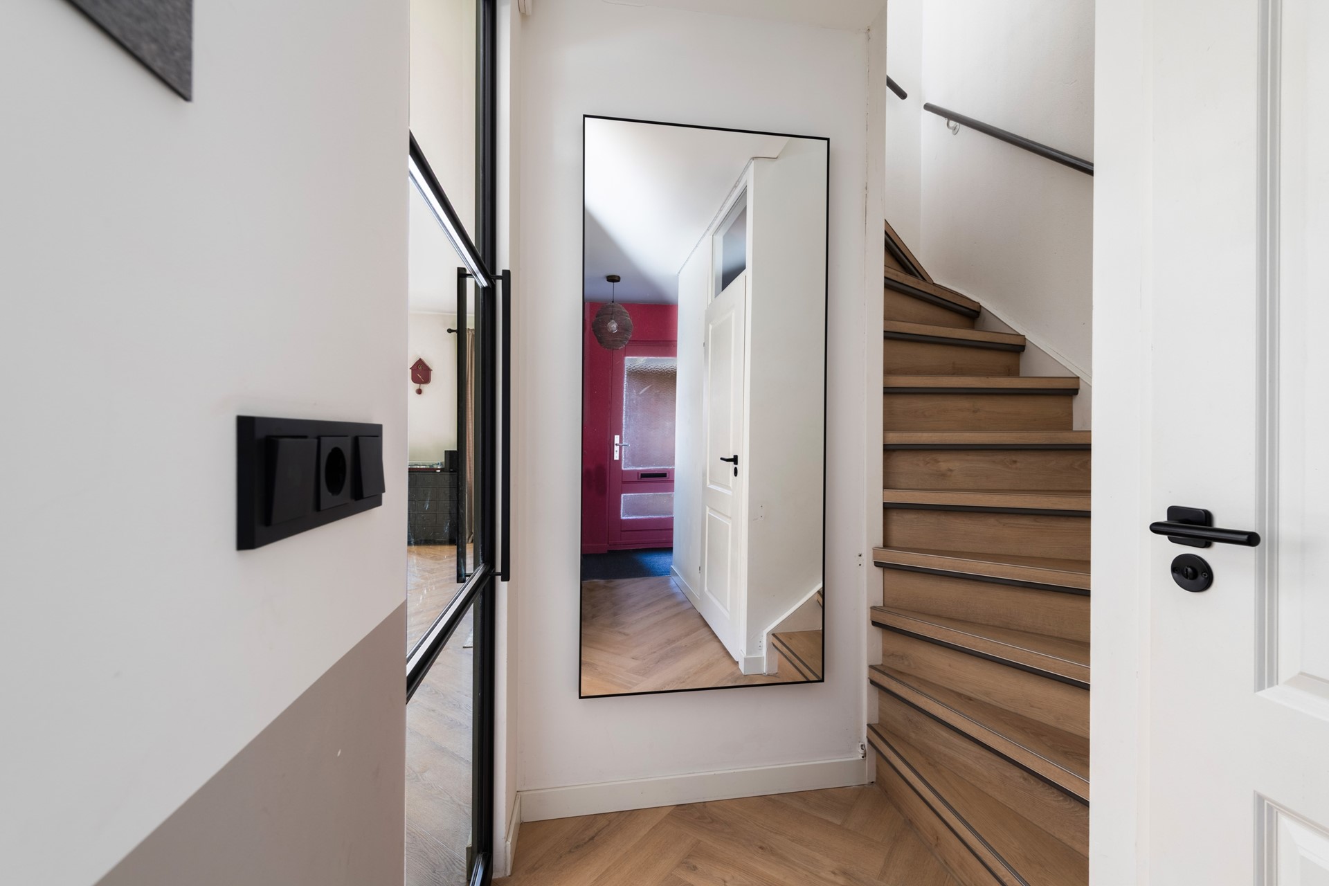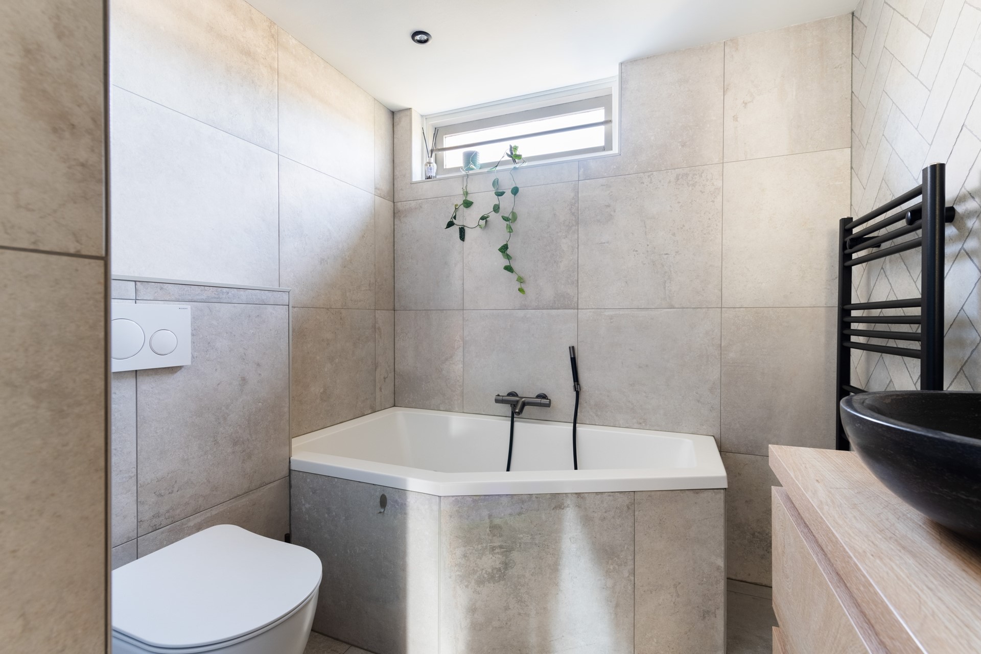 Via de trap kom je op de overloop van de eerste verdieping, van waaruit je drie sfeervolle slaapkamers en een moderne badkamer bereikt. De badkamer, volledig vernieuwd in 2021 en strak betegeld, is voorzien van een inloopdouche, ligbad, wandcloset, dubbel wastafelmeubel en designradiatoren. Net als één van de ruime slaapkamers ligt deze aan de voorzijde, terwijl de twee andere slaapkamers zich aan de achterzijde bevinden. Alle kamers zijn keurig afgewerkt en voorzien van een laminaatvloer.