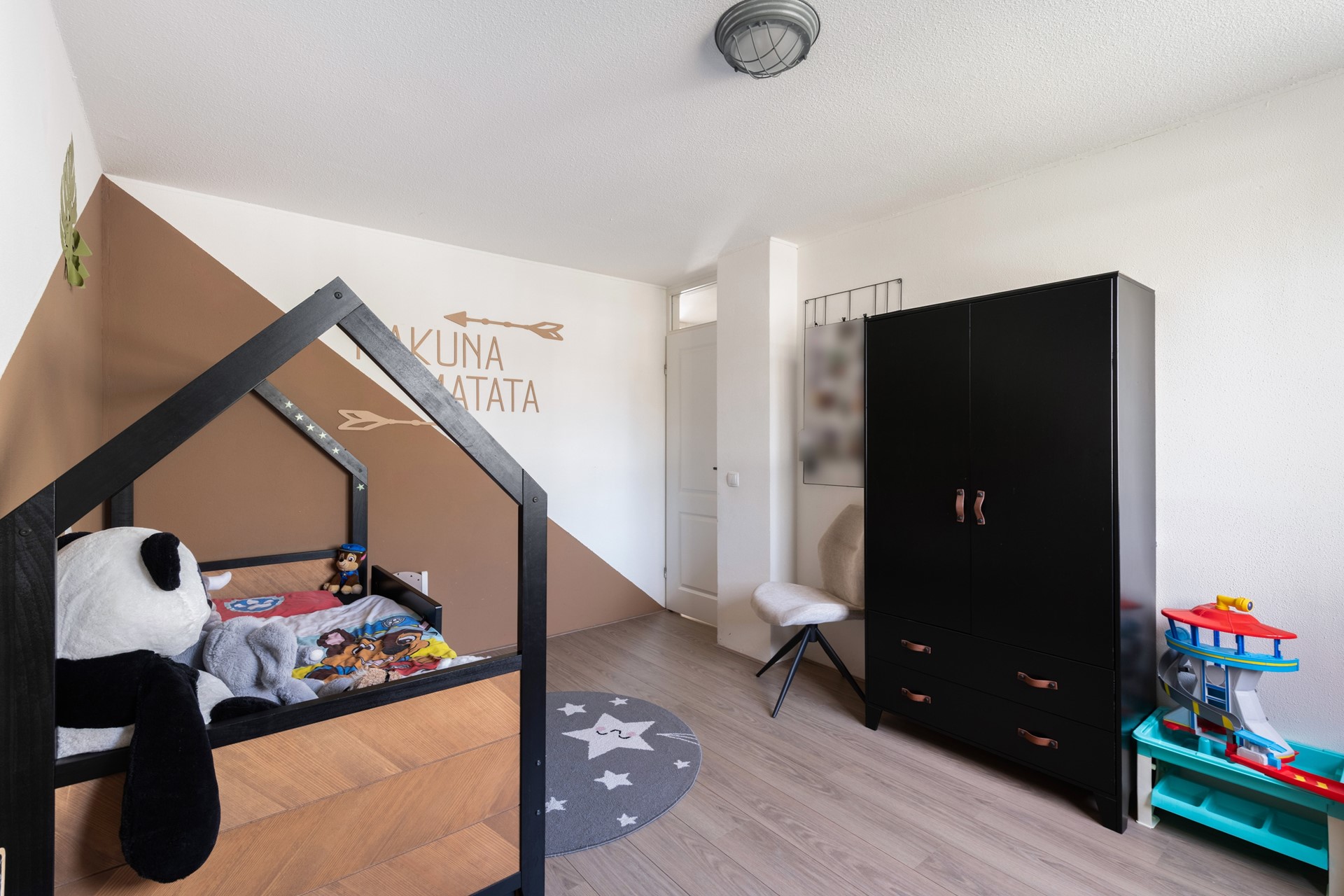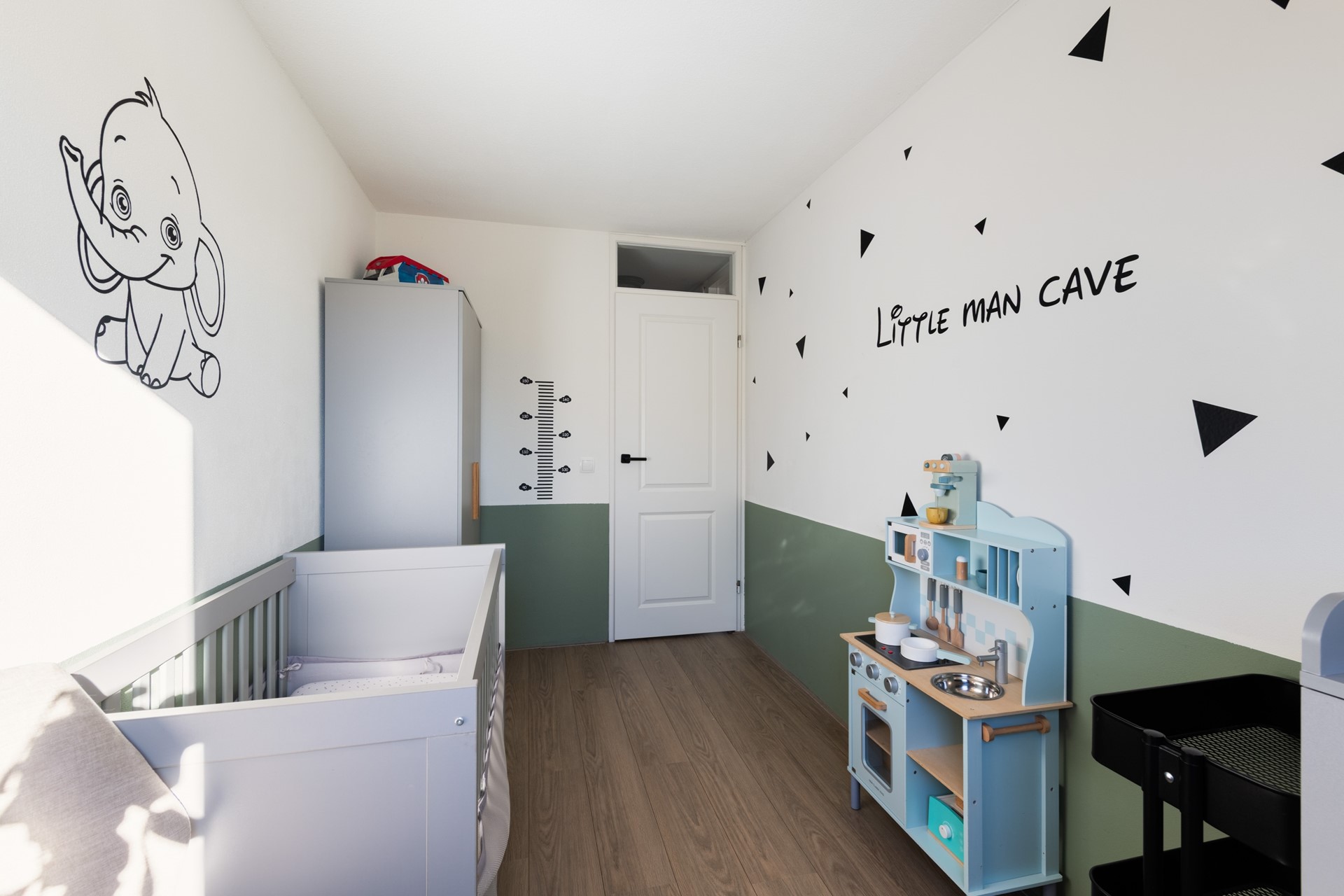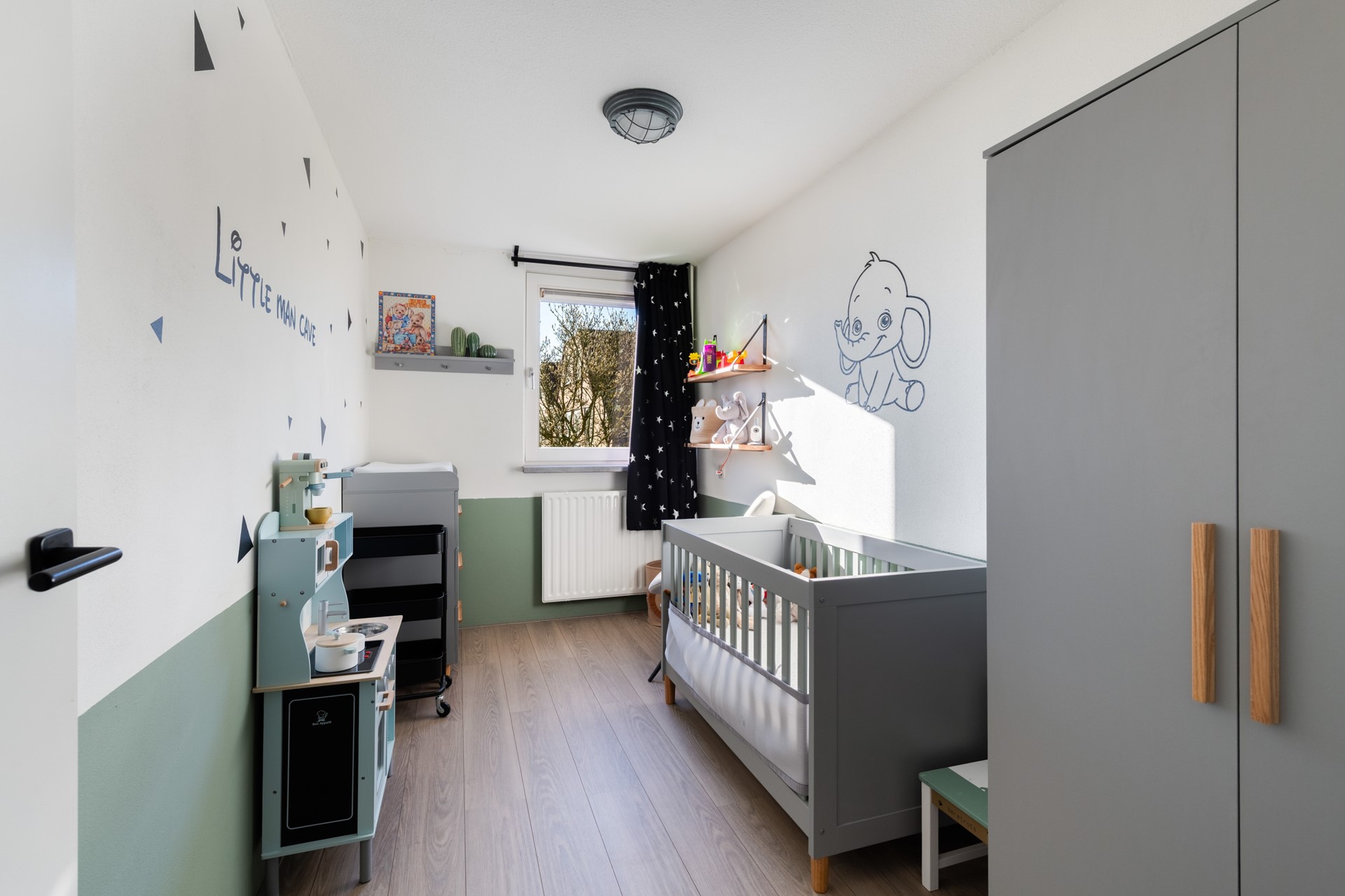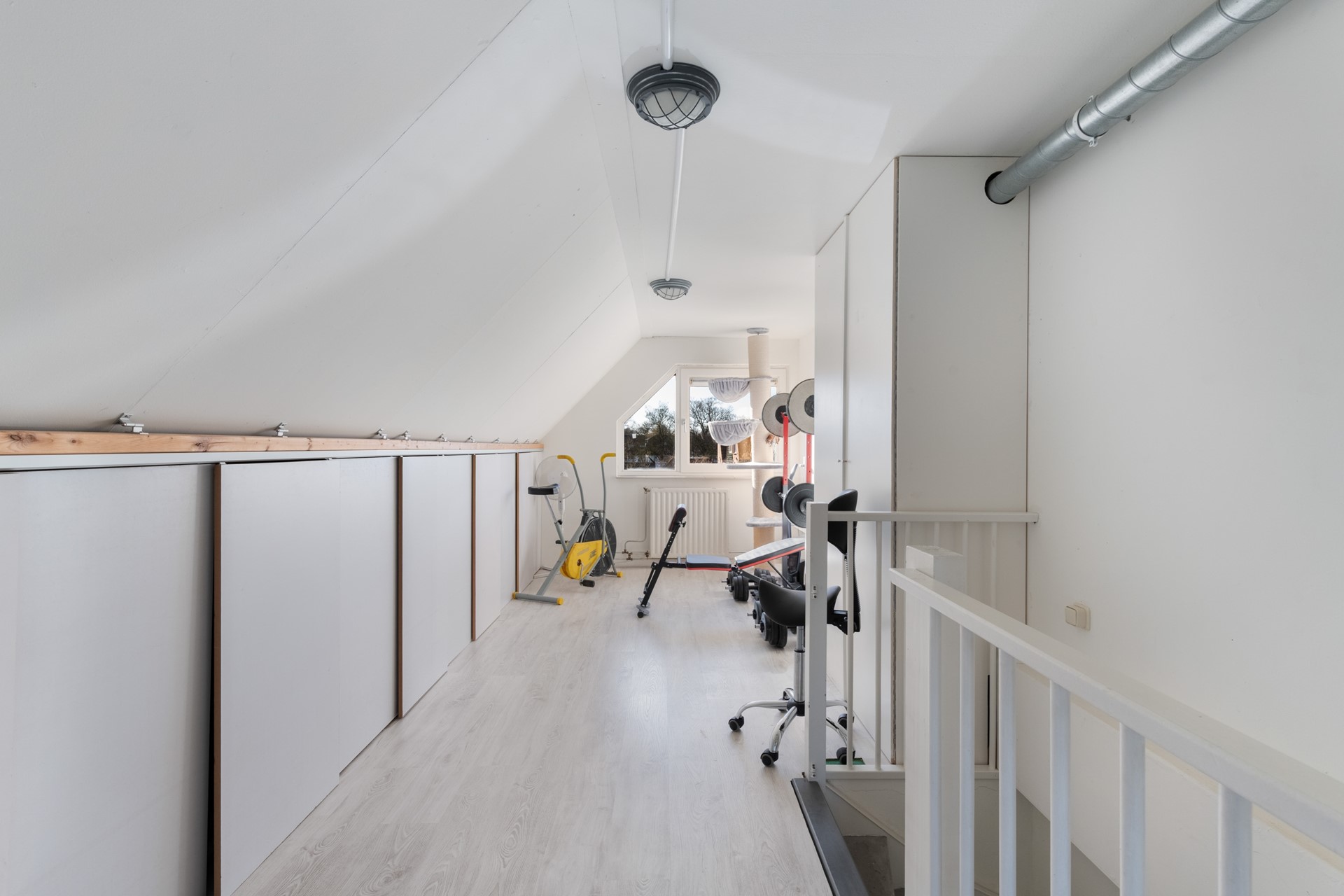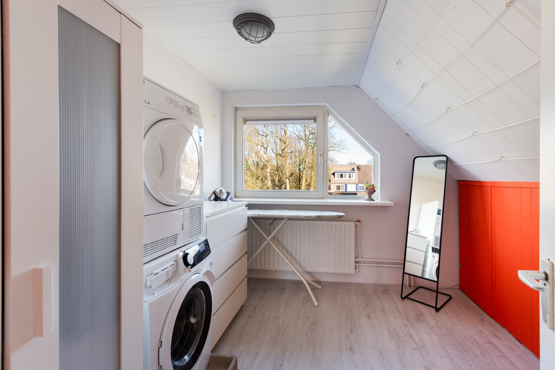 Via een vaste trap bereik je de overloop van de tweede verdieping, een praktische ruimte met volop opbergruimte achter de knieschotten, maar ook perfect te gebruiken als thuiswerkplek. In een handige vaste kast is de cv-installatie (Intergas 2013) en de MV-box netjes weggewerkt. Vanuit de overloop kom je bij de vierde slaapkamer, die dankzij de aanwezige aansluitingen voor wasmachine en droger ook uitstekend als wasruimte kan fungeren.