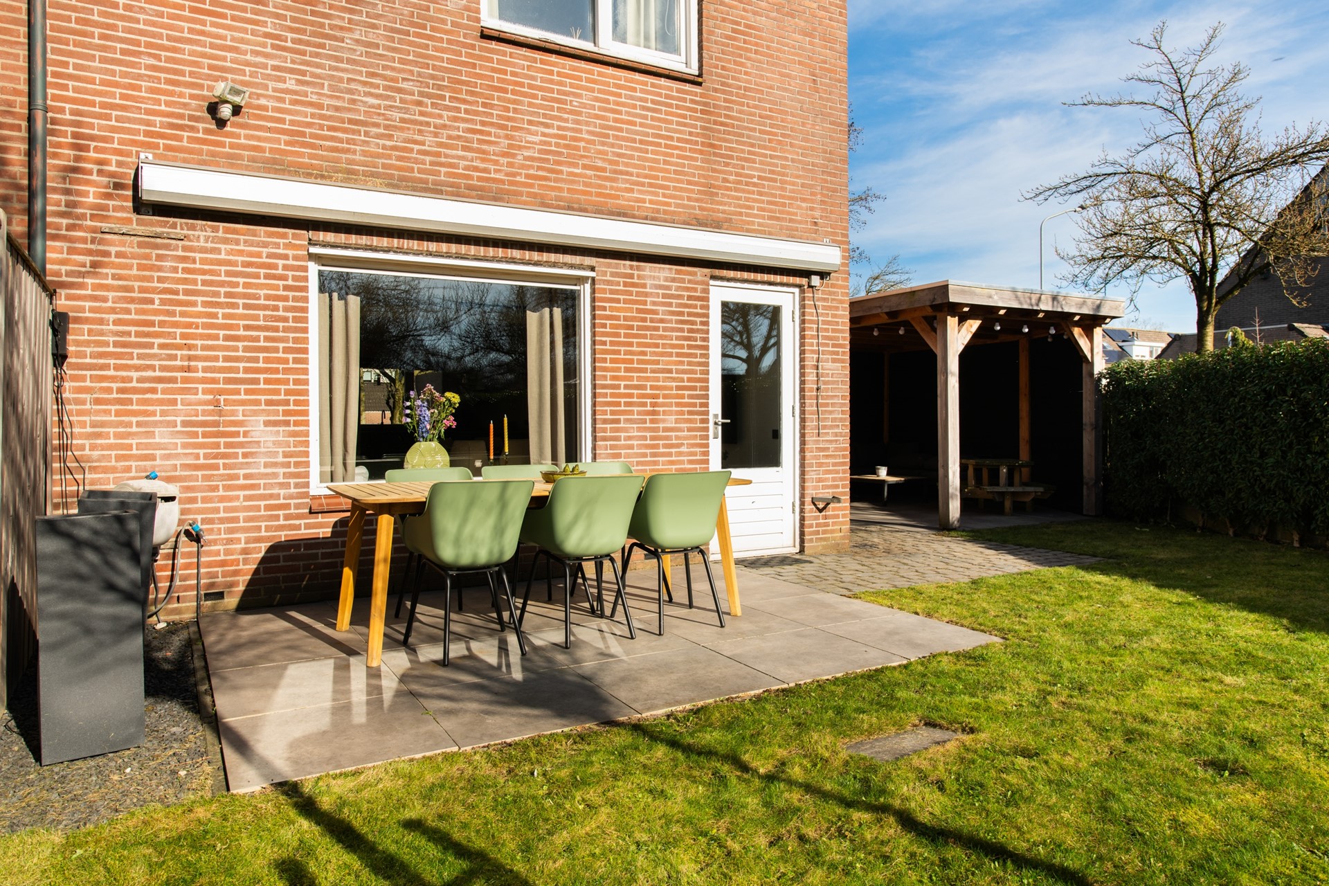 De royale tuin rondom de woning biedt altijd wel een heerlijk plekje om van het buitenleven te genieten. Dankzij de ligging op het zuiden geniet je hier van volop zonuren. Onder de fijne veranda (2023) kun je zelfs overdekt lekker van de tuin genieten. Parkeren is geen probleem: dat kan gewoon op eigen terrein. Voor extra gemak is er aan de voorzijde een stenen berging, ideaal voor het opbergen van fietsen of andere spullen. Bovendien ligt de woning in een rustige, kindvriendelijke wijk met speelgelegenheid in de buurt.