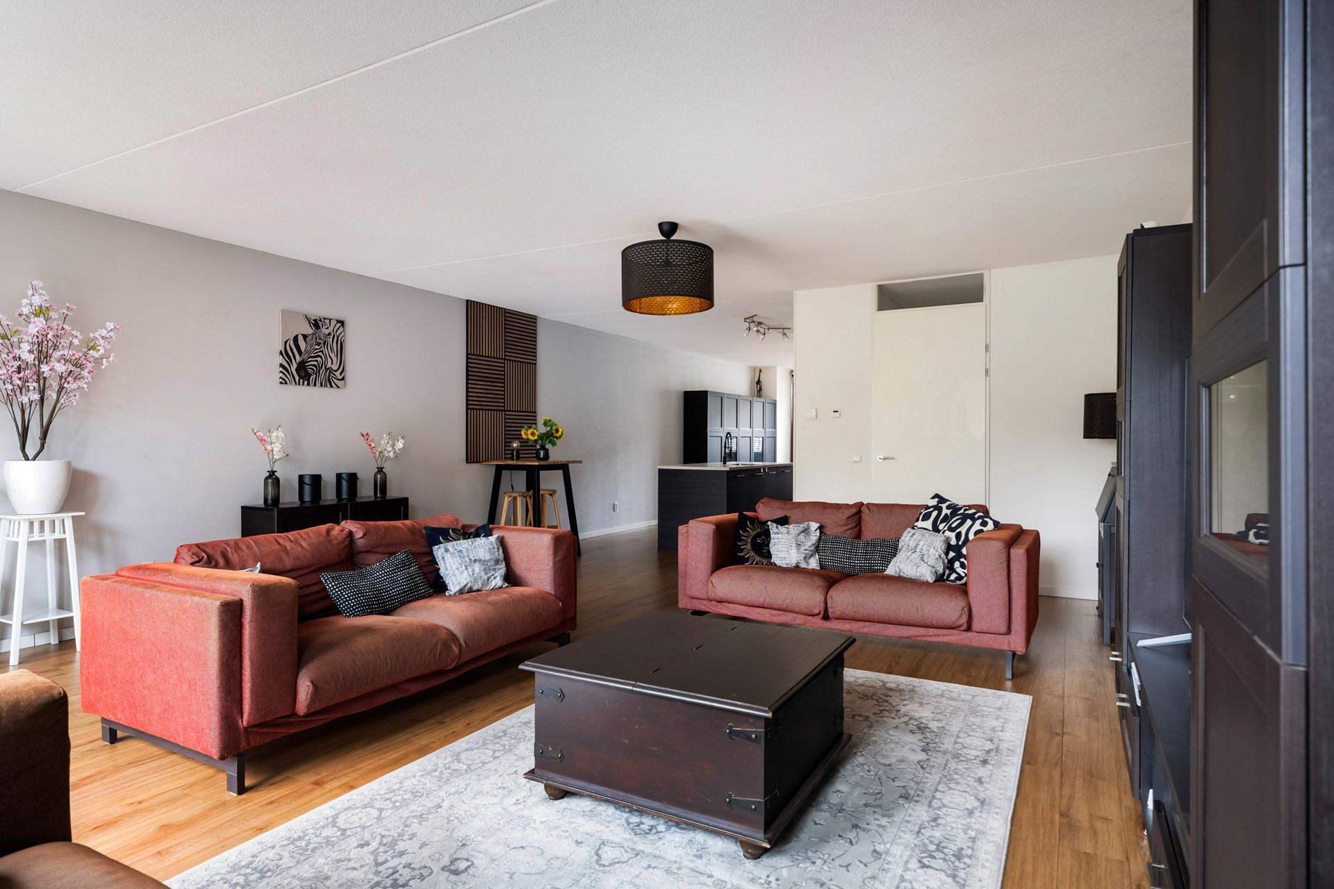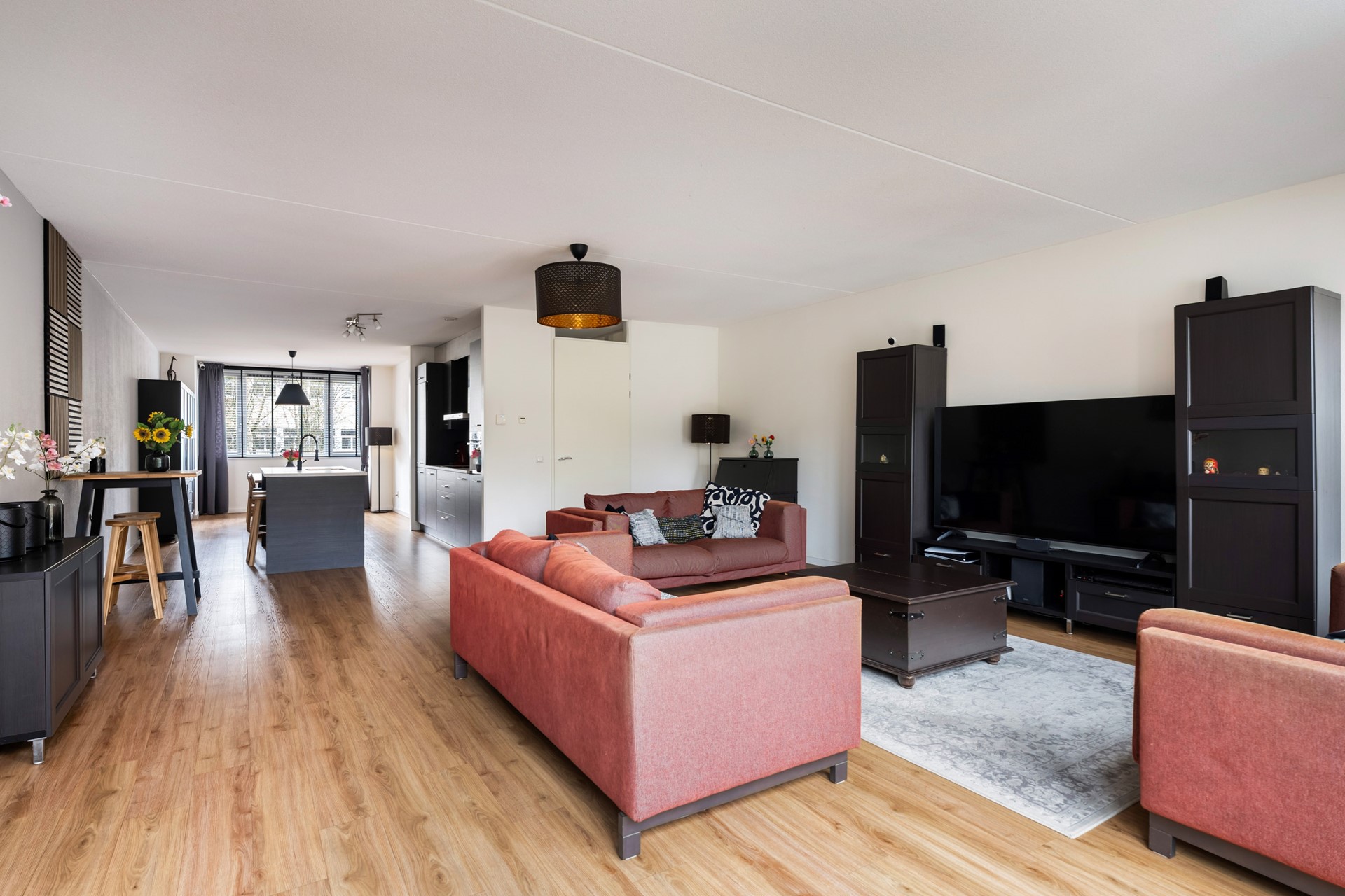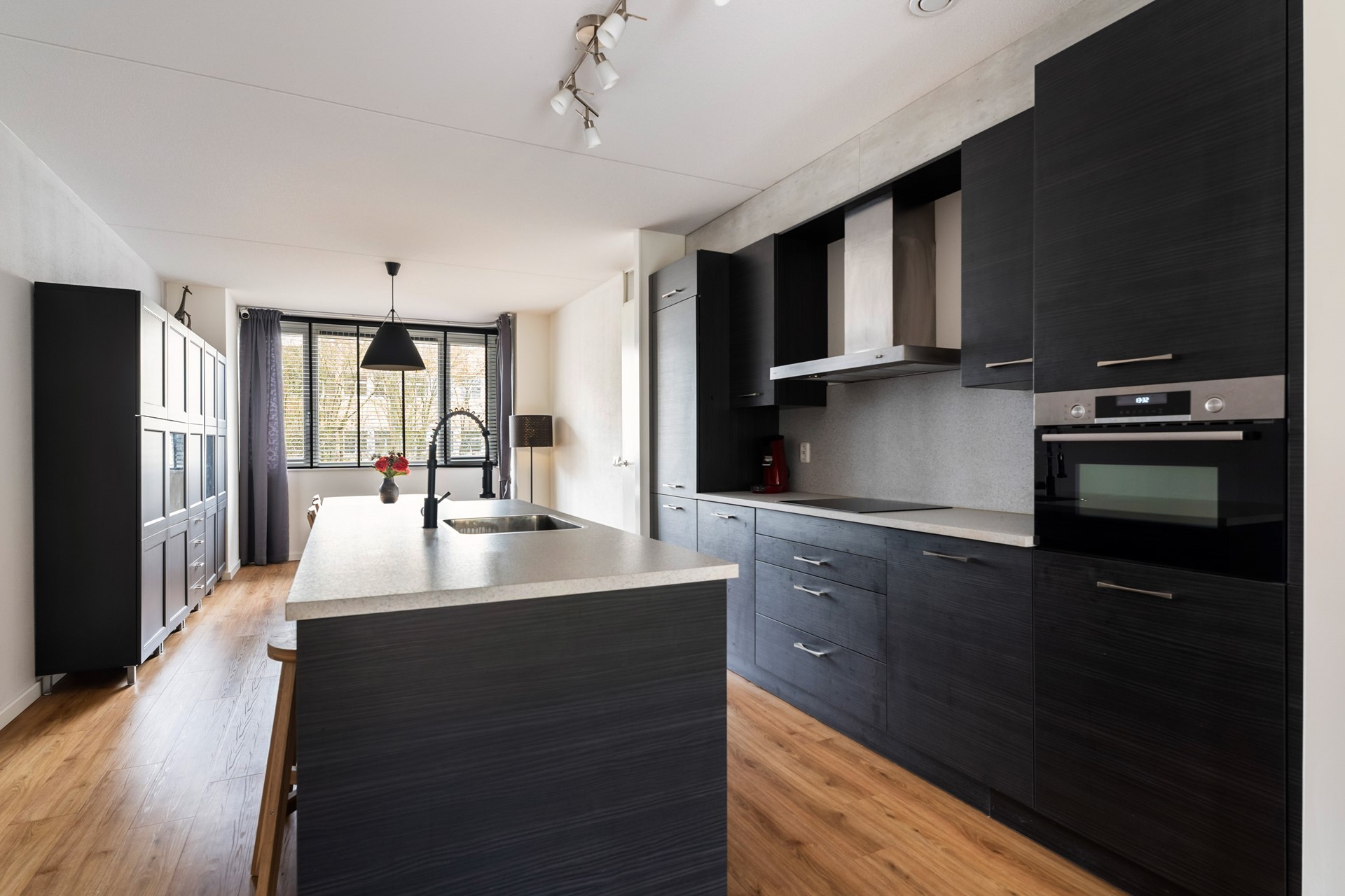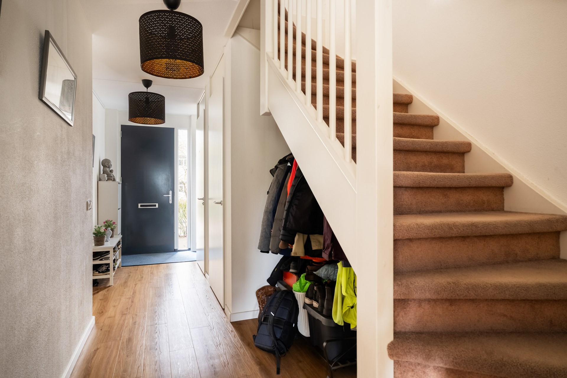 Via de entree stap je binnen in de hal, een prettige binnenkomst die direct toegang geeft tot de meterkast (met glasvezelaansluiting), een geheel betegelde toiletruimte (met wandcloset en fontein), de praktische berging met warmtepomp (2012), de trapopgang naar de 1e verdieping, de woonkeuken en woonkamer. De uitgebouwde woonkamer is royaal van opzet en nodigt uit tot het creëren van een comfortabele en ruime zithoek. Dankzij de openslaande deuren staat deze ruimte in directe verbinding met het terras en de tuin, waardoor binnen en buiten moeiteloos in elkaar overlopen. De strakke wandafwerking en de pvc-vloer met aangename vloerverwarming zorgen voor een verzorgde uitstraling. Aan de voorzijde van de woning, in het verlengde van de woonkamer, bevindt zich de woonkeuken. Het gezellige spoeleiland met bar vormt het hart van de ruimte – de perfecte plek om ’s ochtends rustig van een kop koffie te genieten of samen te komen tijdens het koken. De keuken is uitgerust met diverse inbouwapparatuur, waaronder een inductiekookplaat met afzuigkap, koelkast, vriezer en een combi oven/magnetron. Dankzij de erker aan de voorzijde is er volop ruimte voor een royale eethoek, waar je lange diners kunt organiseren.