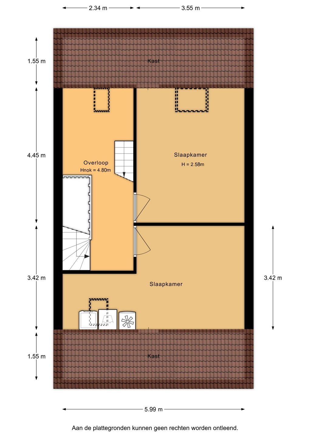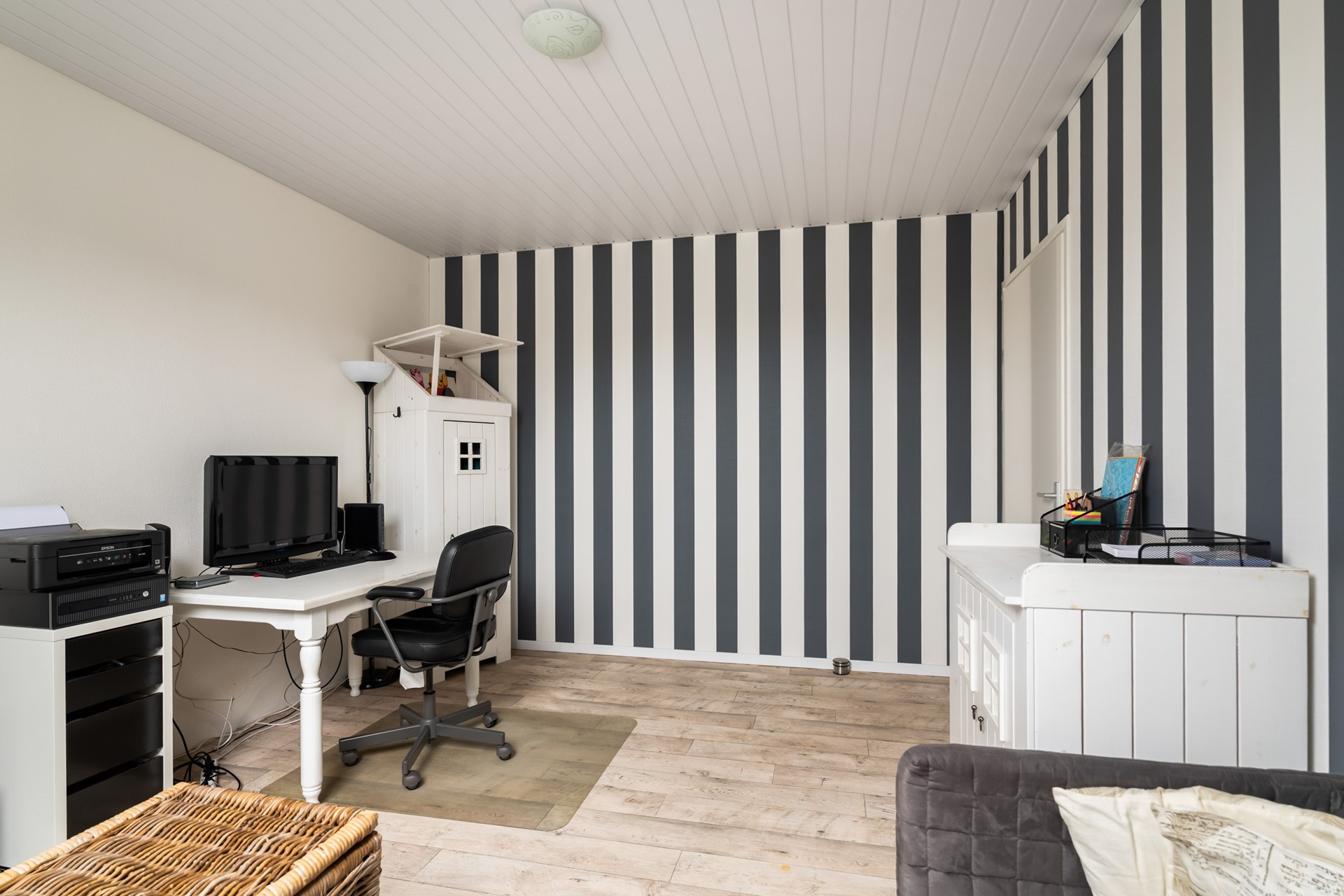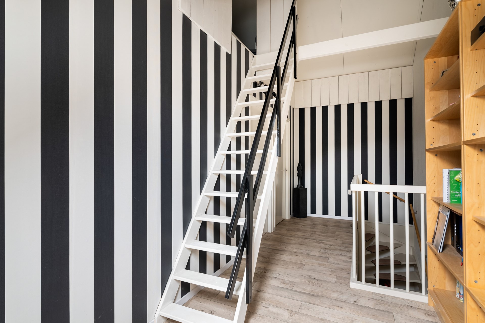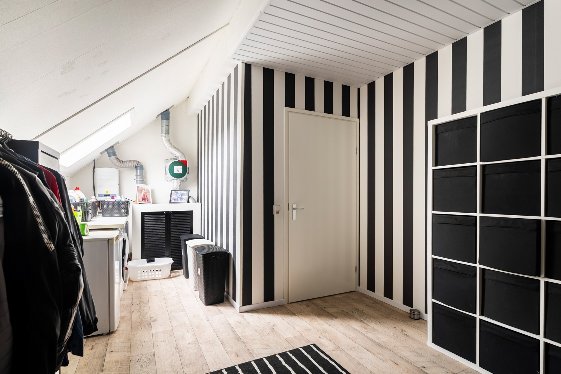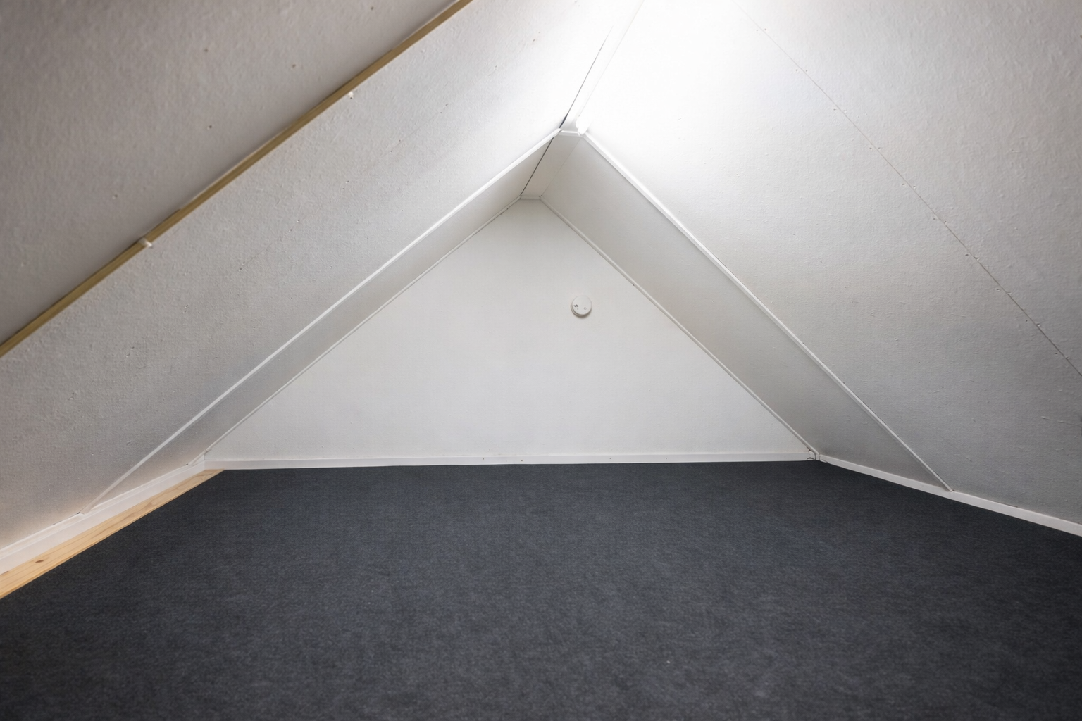 Via een vaste trap bereik je de ruime overloop van de tweede verdieping, die toegang geeft tot twee royale slaapkamers en daarnaast — eveneens via een vaste trap — tot de praktische bergzolder. De slaapkamer aan de voorzijde is voorzien van aansluitingen voor wasmachine en droger, de mv-box en de omvormer van de 14 zonnepanelen, waardoor deze ruimte ook ideaal te gebruiken is als comfortabele wasruimte. Beide slaapkamers beschikken over knieschotten, wat zorgt voor verrassend veel bergruimte. Voor een prettige lichtinval zijn zowel de overloop als beide slaapkamers voorzien van een Velux-dakraam. Ook op deze verdieping ligt een onderhoudsvriendelijke vinylvloer in combinatie met vloerverwarming.