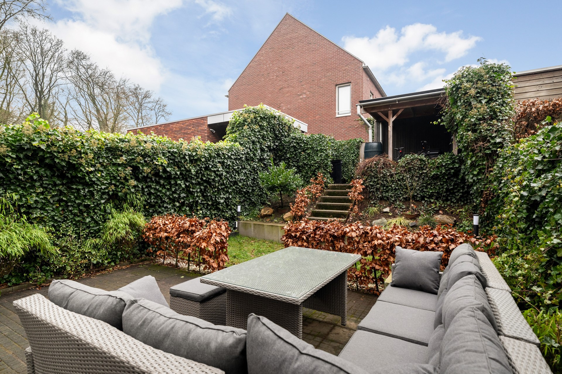 De groene achtertuin bereik je via de openslaande deuren in de woonkamer of via een praktische achterom en vormt een heerlijke plek om buiten te ontspannen. Dankzij de speelse hoogteverschillen in de tuin is er een sfeervol terras gecreëerd, waar je in alle rust kunt genieten van het buitenleven. Achter in de tuin staat een vrijstaande houten berging met overkapping, ideaal voor het stallen van fietsen en het opbergen van tuingereedschap. Tot slot is er in de straat ruime parkeergelegenheid, zodat je altijd comfortabel je auto kunt parkeren.