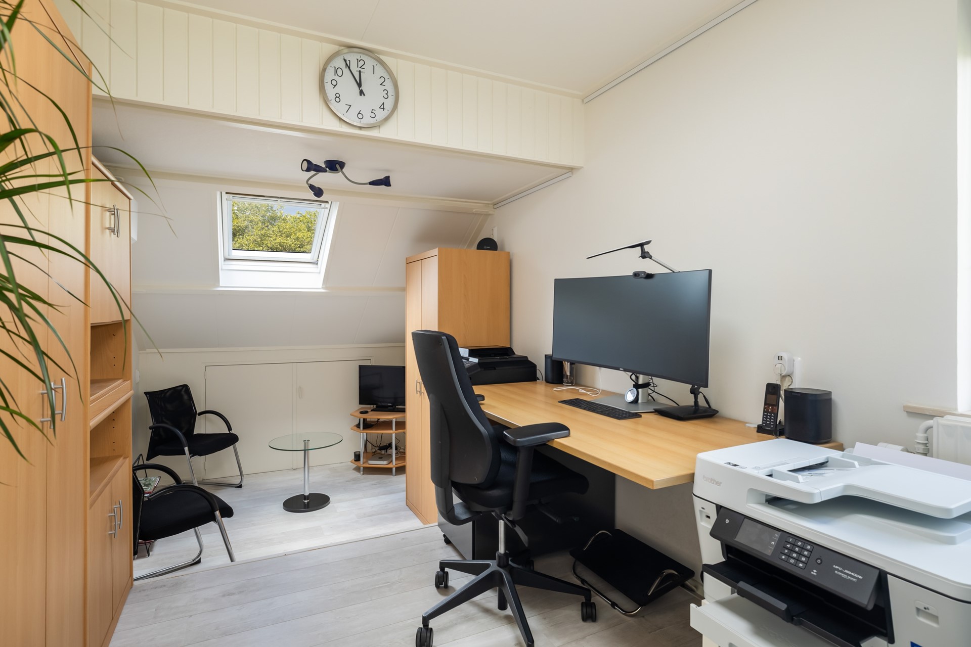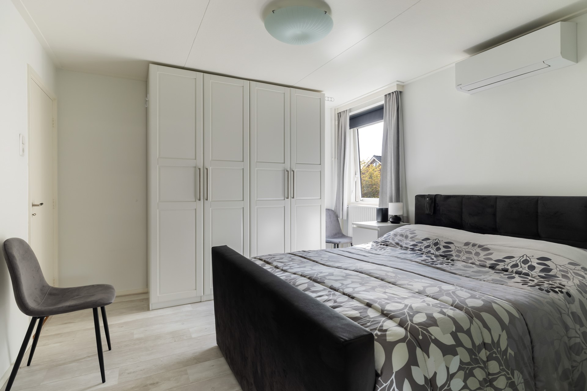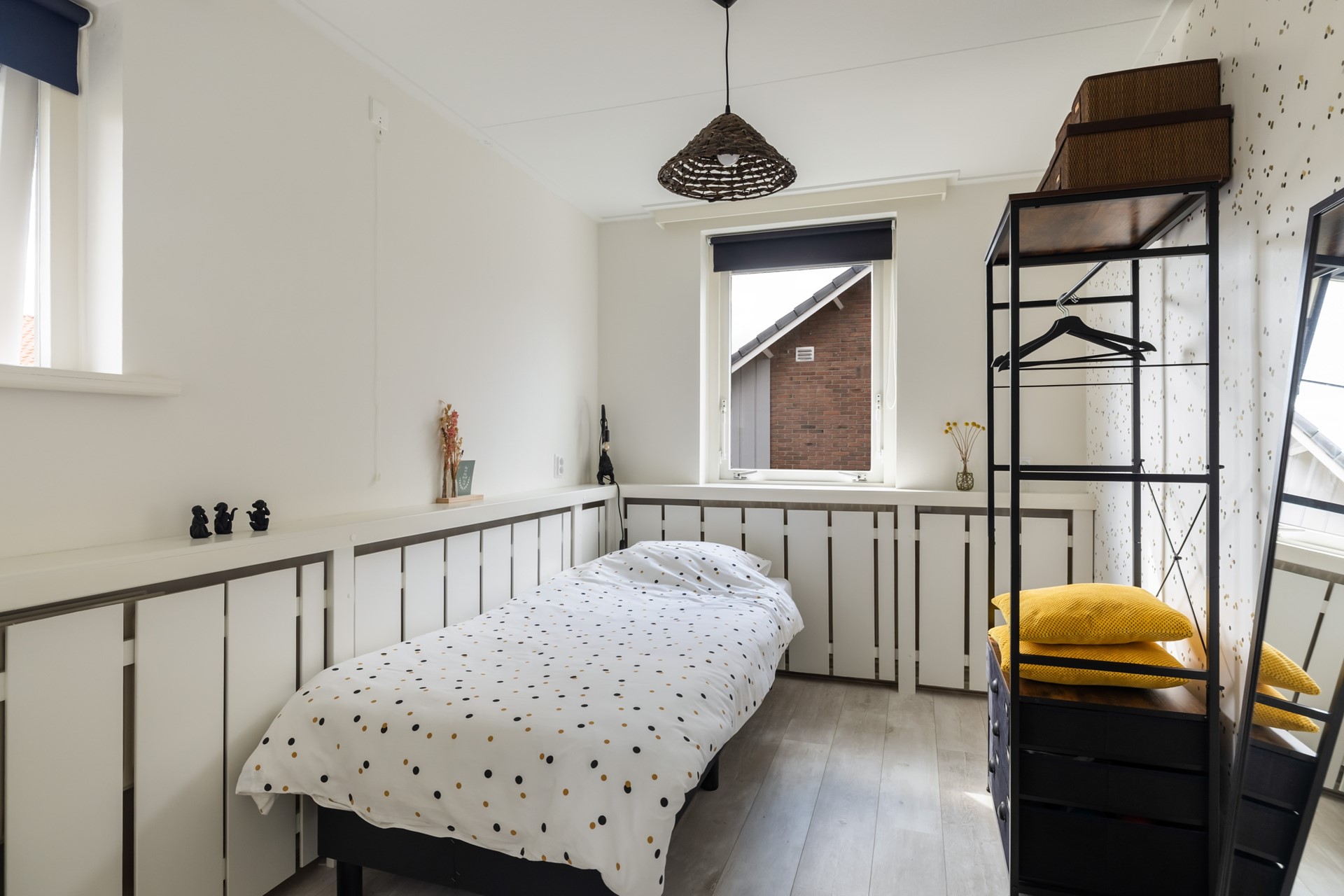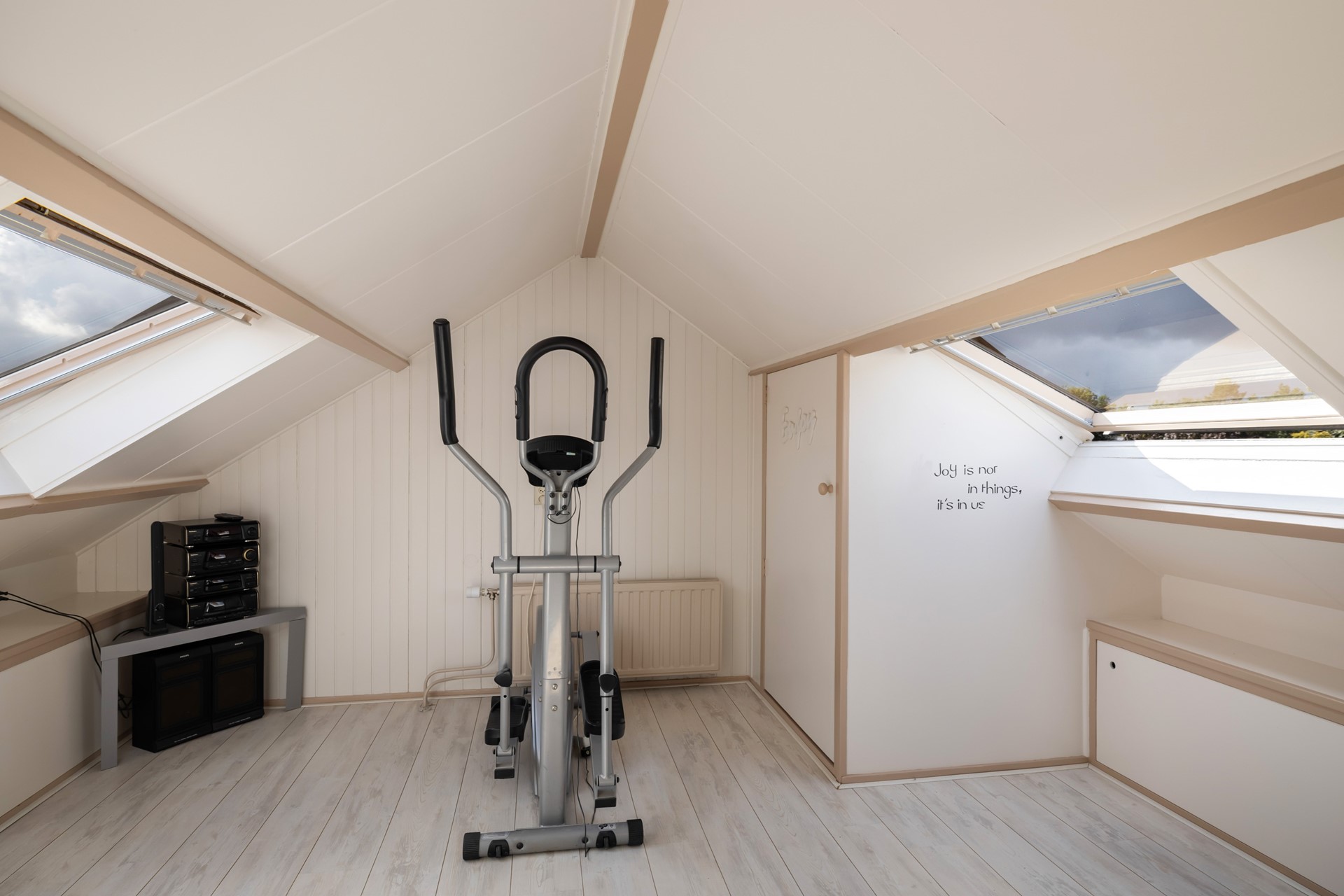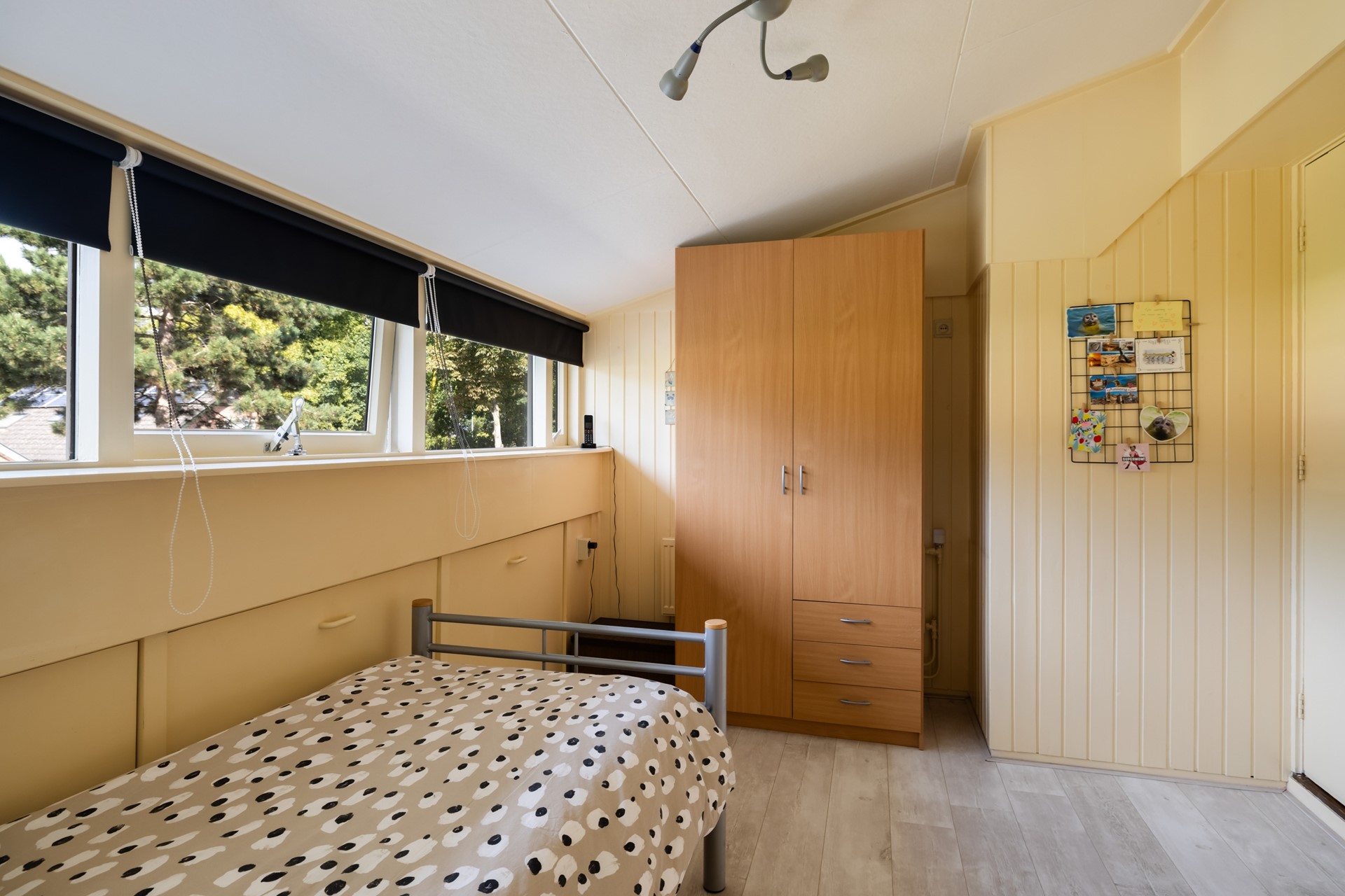 Via de overloop kom je bij de slaapkamers en de badkamer. De badkamer is in 2020 vernieuwd en voorzien van een inloopdouche, toilet en wastafelmeubel. De ouderslaapkamer beschikt over twee vaste kasten en airconditioning. Vanuit deze kamer kom je in een extra kamer met veel bergruimte achter de knieschotten. Daarnaast is er een slaapkamer aan de voorzijde en een (slaap)kamer met een keukenblokje, airconditioning en dakraam, die weer toegang geeft tot een volgende (slaap)kamer boven de uitbouw, eveneens met een dakraam. De verdieping is afgewerkt met een nette laminaatvloer.