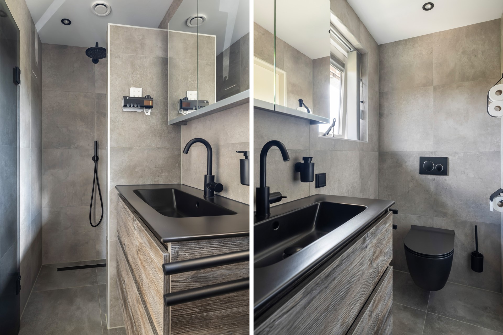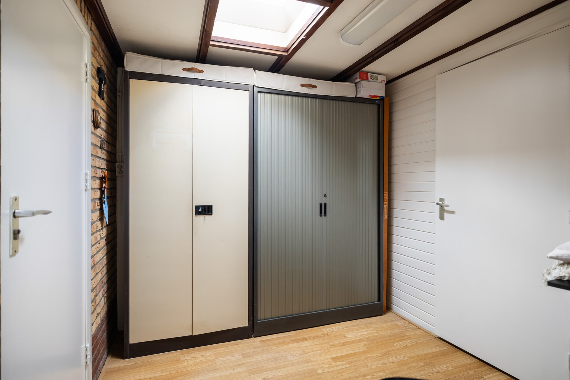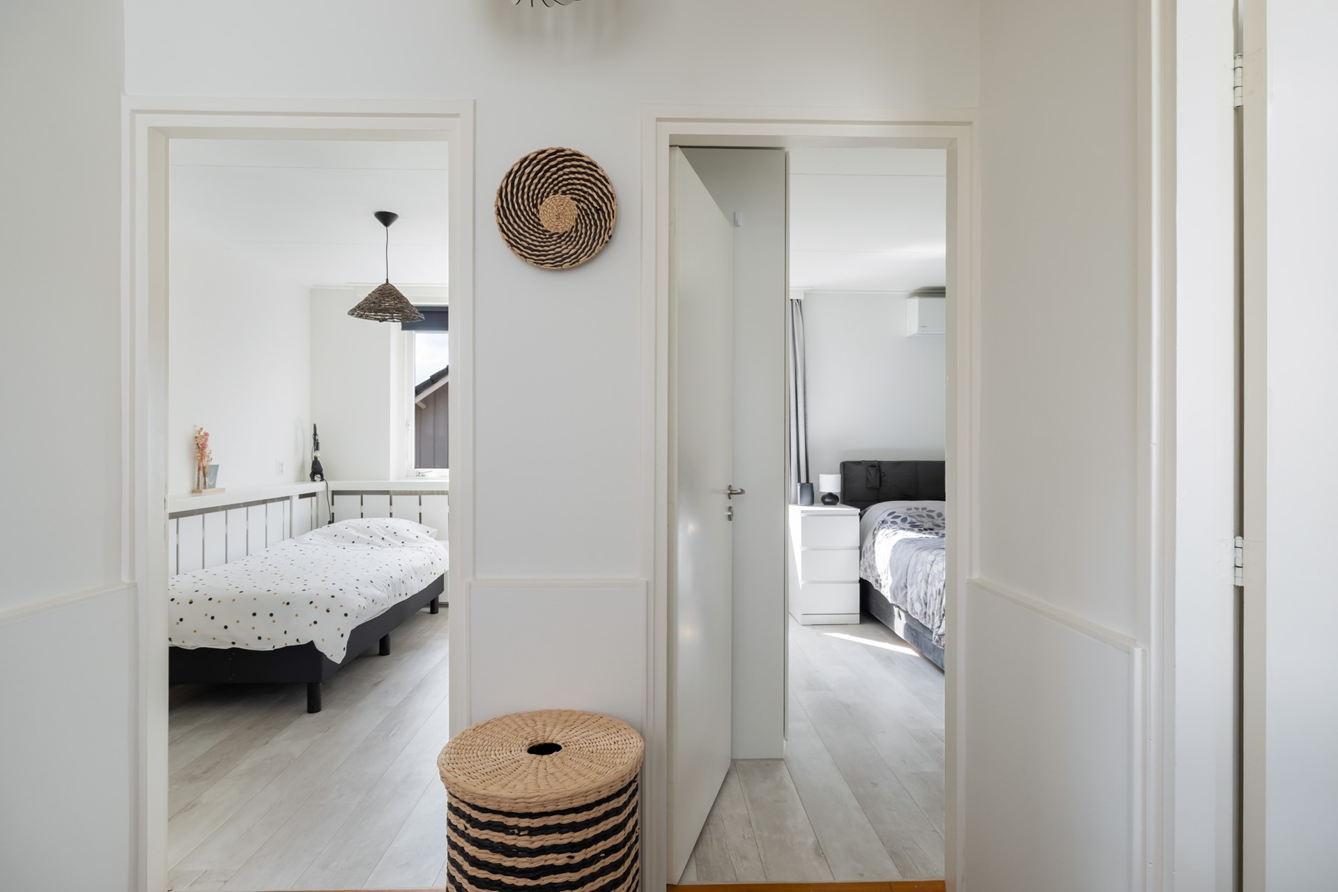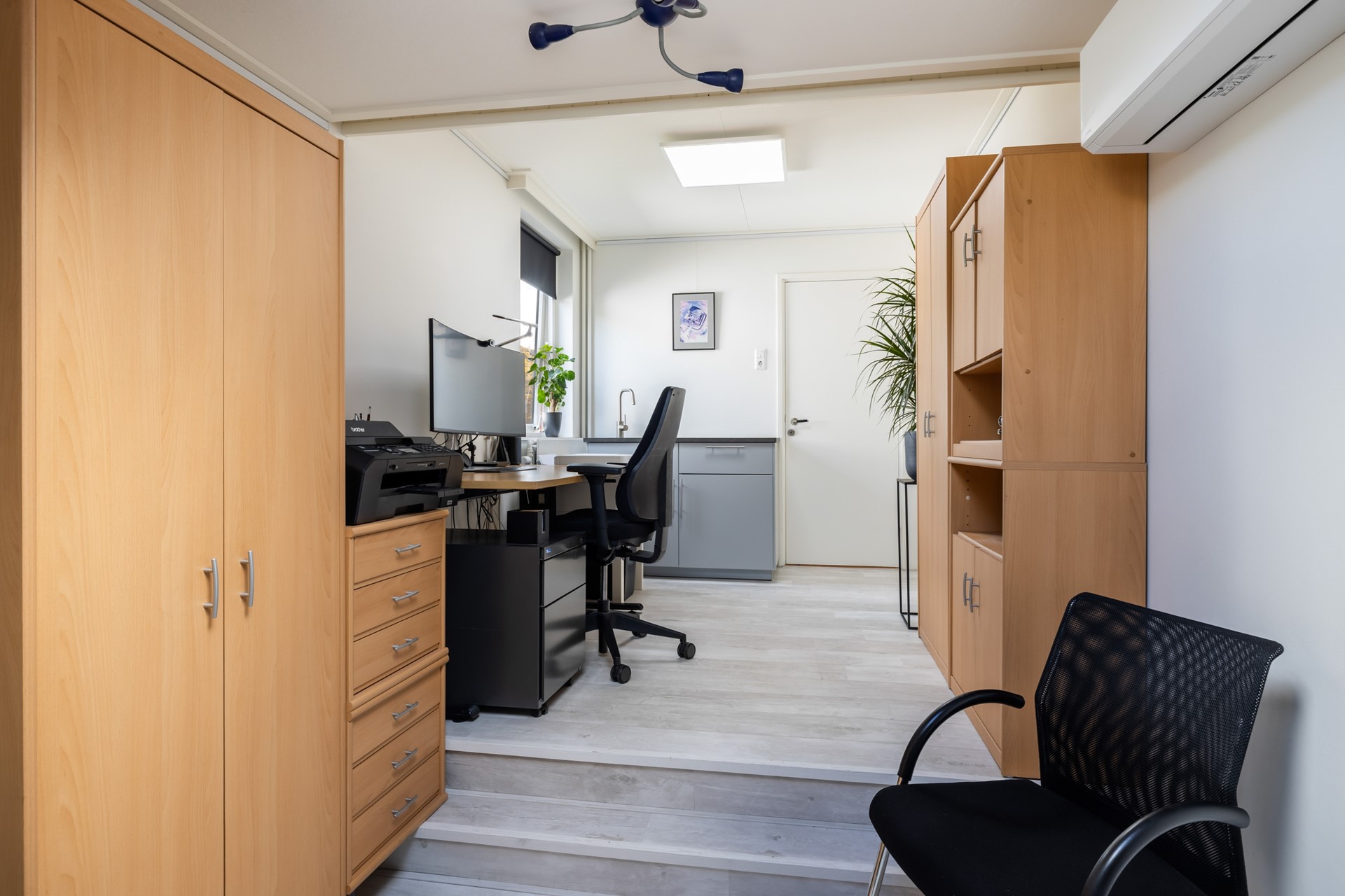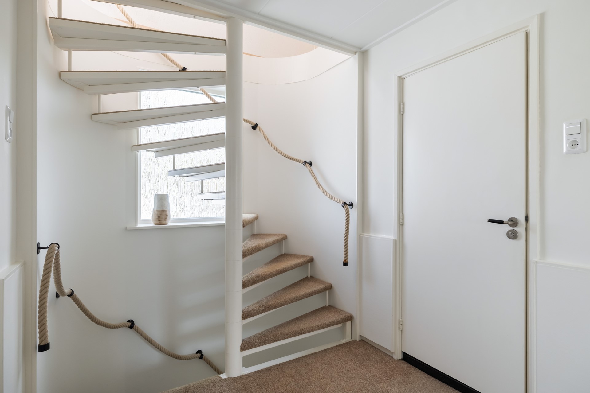 Via de overloop kom je bij de slaapkamers en de badkamer. De badkamer is in 2020 vernieuwd en voorzien van een inloopdouche, toilet en wastafelmeubel. De ouderslaapkamer beschikt over twee vaste kasten en airconditioning. Vanuit deze kamer kom je in een extra kamer met veel bergruimte achter de knieschotten. Daarnaast is er een slaapkamer aan de voorzijde en een (slaap)kamer met een keukenblokje, airconditioning en dakraam, die weer toegang geeft tot een volgende (slaap)kamer boven de uitbouw, eveneens met een dakraam. De verdieping is afgewerkt met een nette laminaatvloer.