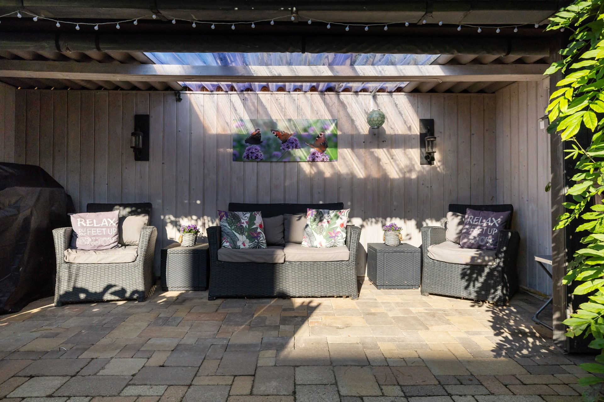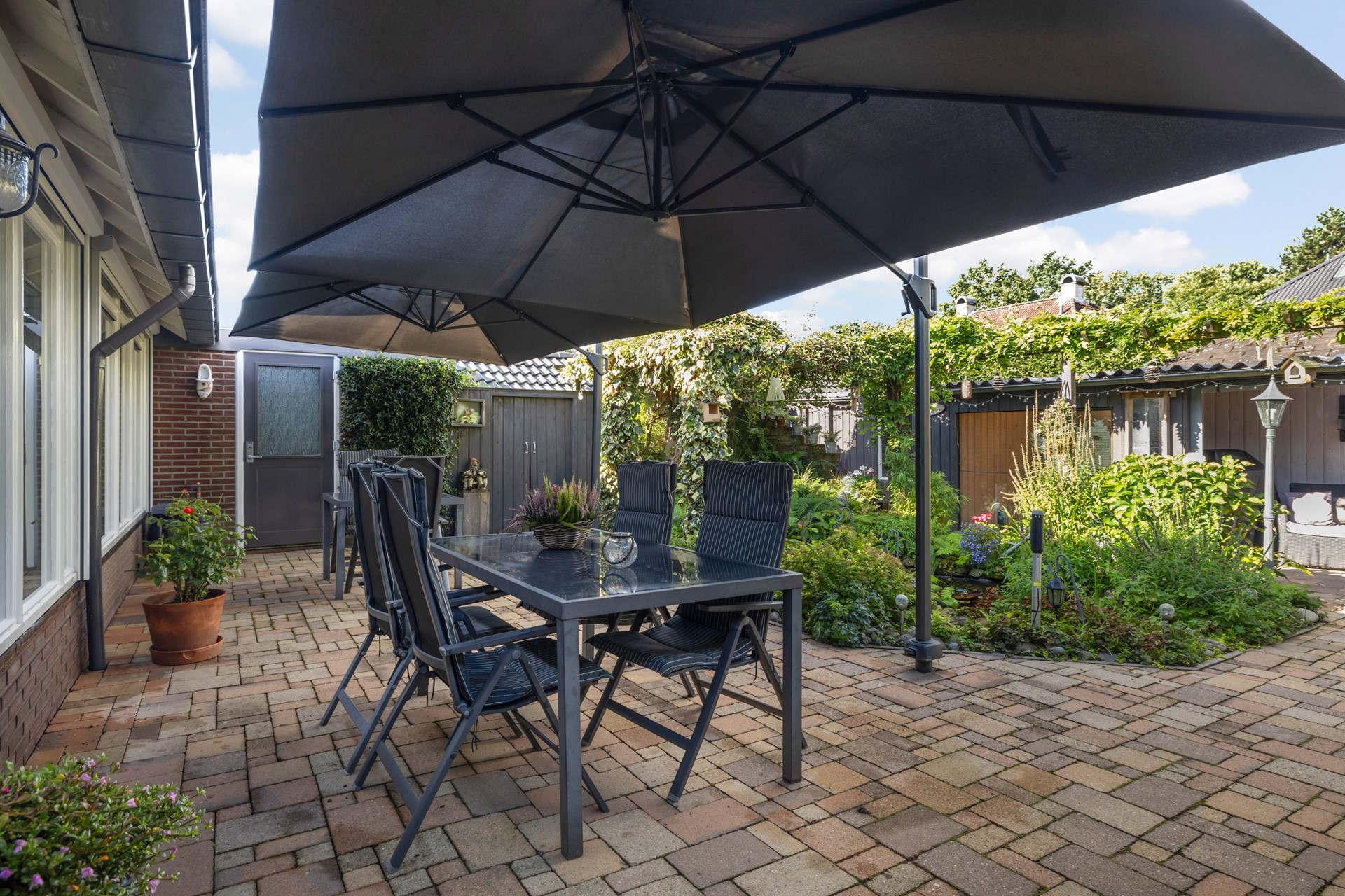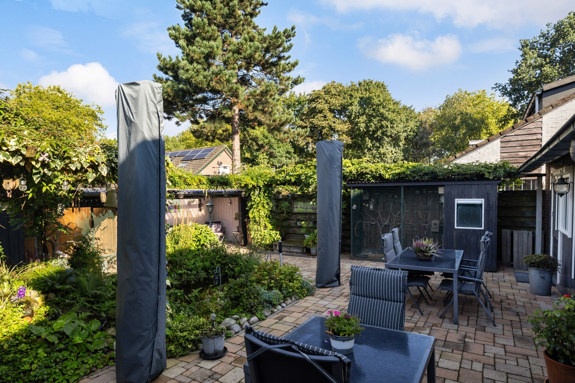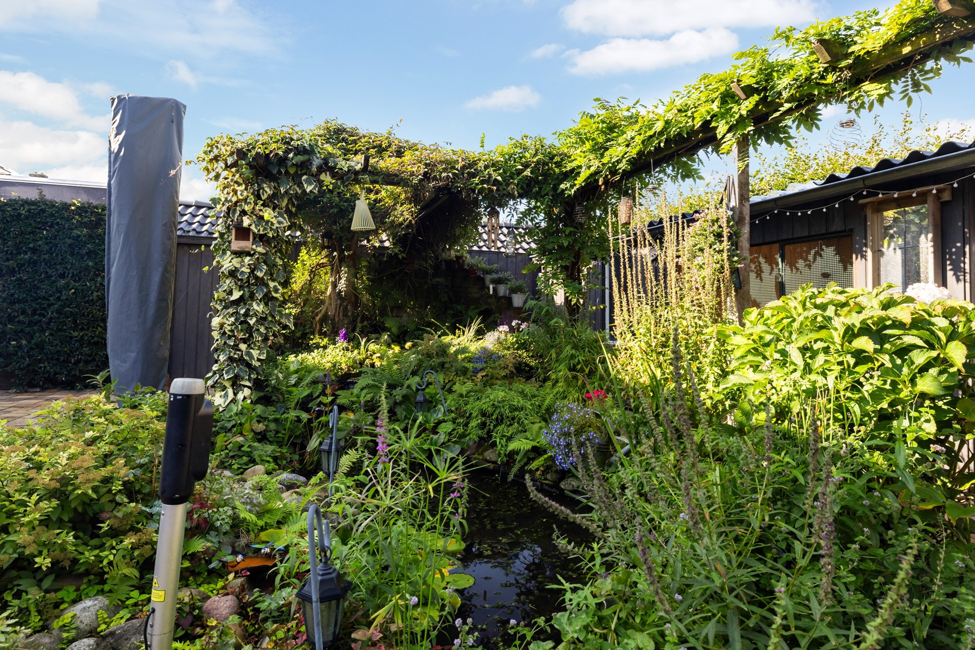 De verzorgde tuin is een fijne plek om van het buitenleven te genieten. Er zijn meerdere houten bergingen, ideaal voor fietsen of tuingereedschap. Daarnaast beschikt de tuin over sierbestrating, groene borders, verschillende terrassen, kippen & vogels, vijver met waterval en een gezellige overkapping. Aan de voorzijde vind je een oprit waardoor je op eigen terrein kan parkeren. Kortom: een sfeervolle woning met veel ruimte, zowel binnen als buiten. Kom het zelf ervaren tijdens een bezichtiging – we verwelkomen je graag!