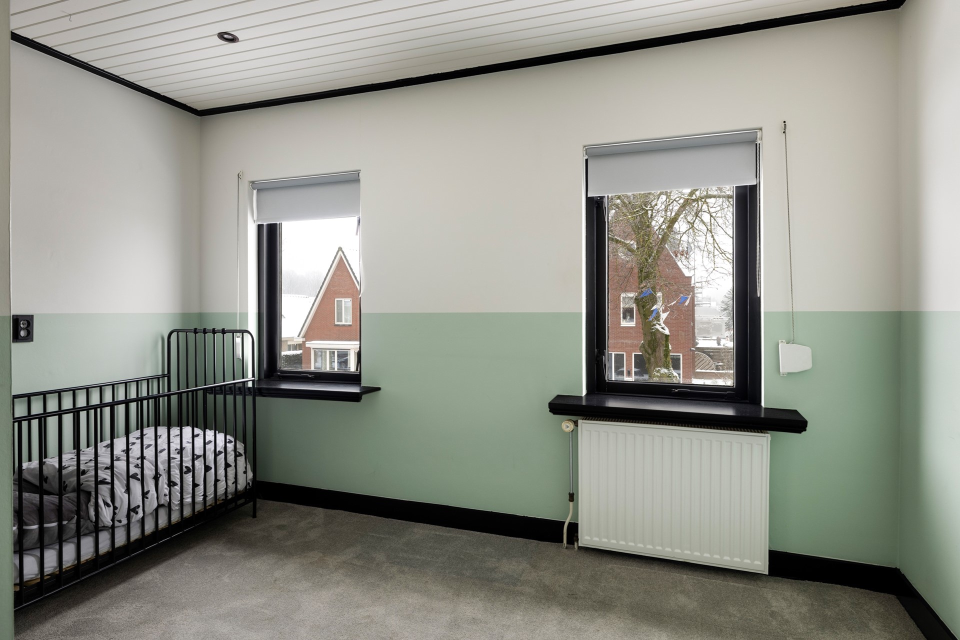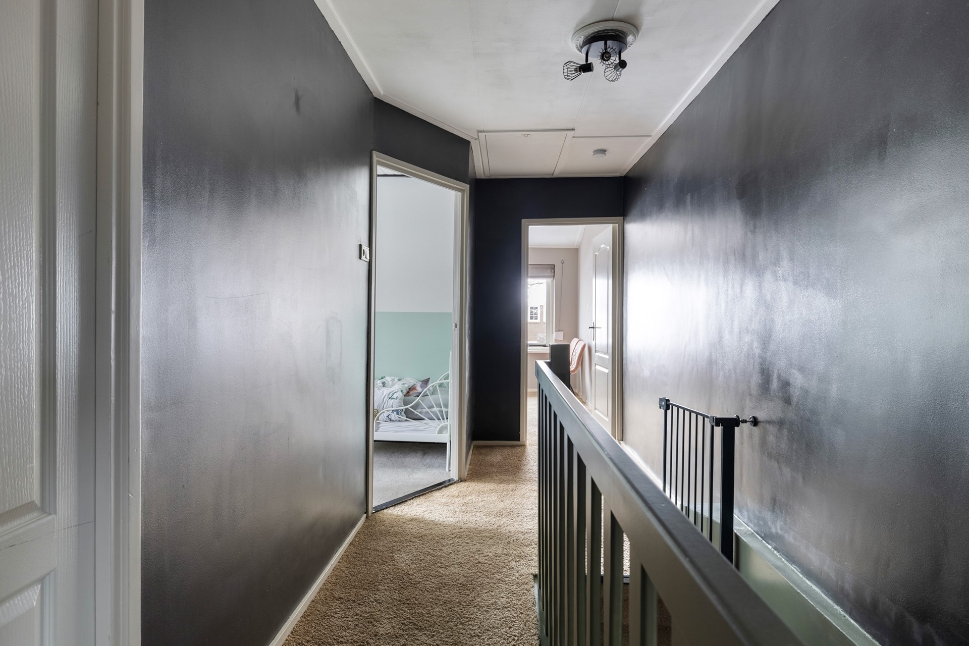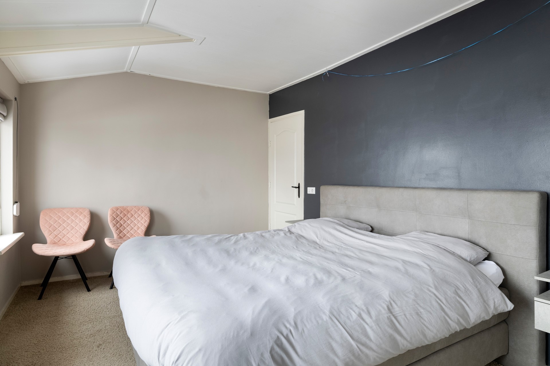 Via de overloop zijn de drie slaapkamers bereikbaar. De ouderslaapkamer, uitgerust met een schuifkastenwand, bevindt zich aan de voorzijde van de woning. De tweede slaapkamer heeft een inbouwkast, terwijl de derde slaapkamer aan de achterzijde is gesitueerd en direct toegang biedt tot het balkon. Alle slaapkamers zijn voorzien van rolluiken. Op de overloop bevinden zich tevens de cv-installatie (Nefit, 2008), de aansluitingen voor de wasmachine en een inbouwkast. En op het balkon is de warmtepomp (Sprsun, 2024) geplaatst. Via een vlizotrap is de ruime bergzolder toegankelijk.