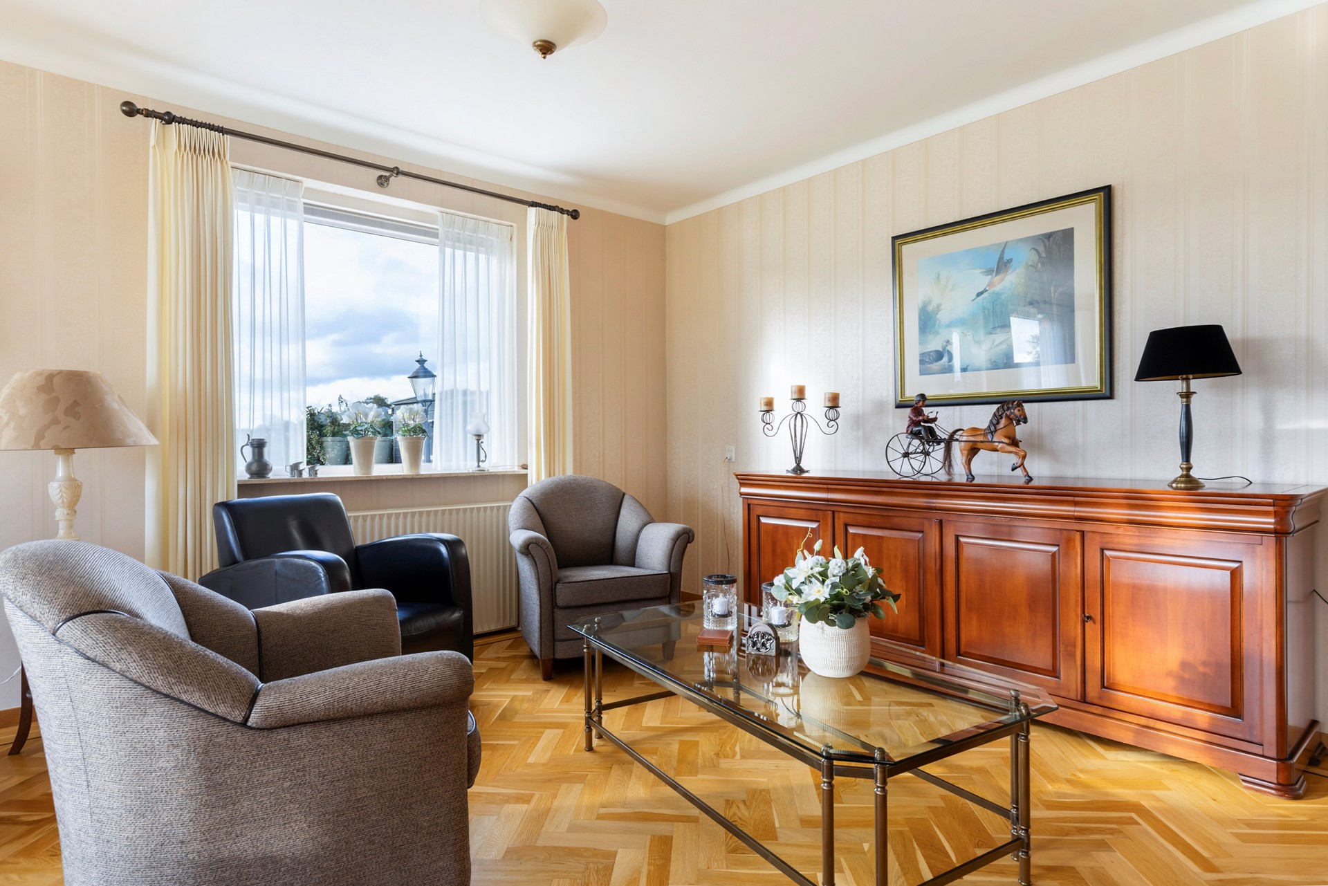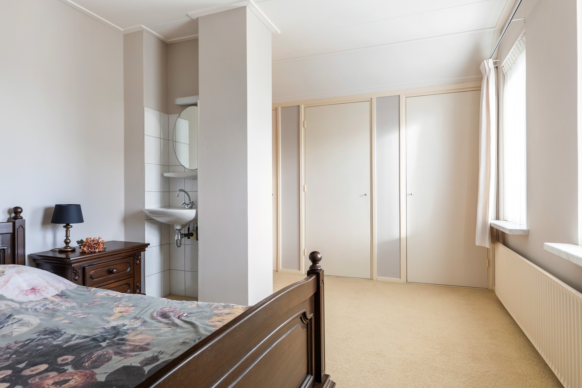 Via een vaste trap bereik je de overloop op de eerste verdieping. Vanaf hier heb je toegang tot drie slaapkamers. De twee grootste slaapkamers zijn voorzien van handige vaste kasten voor opbergruimte en een wastafel, terwijl de derde slaapkamer over extra licht en ruimte beschikt dankzij de aanwezige dakkapel. De verdieping is afgewerkt met een combinatie van laminaat en vloerbedekking.