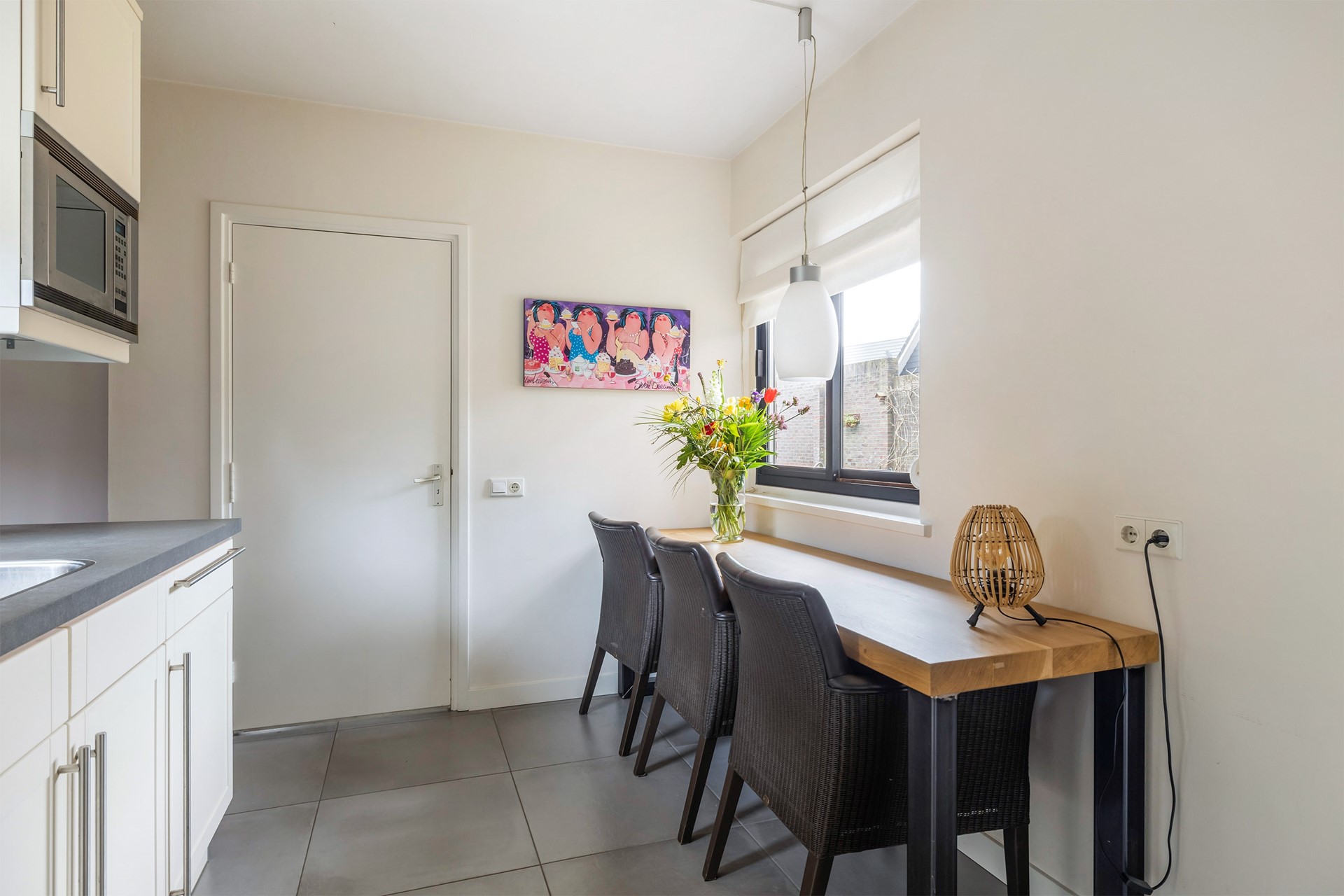 De op het oosten georiënteerde tuin achter de woning is fraai aangelegd en voorzien van zwembad, diverse sierbestrating en diverse groene borders. Er is voldoende ruimte om een gezellige zithoek te creëren; zo is er altijd wel een fijne plek te vinden in deze sfeervolle tuin. Verschillende ramen zijn voorzien van rolluiken en via een poort naast de woning is de achtertuin bereikbaar. Tot slot zijn er recent maar liefst 17 zonnepanelen aangelegd en is er voor de warme dagen comfortabele airconditioning aanwezig.