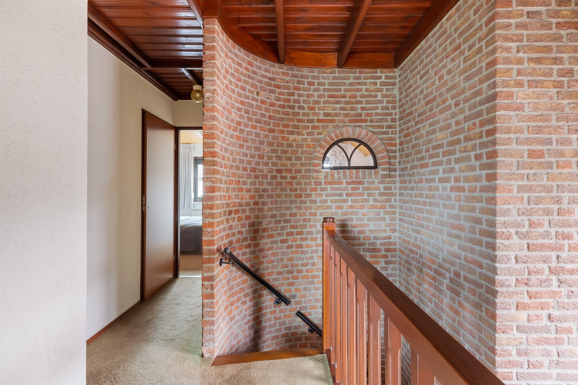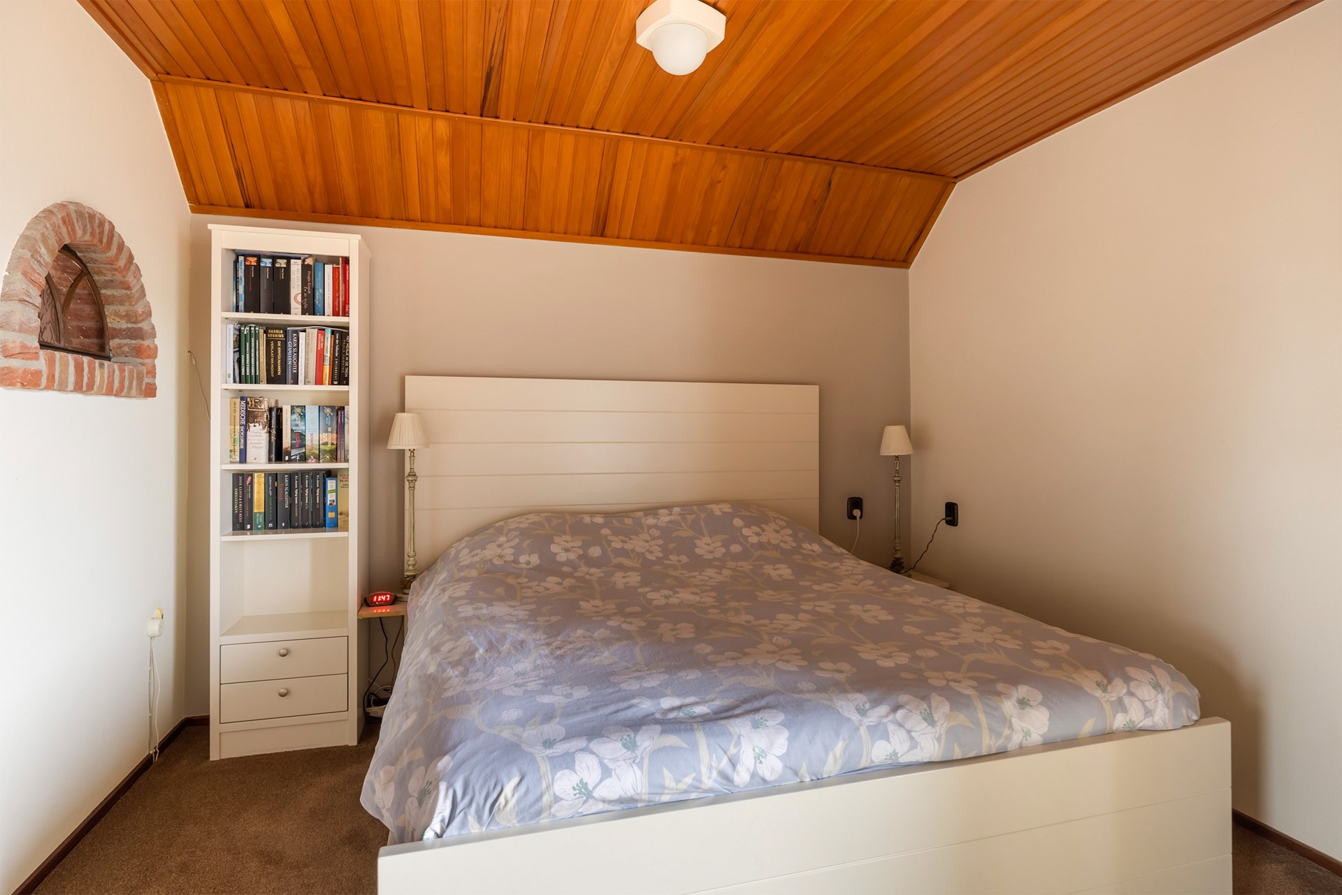 Via de vaste trap bereik je de overloop van de eerste verdieping. Deze overloop biedt toegangtot 3 ruime slaapkamers en de badkamer. De badkamer met Velux-dakraam is geheel betegeld en beschikt over een ligbad, inloopdouche, wastafelmeubel en een toilet. De slaapkamer aan de achterzijde van de woning biedt toegang tot het balkon en de 2 slaapkamers aan de voorzijde beschikken beide – net als de overloop – over een vaste kastruimte. Via een luik op de overloop is de vliering bereikbaar en tot slot is er nog een slaapkamer boven de uitbouw aanwezig. Deze kamer met een wastafel is te bereiken via de overloop vanuit de berging. In een vaste kast is daar tevens de c.v.-installatie (Nefit Topline) gesitueerd.