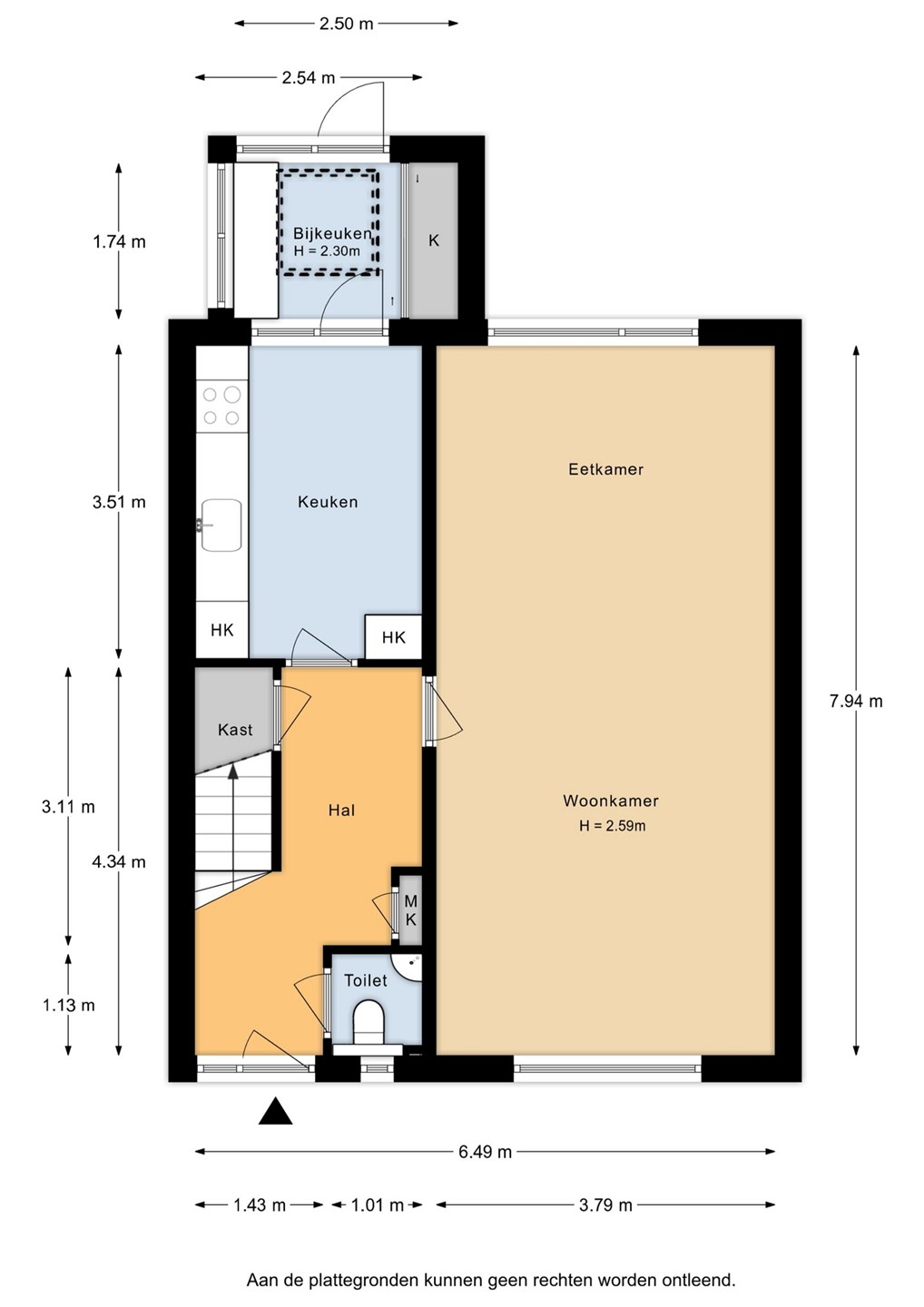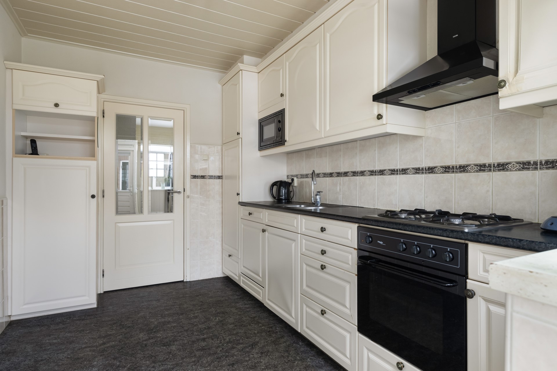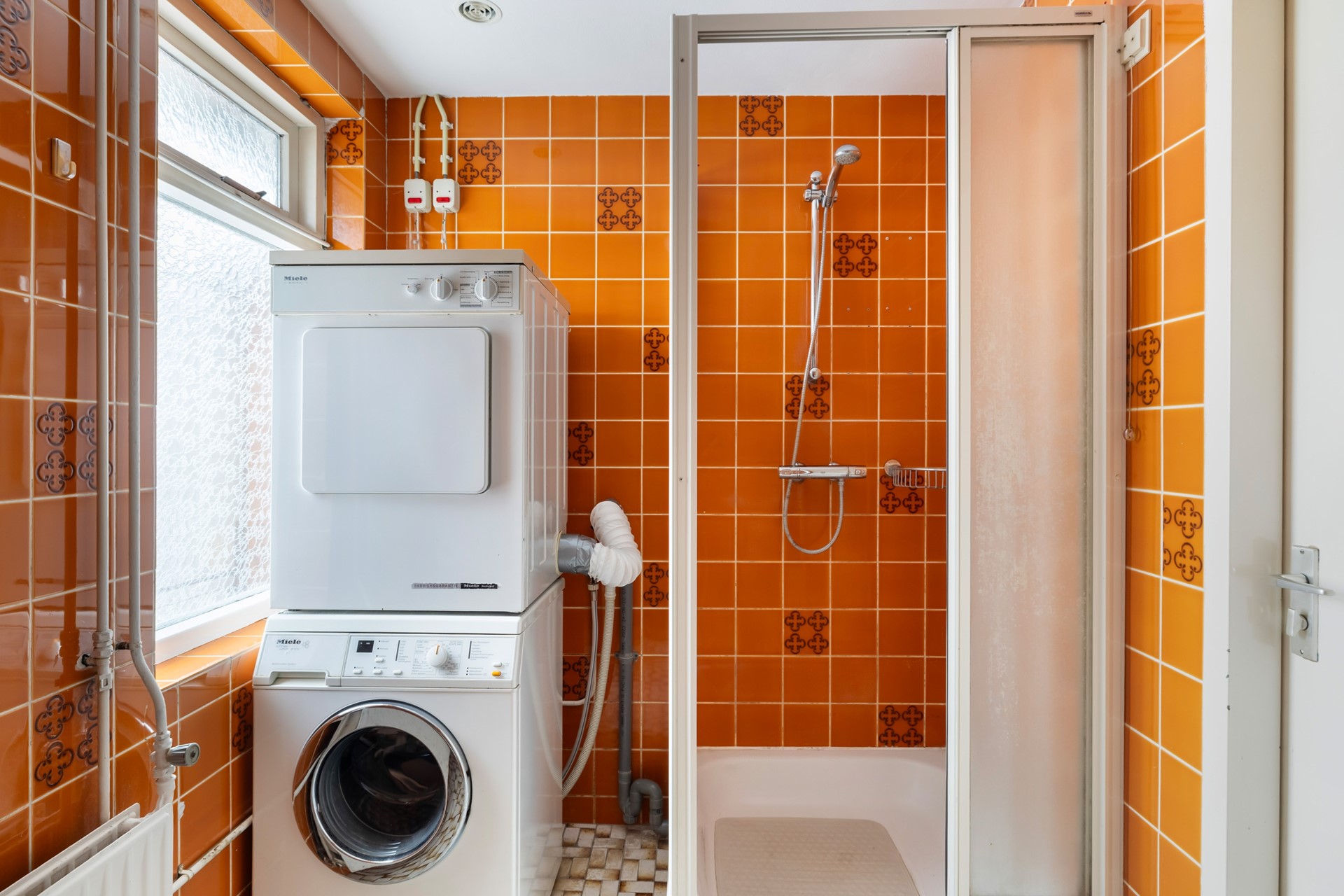 Via de entree kom je in de hal, die toegang geeft tot de trap naar de eerste verdieping, een praktische provisiekast, de meterkast, het toilet, de keuken en de doorzonwoonkamer. De ruime doorzonwoonkamer is licht en open en biedt volop mogelijkheden voor een comfortabele zit- en eethoek. Daarnaast bestaat de mogelijkheid om, door het verwijderen van een tussenmuur, een open keuken te realiseren. Het rookkanaal is nog volledig intact, waardoor het eenvoudig is om een sfeervolle haard te plaatsen. De keuken is ingericht in een rechte opstelling en uitgerust met een 4-pits kookplaat, vaatwasser, oven, magnetron, afzuigkap en koelkast. Aansluitend bevindt zich de bijkeuken met vloerverwarming, die dankzij schuifdeuren aan beide zijden extra bergruimte biedt en directe toegang tot de tuin heeft.
