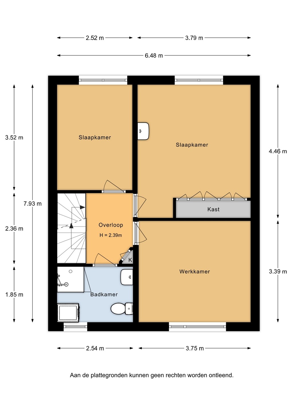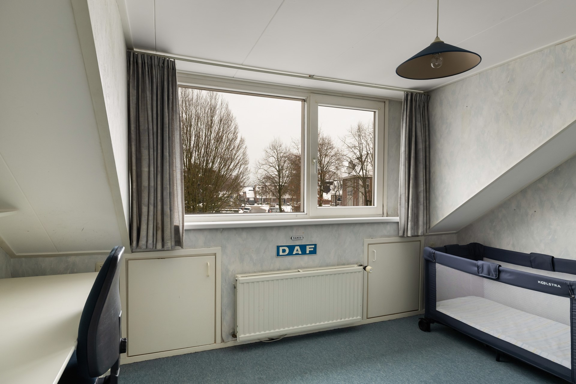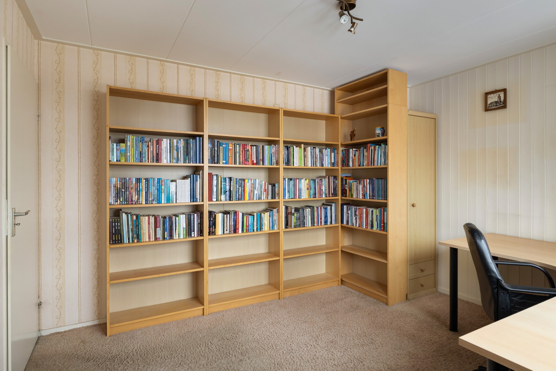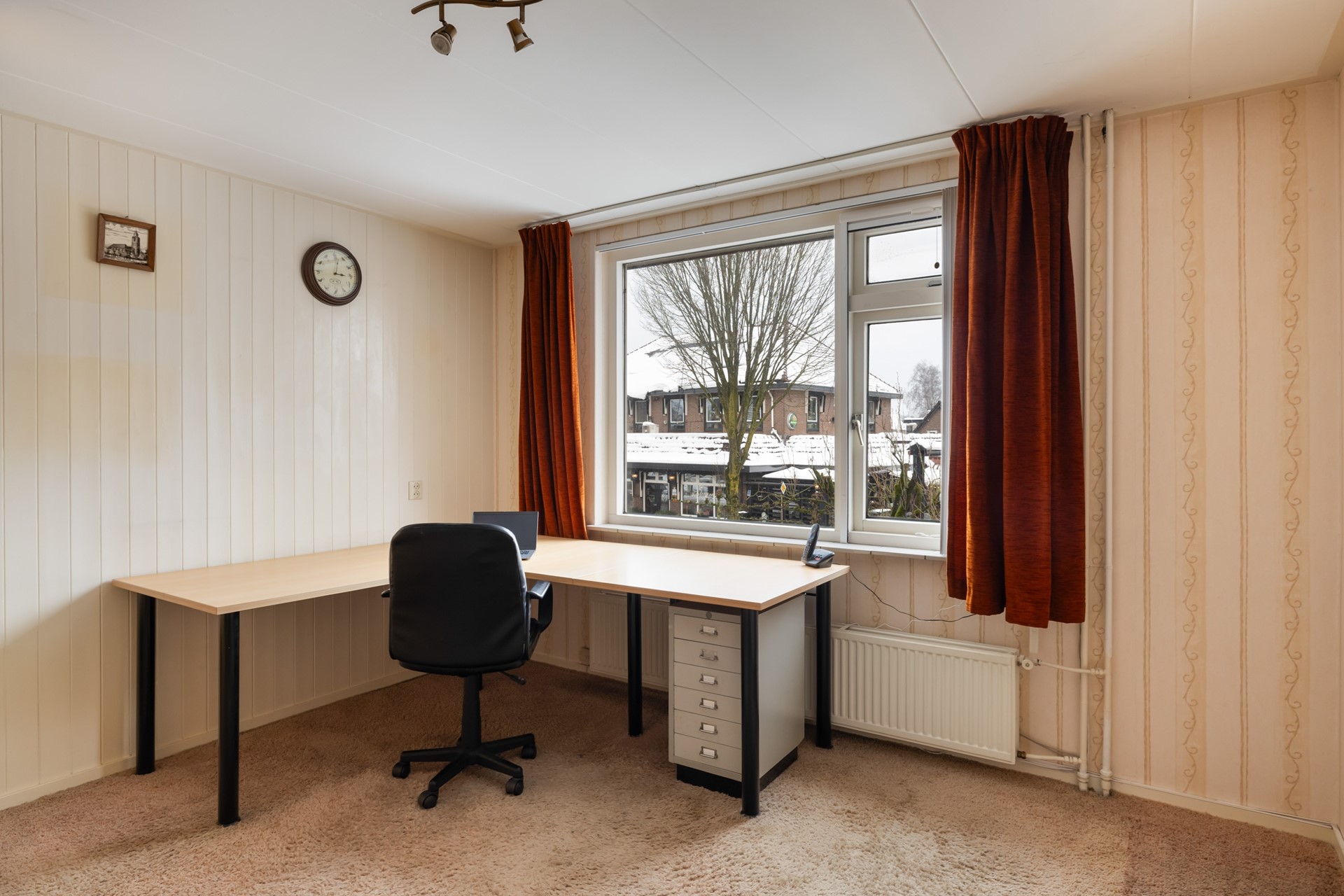 De overloop op de eerste verdieping biedt toegang tot twee ruime slaapkamers, een slaap-/werkkamer en de badkamer. De ouderslaapkamer aan de achterzijde van de woning is uitgerust met een wastafel en een vaste kastenwand. De naastgelegen kamer, eveneens aan de achterzijde, is uitstekend geschikt als werkkamer. De derde slaapkamer bevindt zich aan de voorzijde, net als de badkamer. De badkamer is voorzien van een douche, wastafel, toilet en aansluitingen voor een wasmachine en droger.