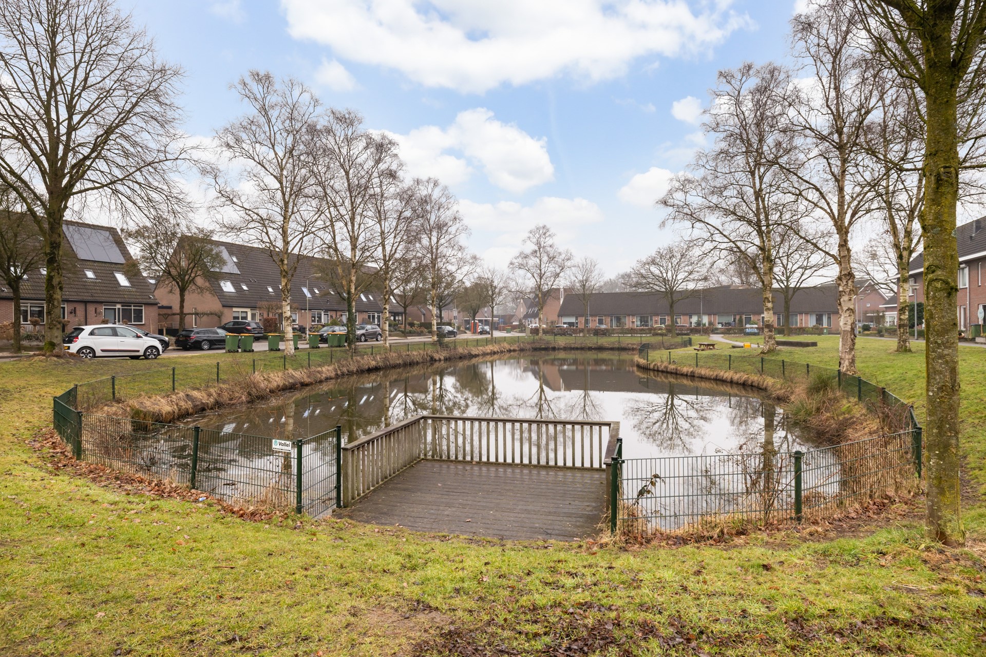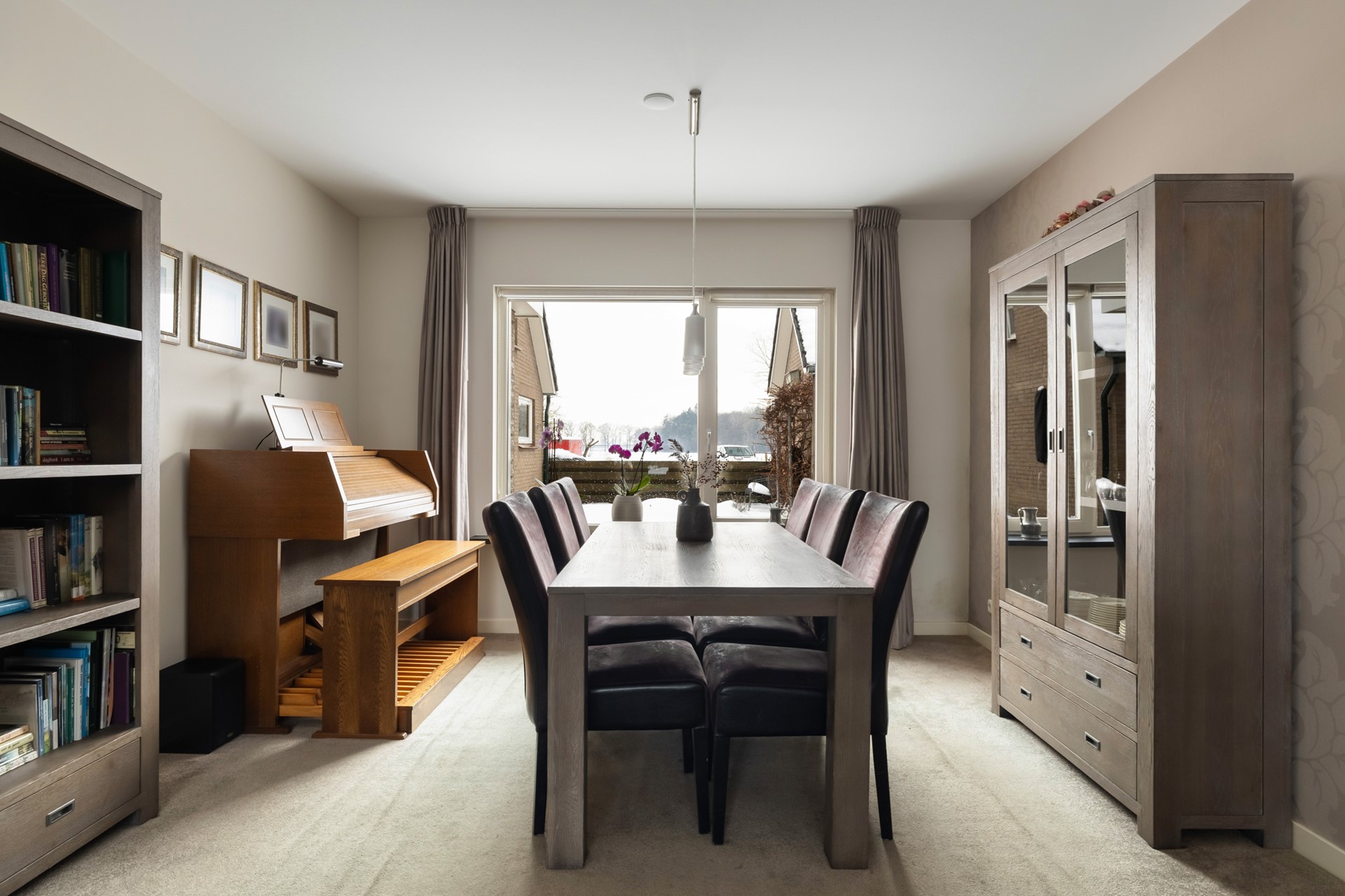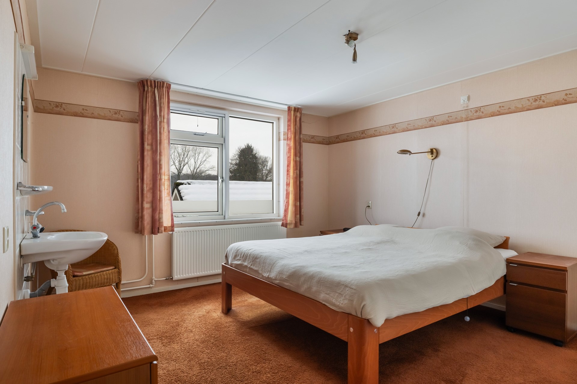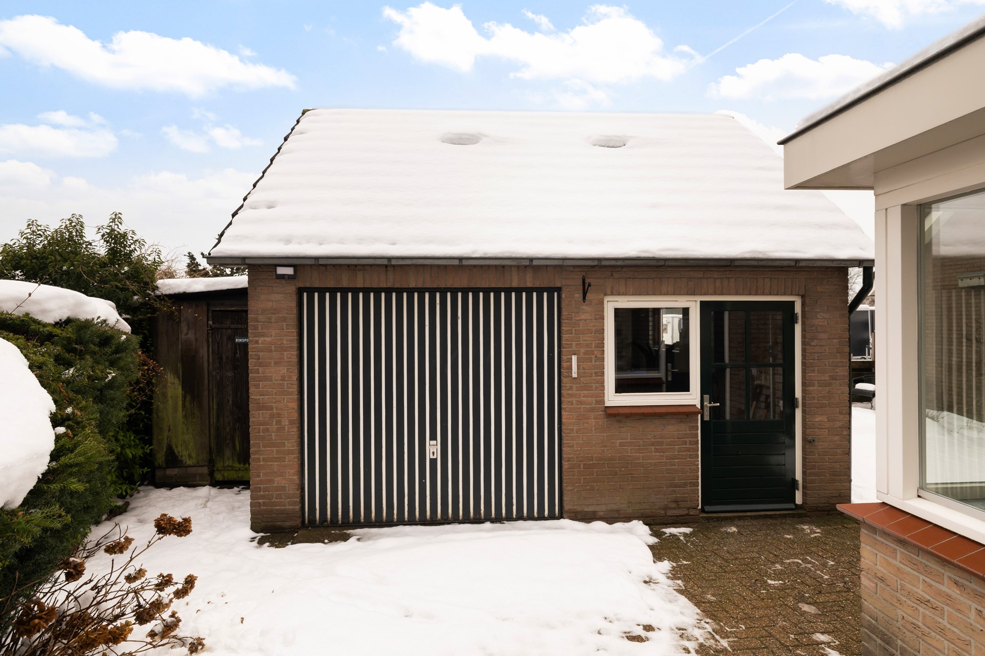 De onderhoudsvriendelijke achtertuin is grotendeels bestraat en gunstig gelegen op het zuidwesten. Door de vrije ligging aan de achterzijde ervaar je hier veel privacy en een prachtig, weids landelijk uitzicht. Daarnaast beschikt het perceel over een royale stenen garage met vliering en smeerput, aangevuld met een houten berging die ideaal is voor fietsen en tuinbenodigdheden. De lange oprit biedt plaats aan minimaal vier auto’s en ook in de garage kan een voertuig worden geparkeerd. Verder is de woning voorzien van rolluiken en een elektrisch zonnescherm.