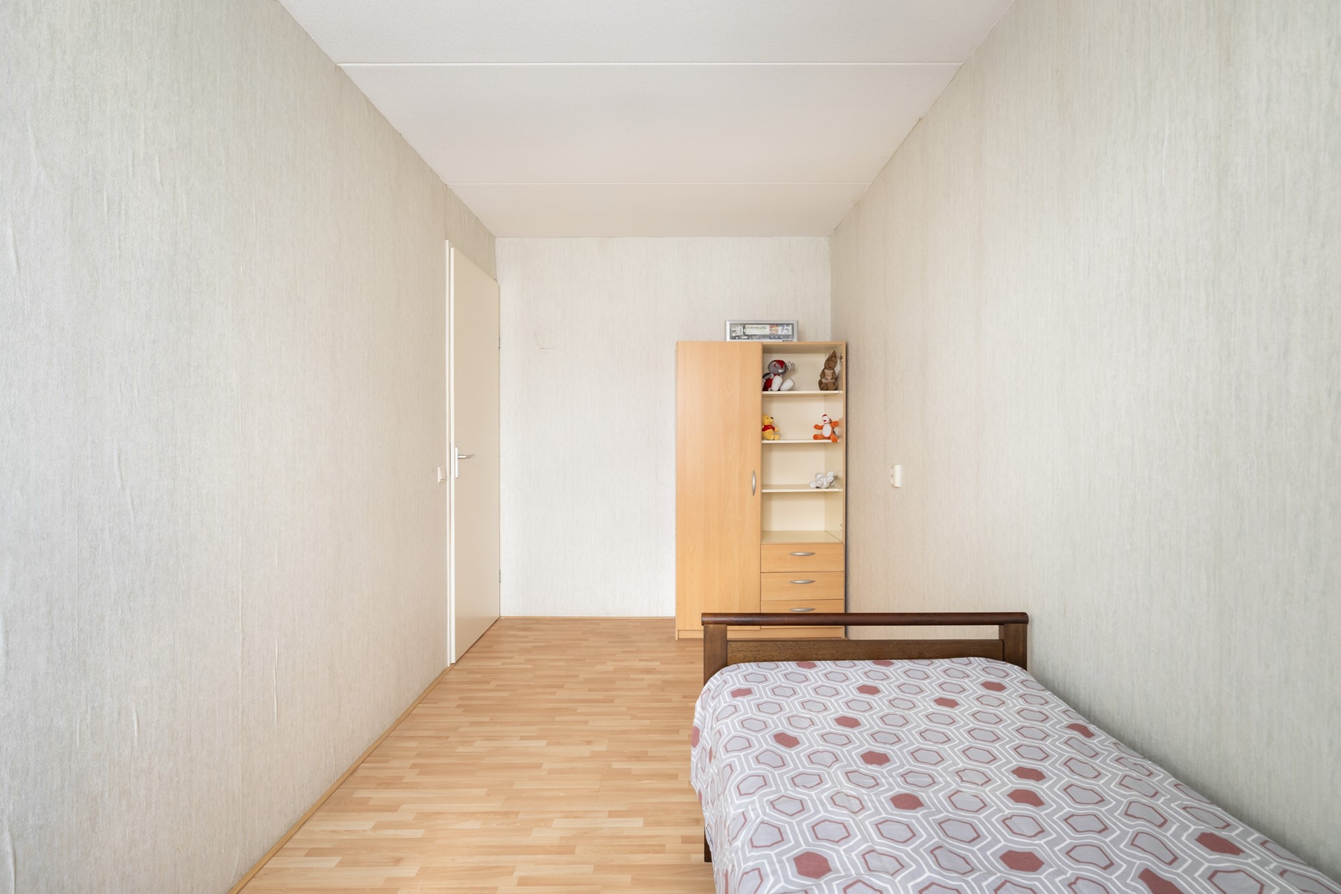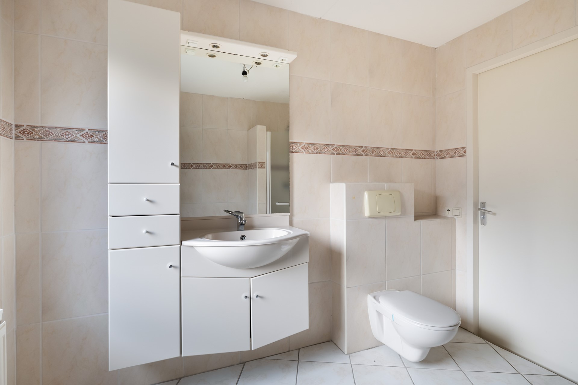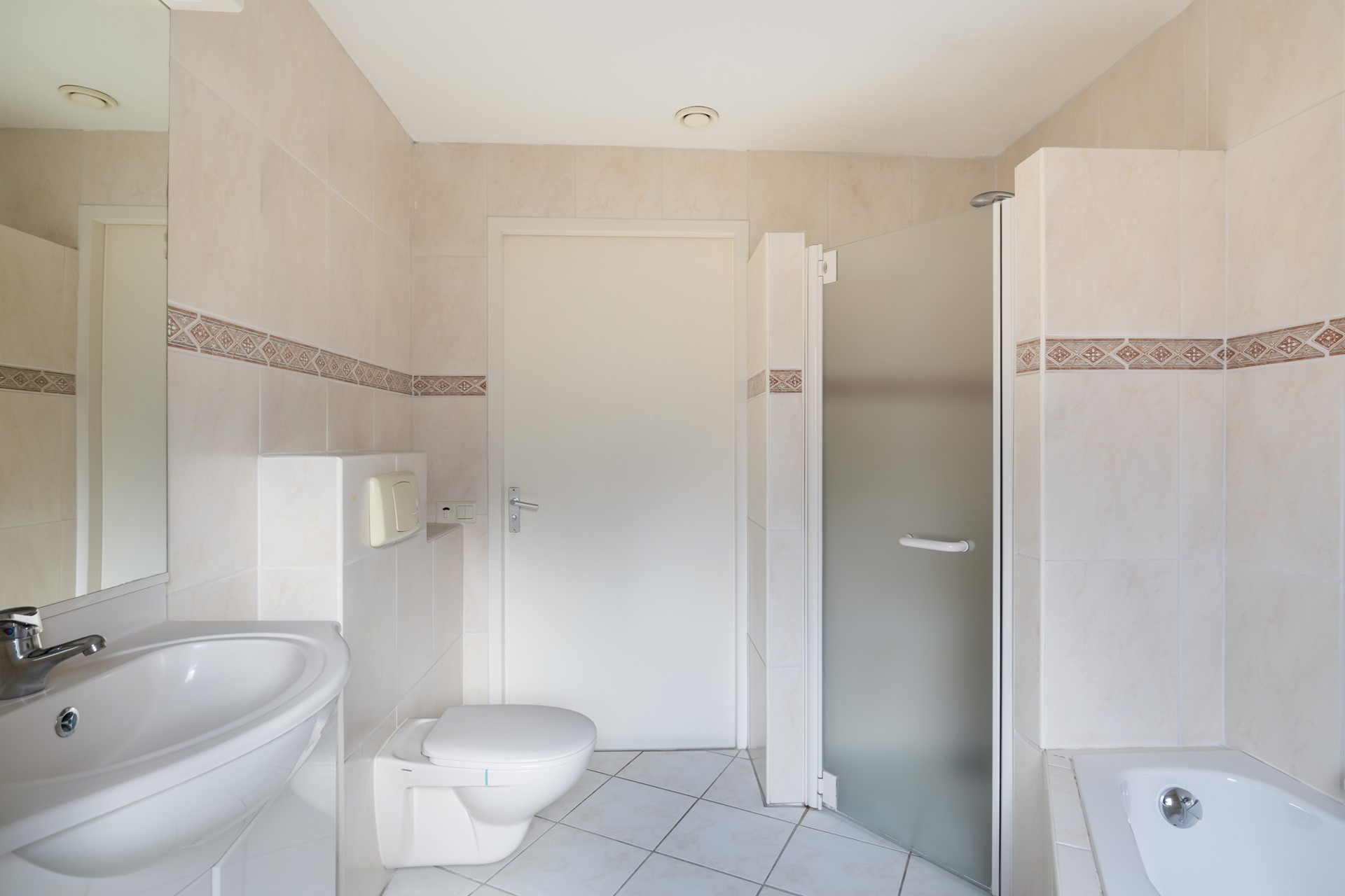 Via een vaste trap kom je op de overloop, die toegang geeft tot drie slaapkamers en de badkamer. De badkamer is compleet uitgerust met een ligbad, douche, wastafelmeubel en toilet. Aan de voorzijde bevinden zich twee slaapkamers; de derde slaapkamer ligt aan de achterzijde, naast de badkamer. De gehele verdieping is voorzien van een nette laminaatvloer.