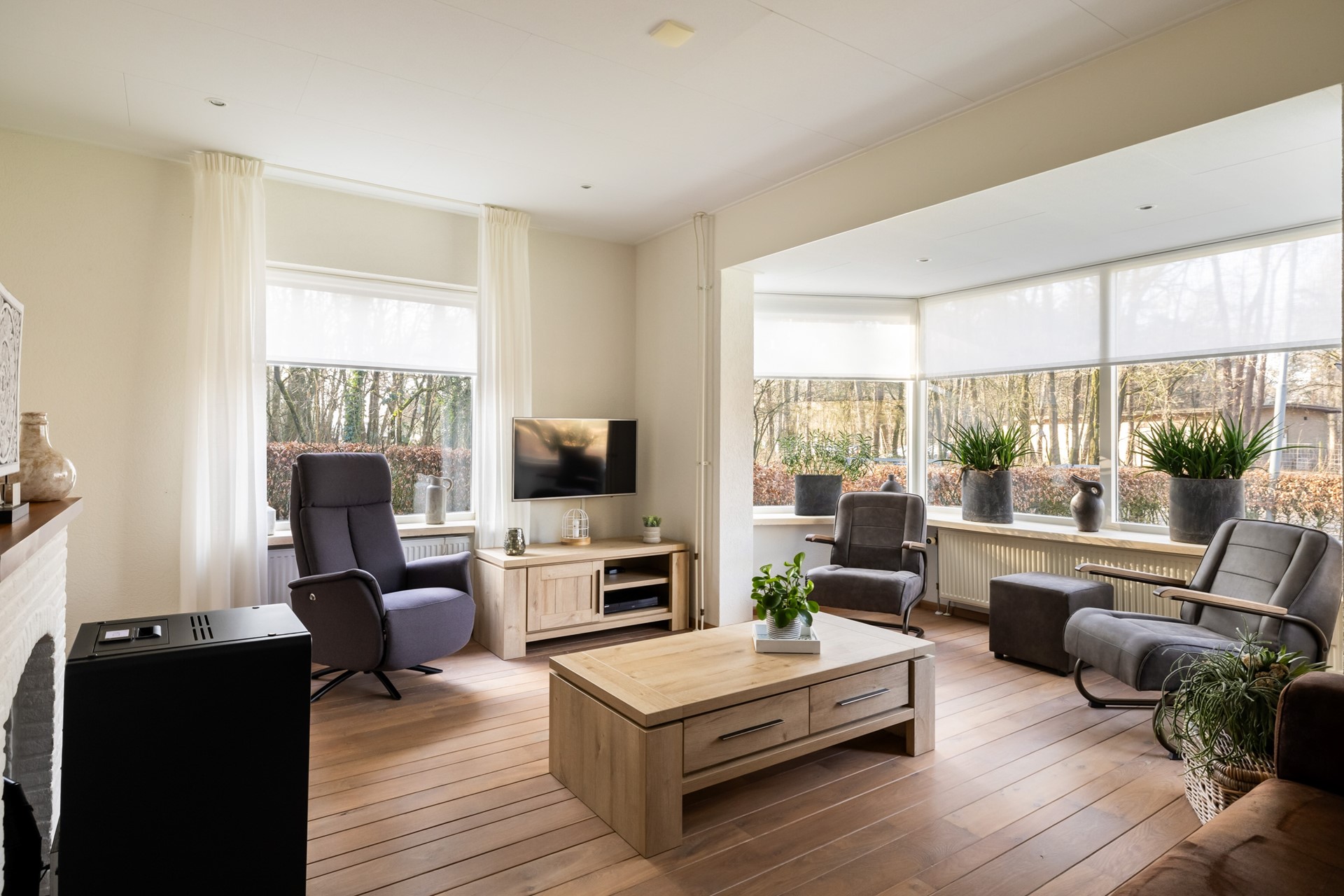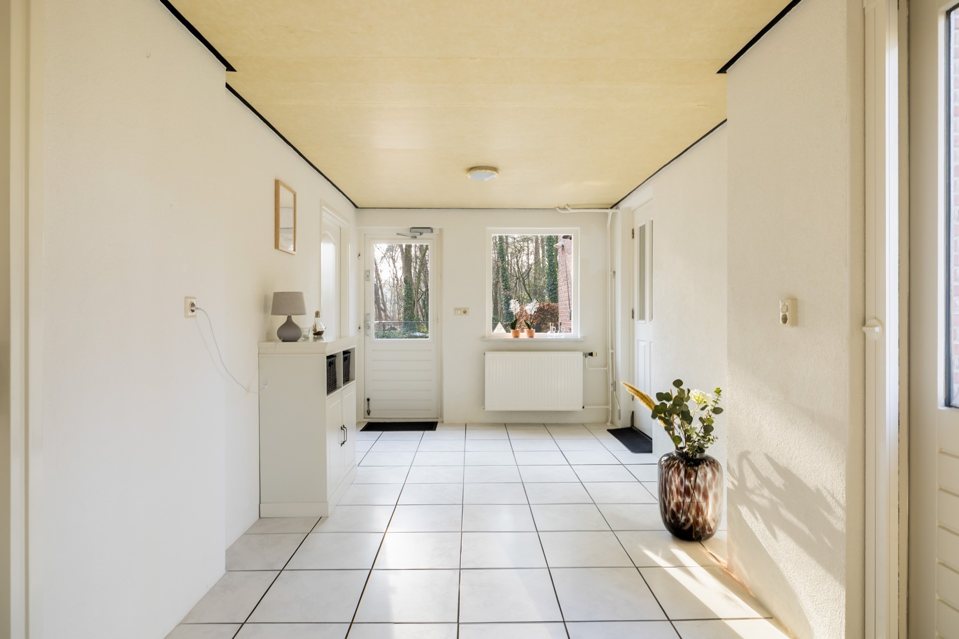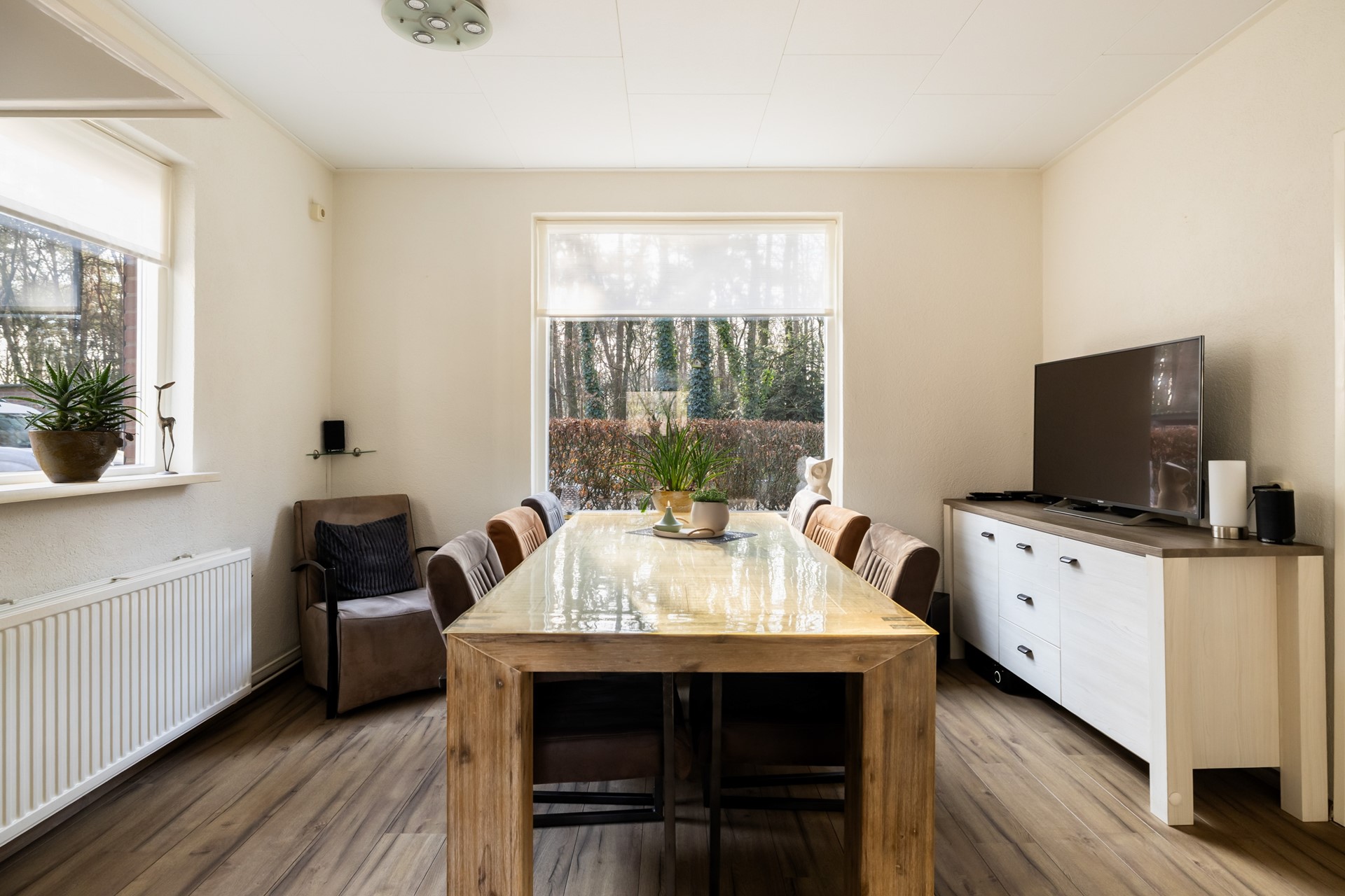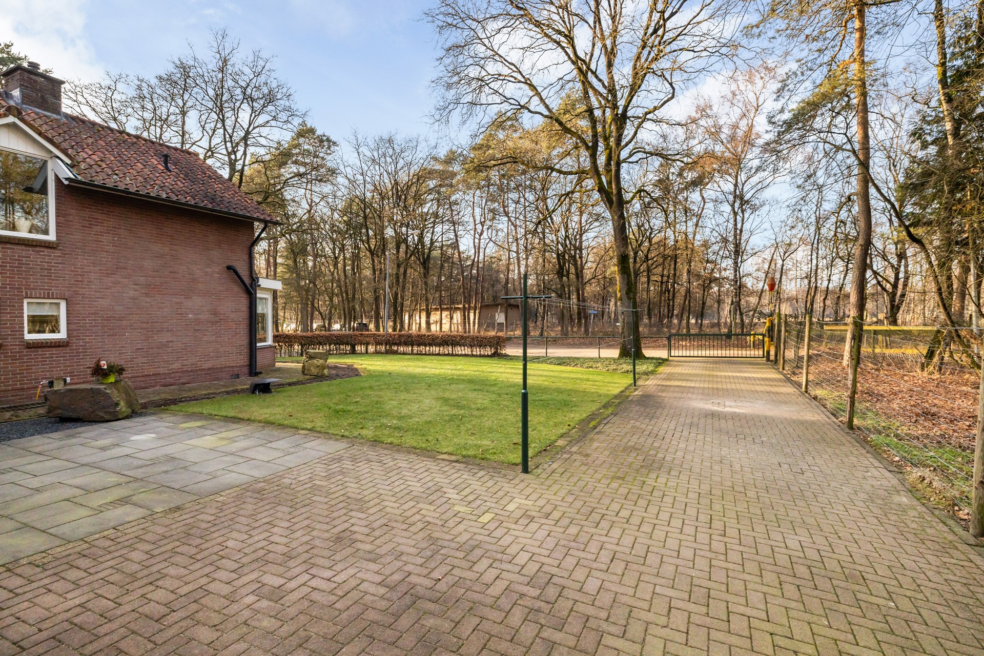 Een van de grote pluspunten van deze woning zijn de royale overkappingen en de aangebouwde stenen garage. Deze bieden volop ruimte voor het stallen van auto’s, werkbussen of andere voertuigen en zorgen daarnaast voor meer dan voldoende bergruimte. In de garage bevindt zich bovendien een vlizotrap naar een ruime vliering, ideaal voor het opbergen van spullen. Rondom de woning ligt een royale tuin die uitnodigt tot het creëren van meerdere gezellige zitplekken. Of je nu wilt ontspannen in de zon of juist de schaduw opzoekt, hier geniet je optimaal van het buitenleven. Dankzij het vele groen en de aanwezige bomen zit je bovendien heerlijk beschut.