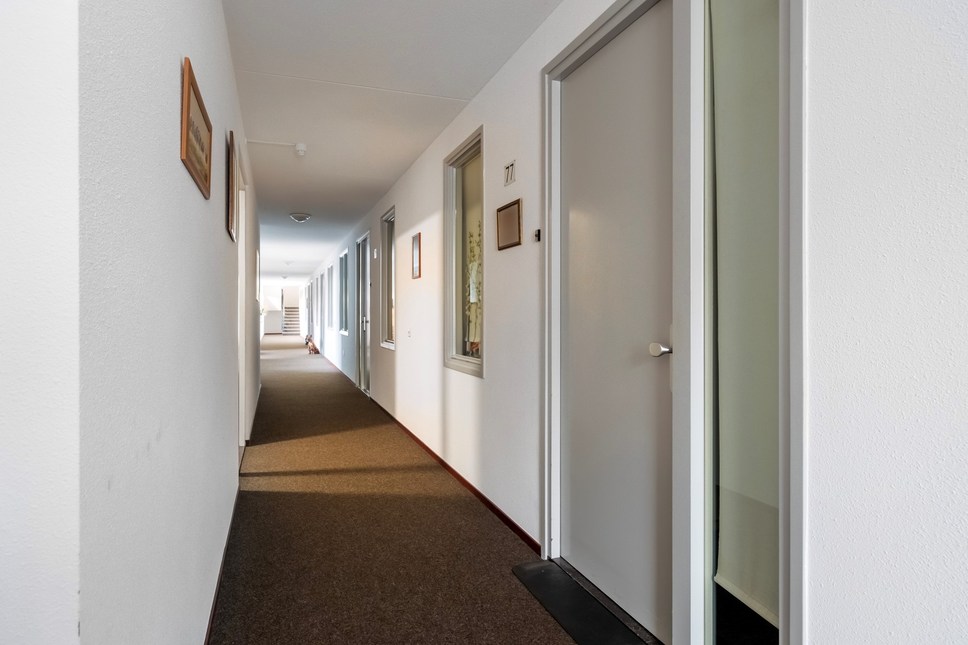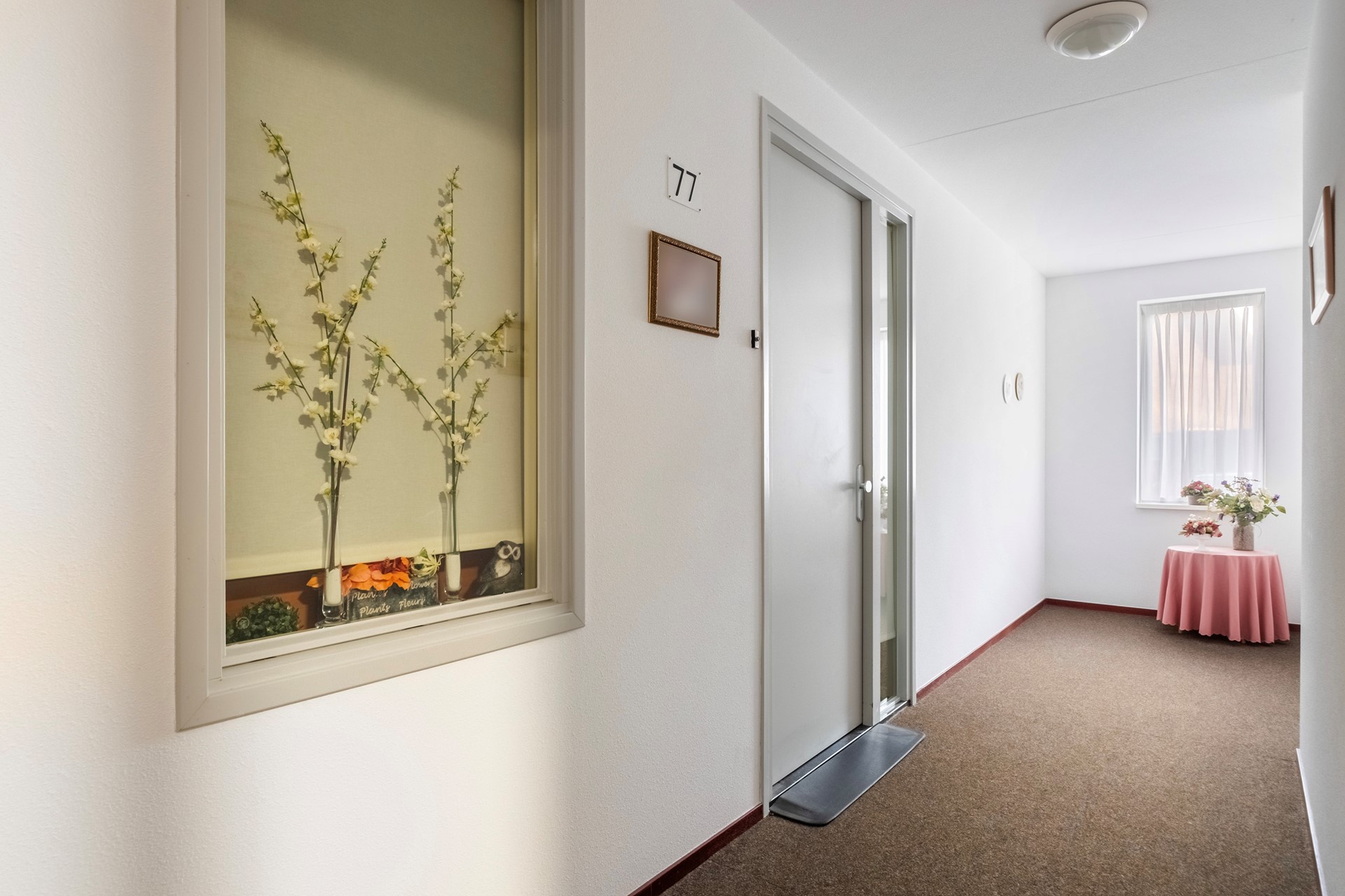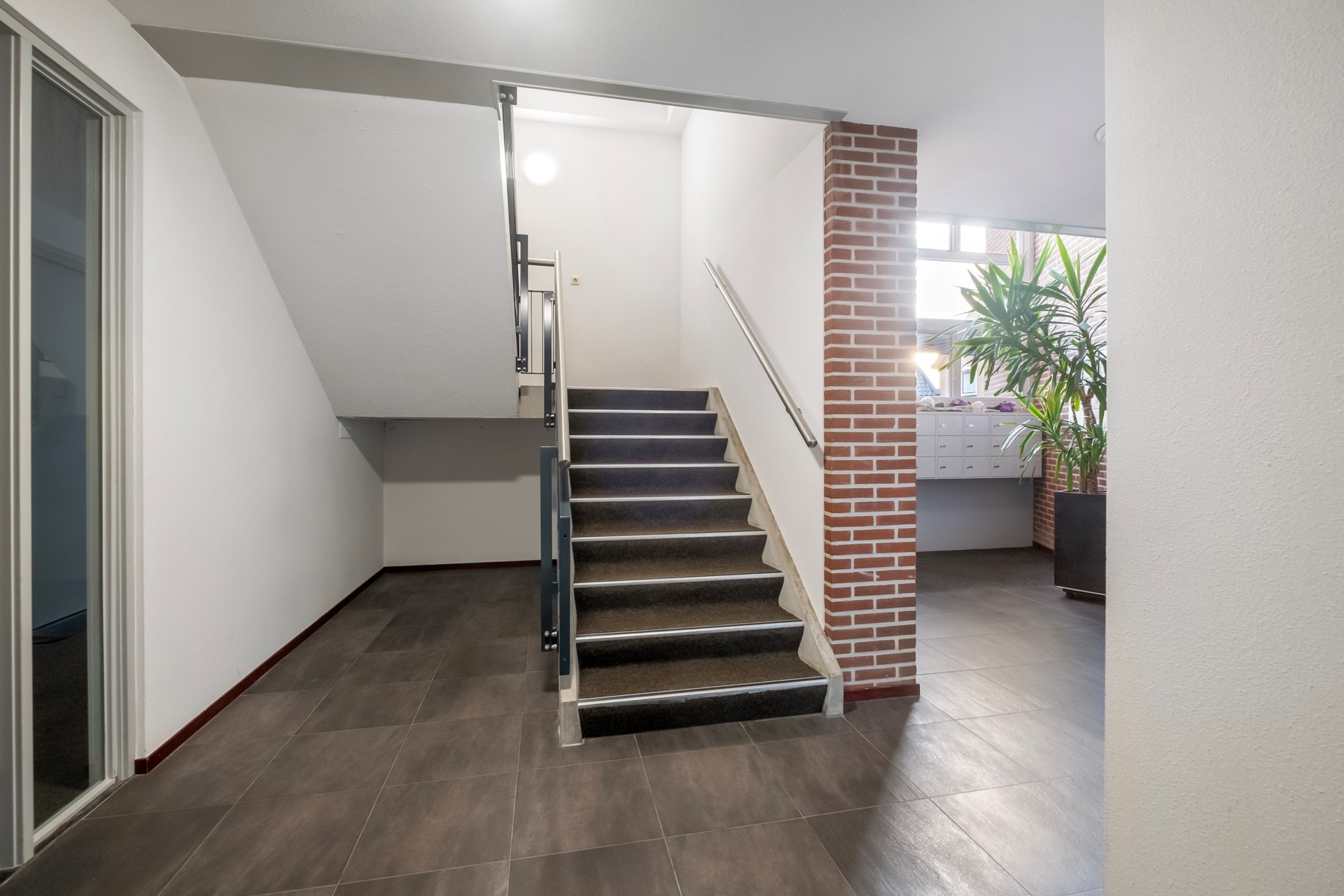 Via de centrale entree met bellentableau en brievenbussen kom je in de hal van het gebouw, waar je de lift of trap naar de verdiepingen vindt. Het appartement zelf ligt op de begane grond, wat zorgt voor extra gemak.