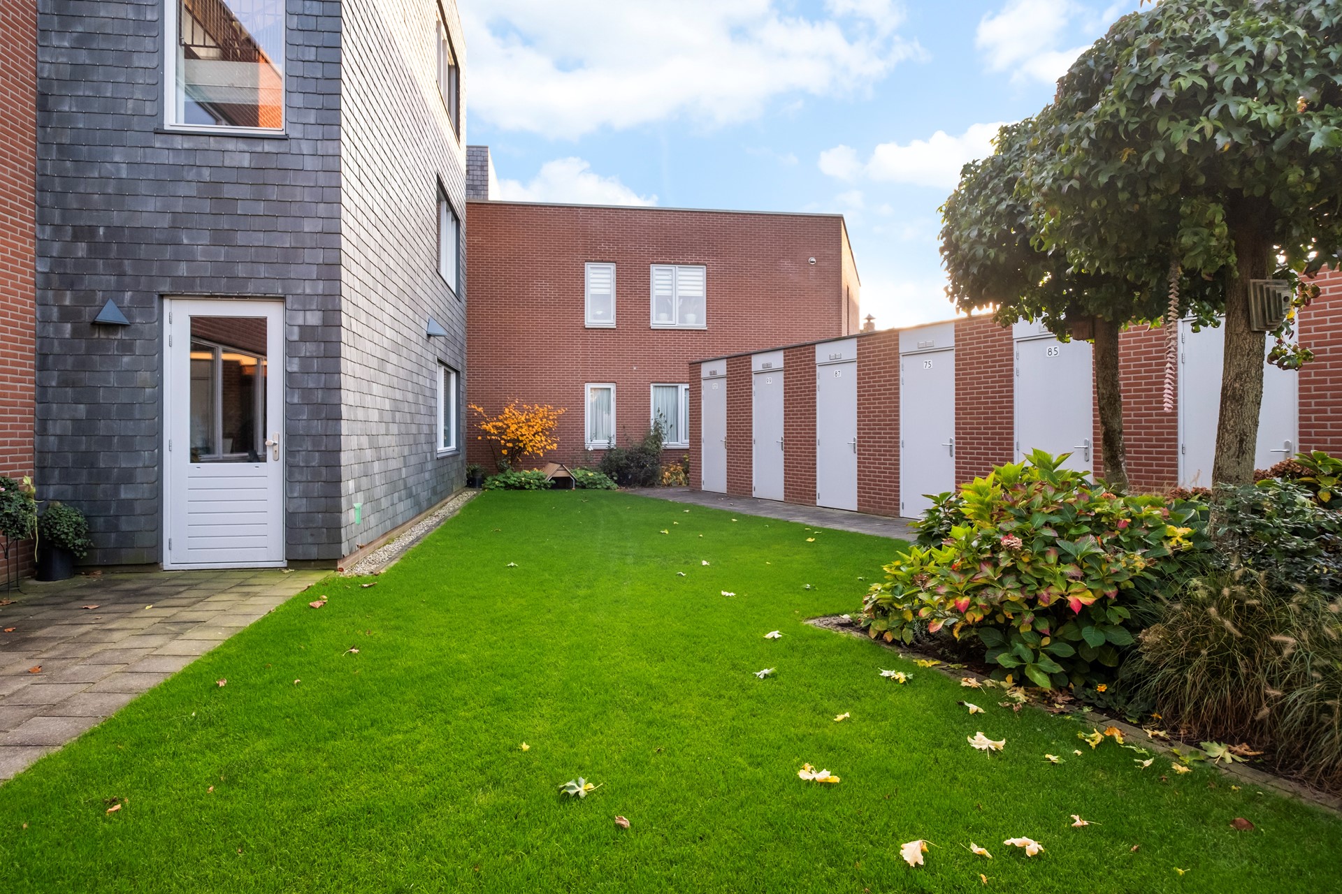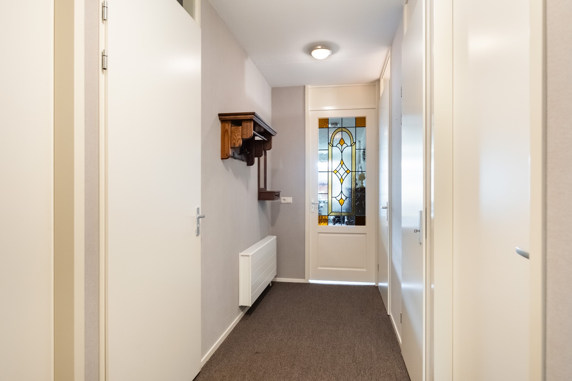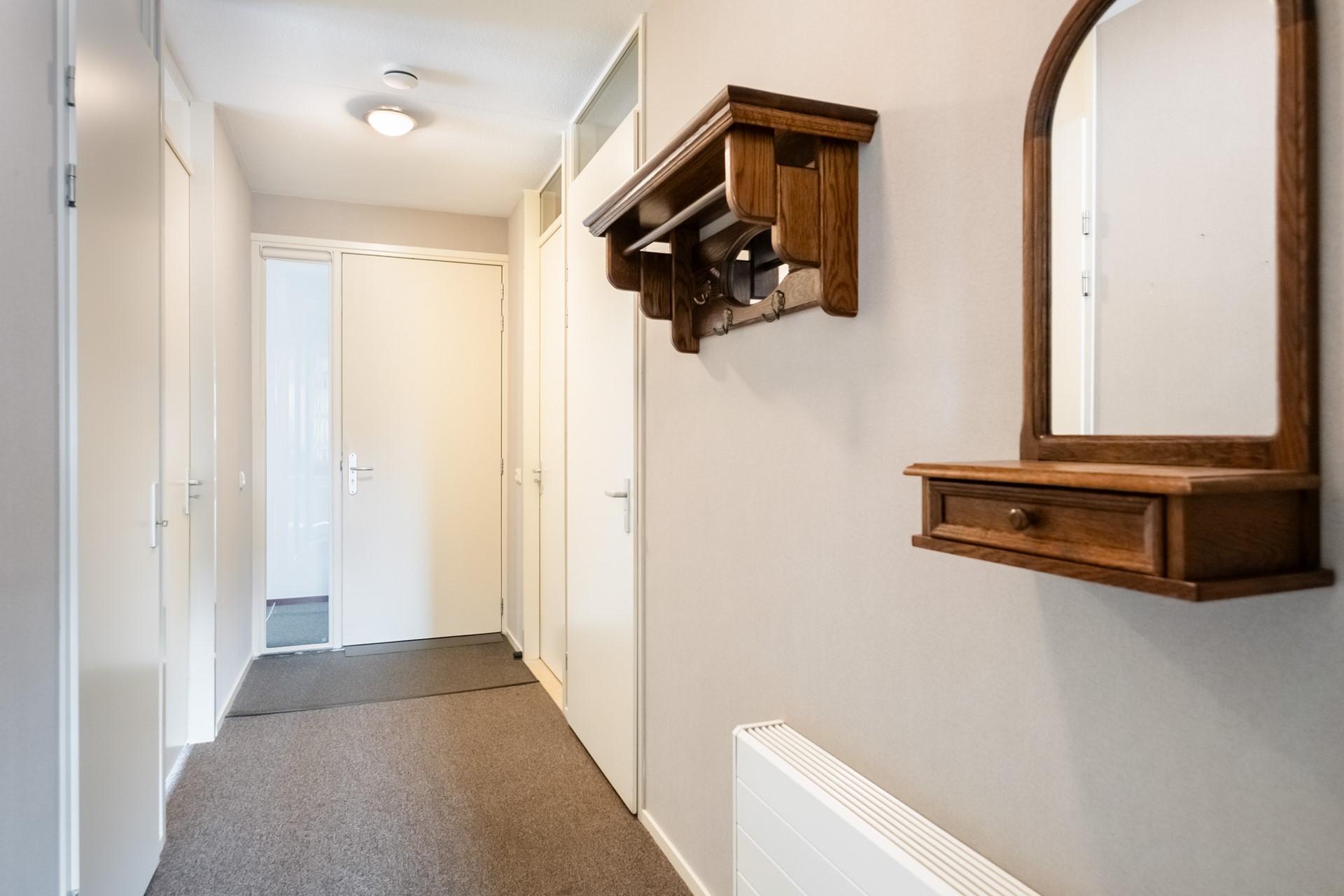 Via de centrale entree met bellentableau en brievenbussen kom je in de hal van het gebouw, waar je de lift of trap naar de verdiepingen vindt. Het appartement zelf ligt op de begane grond, wat zorgt voor extra gemak.