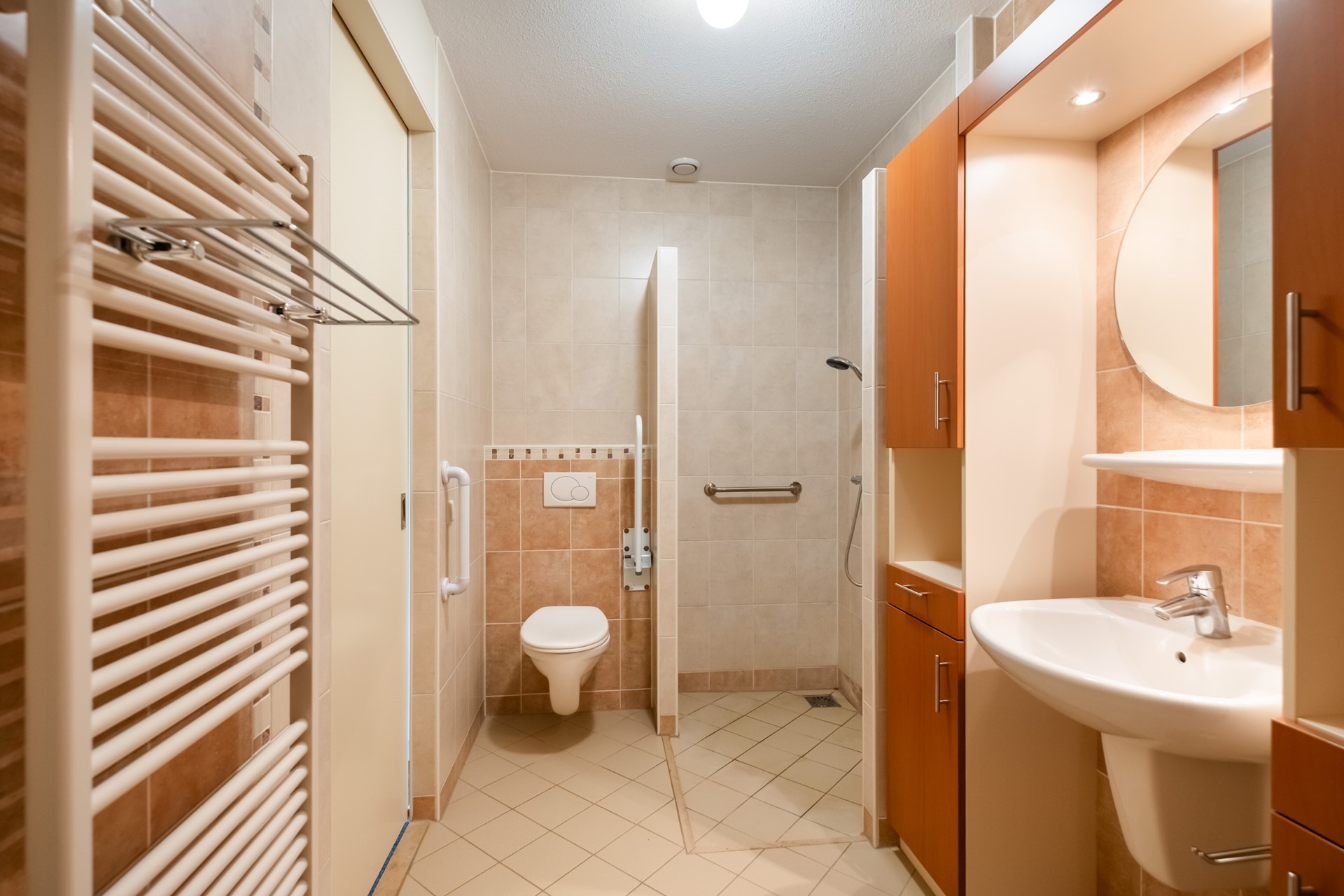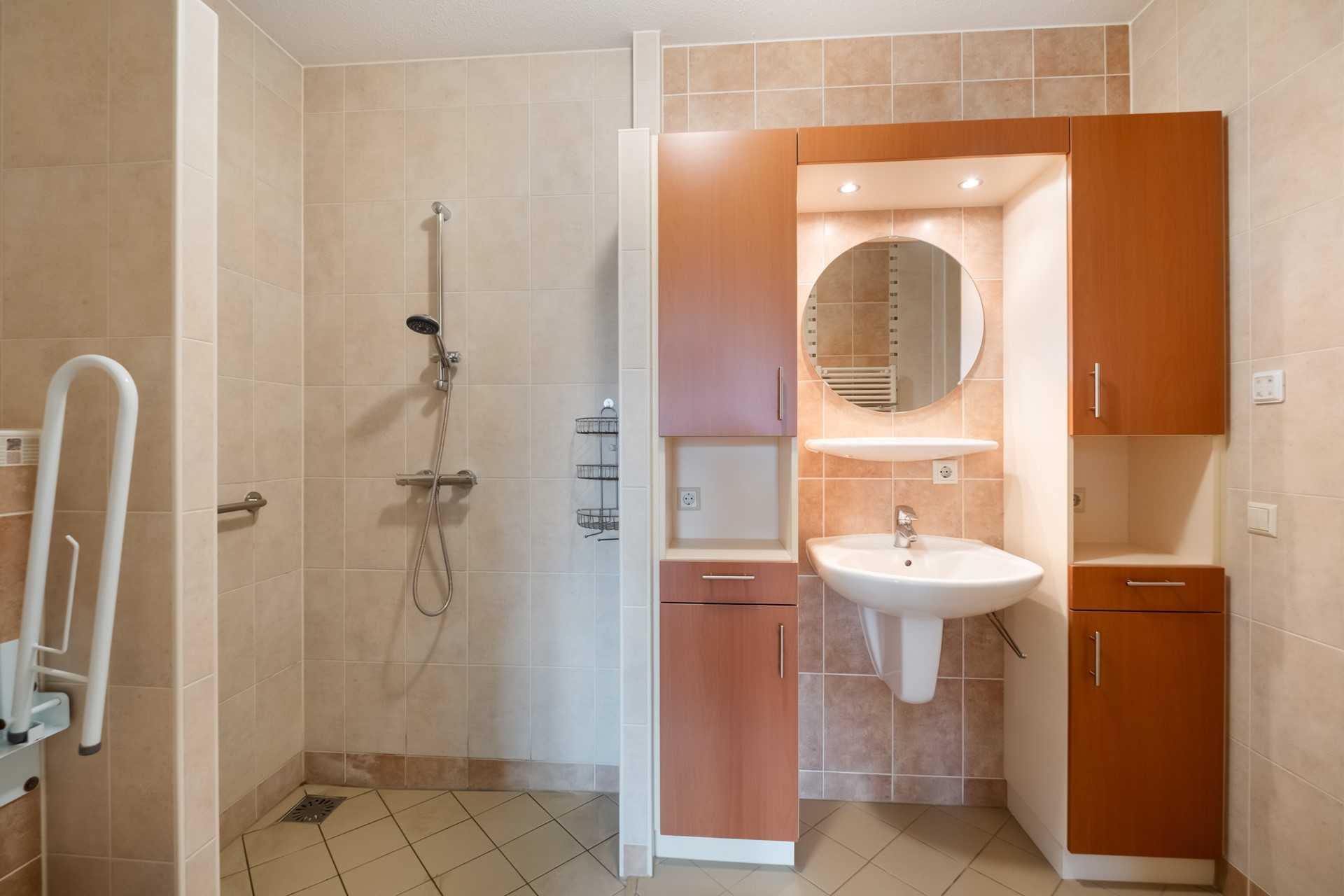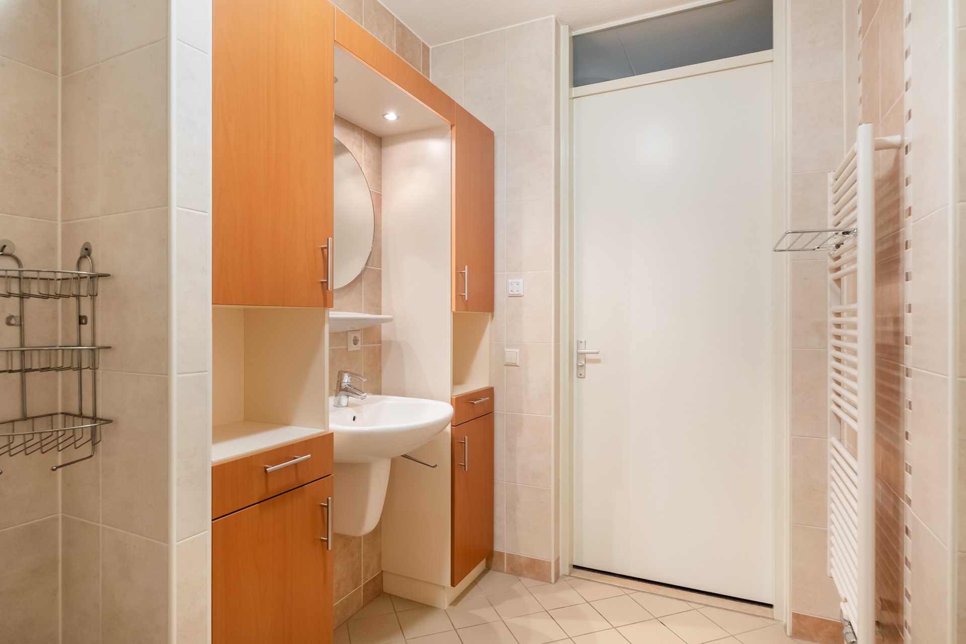 De geheel betegelde badkamer is voorzien van een wandcloset, inloopdouche met stevige beugels, wastafel met kasten en een handdoekradiator. De tweede slaapkamer is ideaal als logeerkamer of hobbyruimte. In de aparte bergruimte vind je handige kasten, de aansluitingen voor wasmachine en droger, en de cv-installatie (Remeha, 2009).