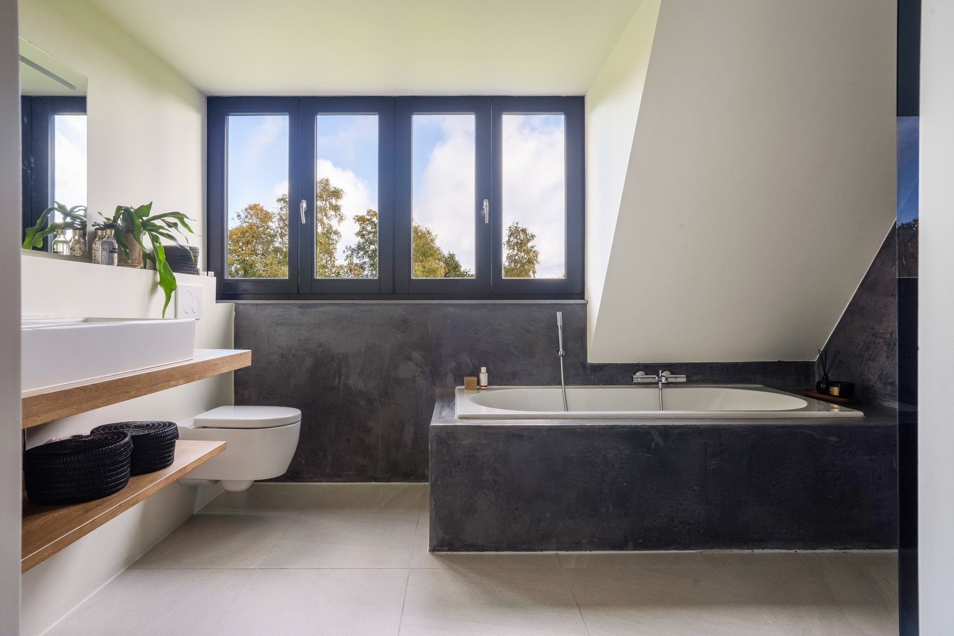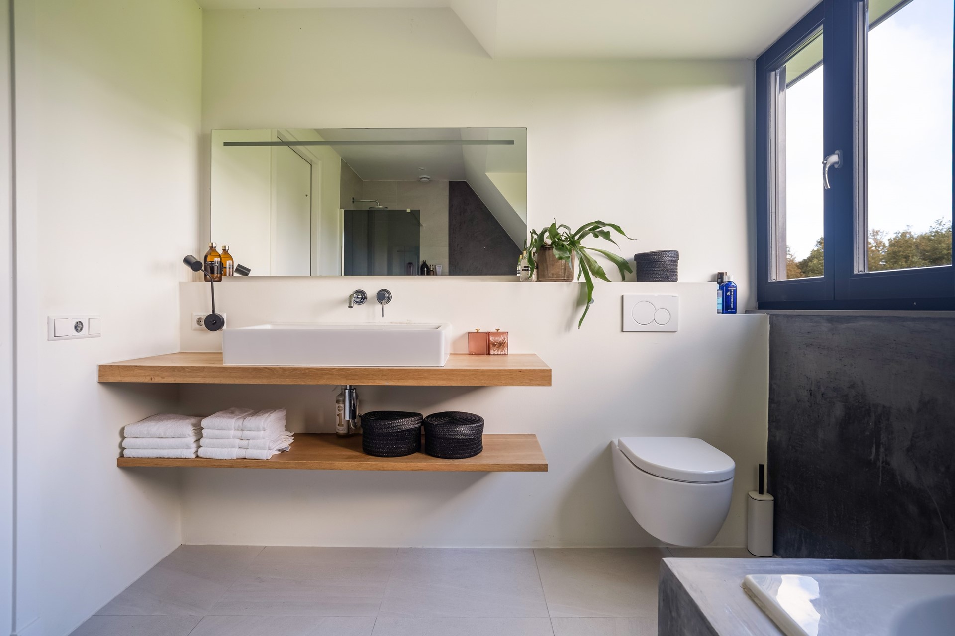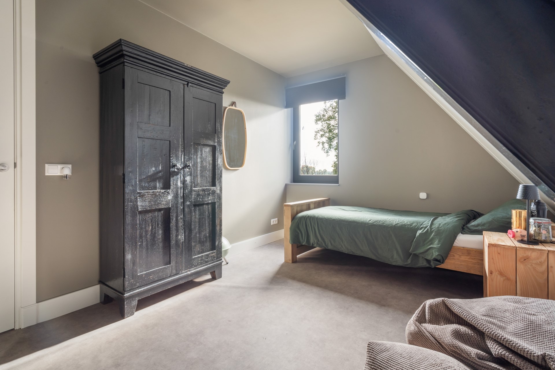 Via de vaste trap kom je op de overloop van de eerste verdieping. Vanuit hier zijn twee slaapkamers aan de voorzijde, de badkamer en nog eens twee slaapkamers aan de achterzijde bereikbaar. De moderne badkamer is strak afgewerkt en voorzien van een inloopdouche, wastafelmeubel, wandcloset en vloerverwarming. Dankzij het dakkapel valt er volop daglicht naar binnen, wat zorgt voor een frisse en ruime uitstraling. Alle slaapkamers zijn keurig en stijlvol afgewerkt. De ouderslaapkamer beschikt over een vaste kastenwand en via een vlizotrap is vanaf hier de vliering te bereiken. Ideaal voor extra bergruimte.