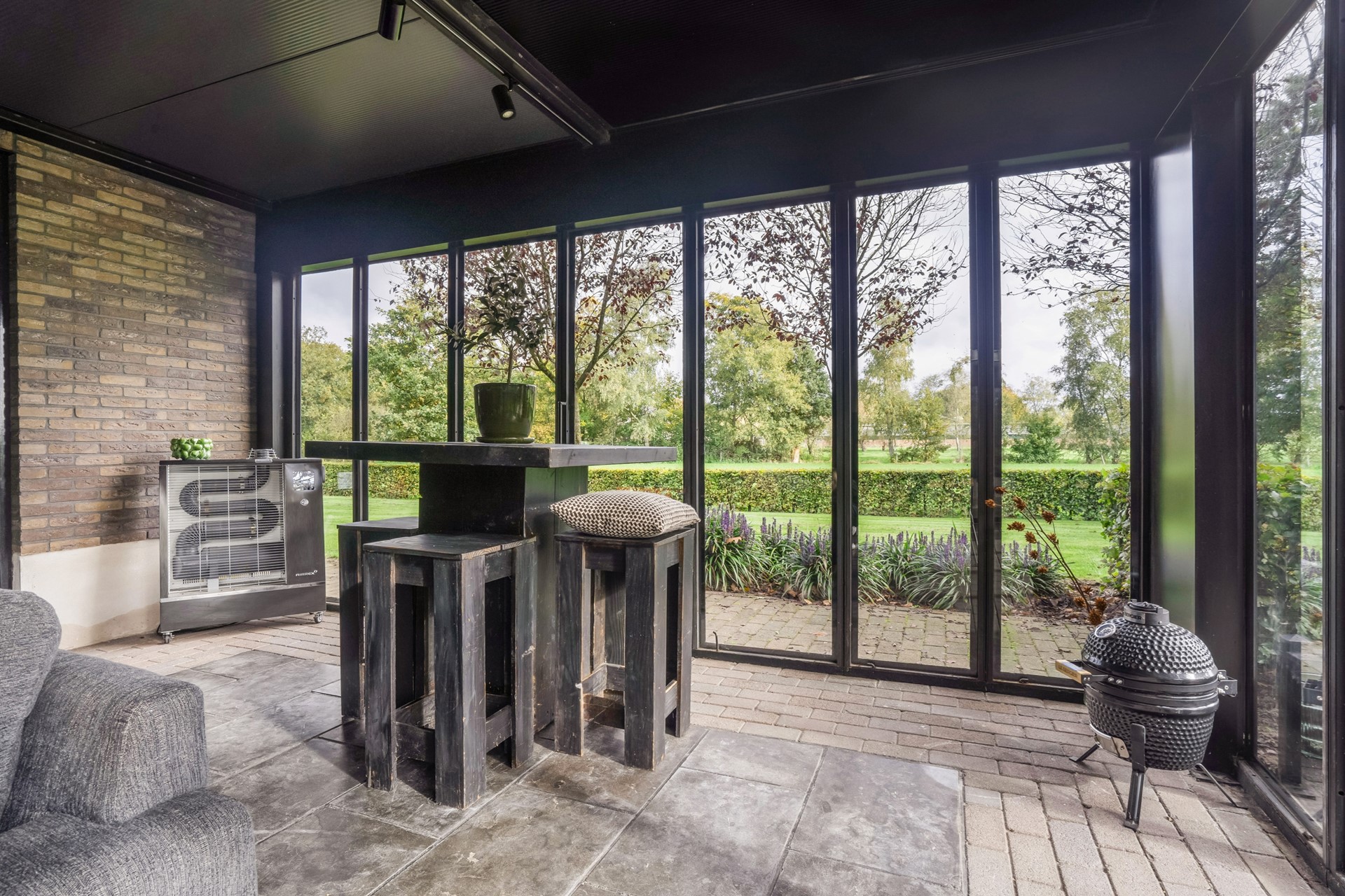 De royale, groene tuin rondom de woning is een heerlijke plek om buiten te genieten. Er is een groot gazon, fraai aangelegde borders en een ruim terras met plek voor een gezellige lounge set of eethoek. Voor overdekt buitenplezier is de serre direct aan de woning gelegen. De aangebouwde garage is niet alleen praktisch, maar ook veelzijdig. Met een trap naar de verdieping opent deze ruimte tal van mogelijkheden: denk aan een royale werk- of hobbyruimte, een kantoor aan huis of extra opslag voor auto(‘s) en fietsen. Je auto('s) kunnen ook probleemloos op de oprit worden geparkeerd. Wij nodigen je van harte uit voor een persoonlijke bezichtiging om deze unieke woning zelf te ervaren.