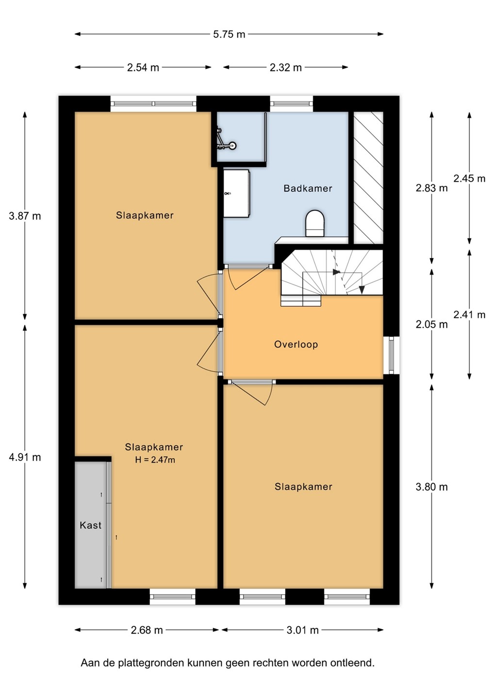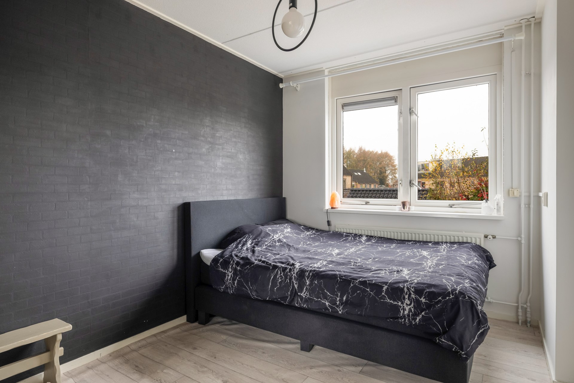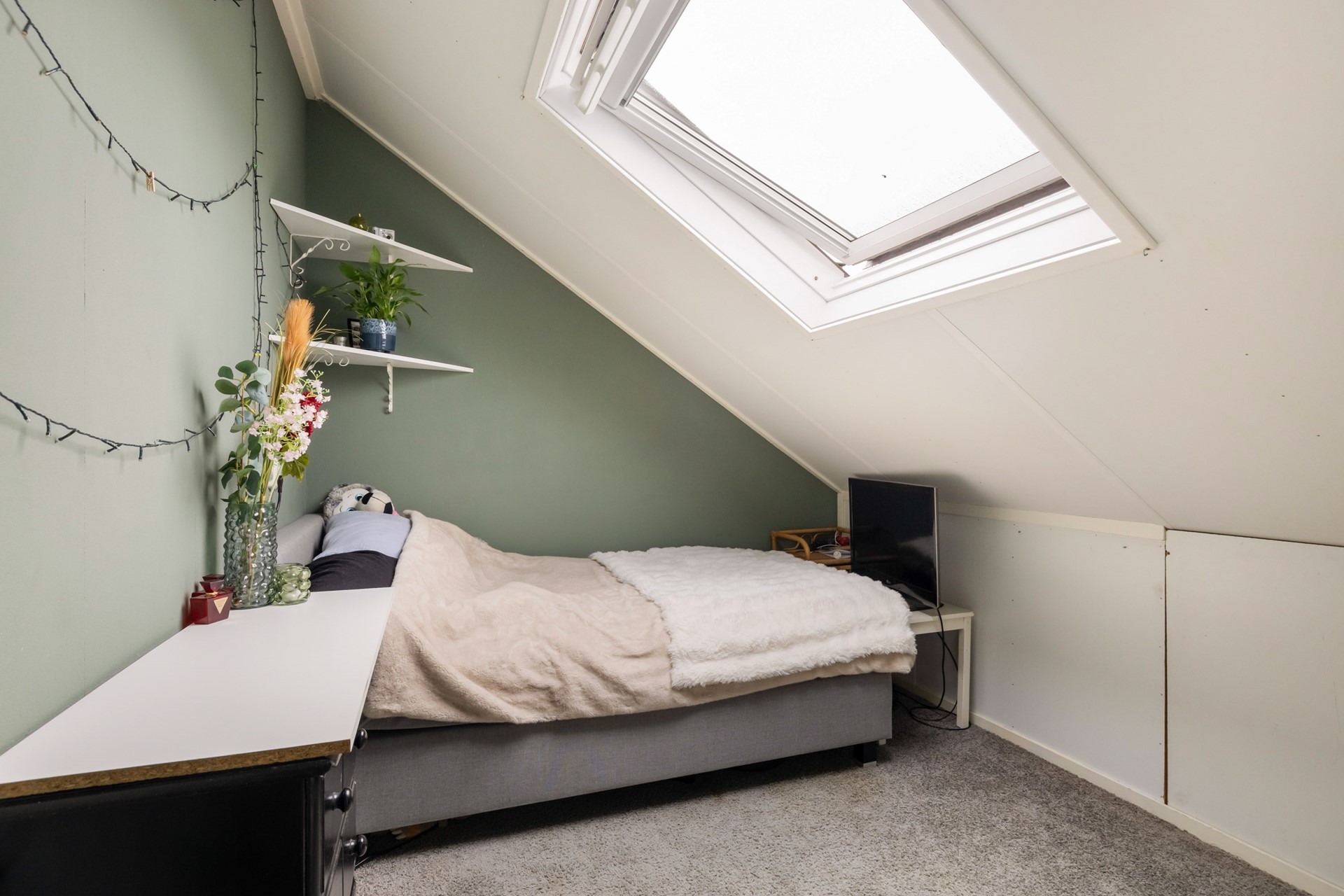 Via een vaste trap kom je op de tweede verdieping, met een overloop en nog twee slaapkamers. Beide kamers beschikken over een Velux-dakraam en achter de knieschotten is handige bergruimte gecreëerd. In de slaapkamer aan de achterzijde vind je bovendien een extra bergkast met de cv-installatie (Remeha, 2014).