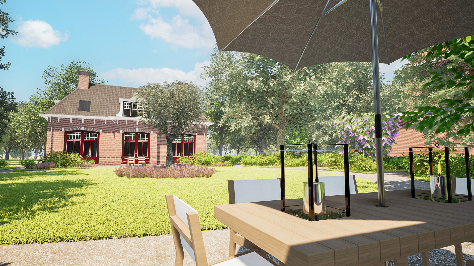 Rondom de historische villa Dannenborgh verrijst binnenkort een prachtige nieuw aangelegde tuin, ontworpen door Debie en Verkuijl – een groene omlijsting die de exclusieve uitstraling van deze locatie compleet maakt. Hier woont u op een toplocatie in Lunteren, waar historie, rust en stijl samenkomen.