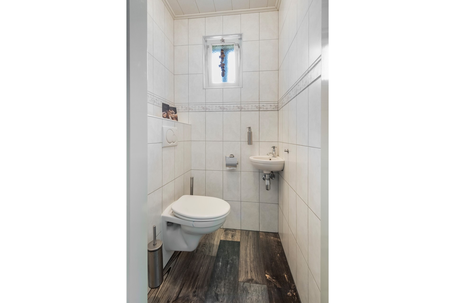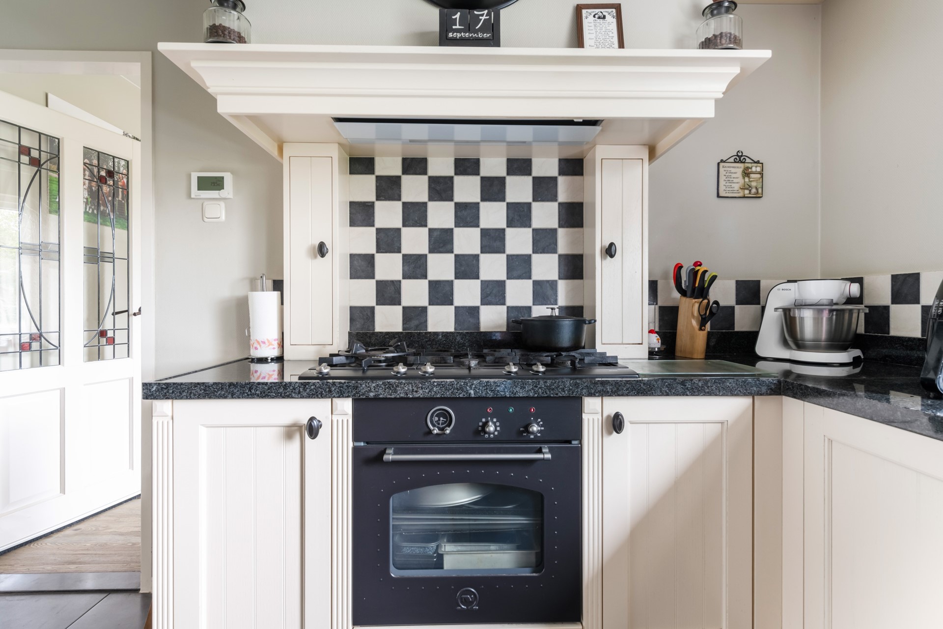 Je komt binnen in een ruime hal met toegang tot de meterkast, het toilet, de trap naar boven, een slaapkamer, de keuken en de woonkamer. De L-vormige woonkamer ligt aan de voorzijde van de woning en is opvallend licht en ruim, met genoeg plek voor meerdere zithoeken. De houtkachel zorgt voor een warme, gezellige sfeer en via openslaande deuren sta je zo in de tuin rondom de woning. De woonkeuken is uitgevoerd in een hoekopstelling en voorzien van diverse inbouwapparatuur, zoals een 5-pits gaskookplaat, afzuigkap, oven, koelkast en een vaatwasser. Er is ruimte genoeg voor een eethoek, ideaal voor avonden tafelen met familie of vrienden. Aansluitend vind je de praktische bijkeuken met aansluitingen voor de wasmachine en droger, een spoelbak en een vaste kast met de cv-installatie (Remeha Calenta, 2010). Vanuit hier heb je toegang tot de berging, de garage én de tuin. Ook is er op de begane grond een slaapkamer aanwezig, voorzien van een grote vaste kastenwand. Ideaal voor wie gelijkvloers wil wonen of een kantoor/praktijk aan huis zoekt.