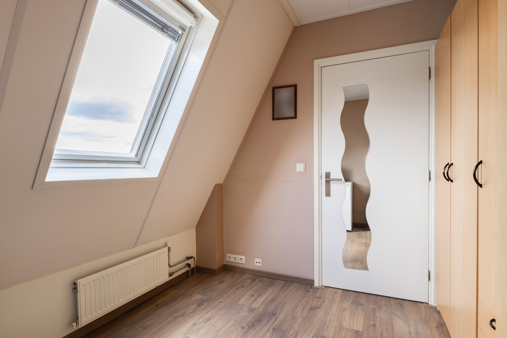 Ook de tweede verdieping is bereikbaar via een vaste trap. Hier vind je een overloop, twee extra slaapkamers en de opstelling van de boiler. Net als op de eerste verdieping zijn ook deze ruimtes voorzien van een laminaatvloer en Velux-dakramen. Een compleet en doordacht ingedeeld huis met volop ruimte voor het hele gezin.