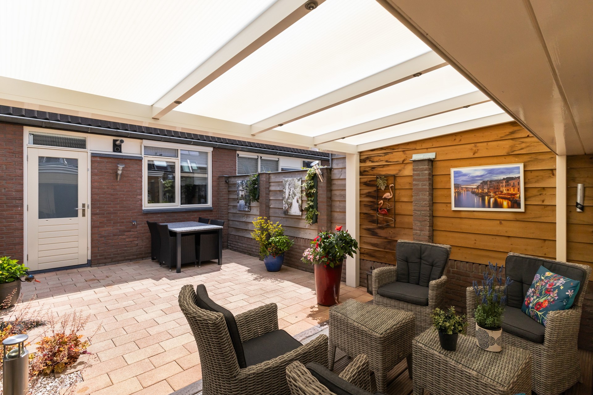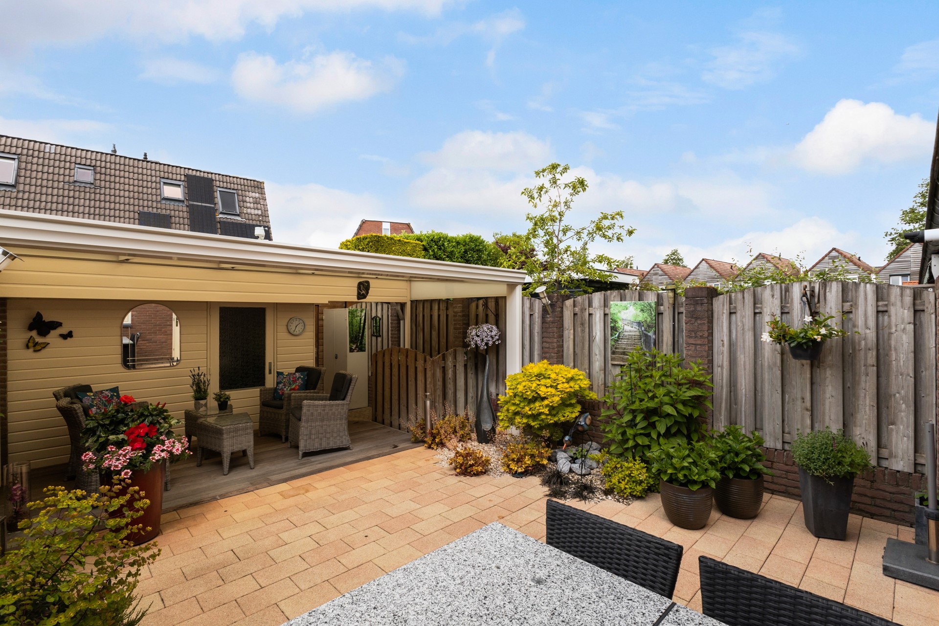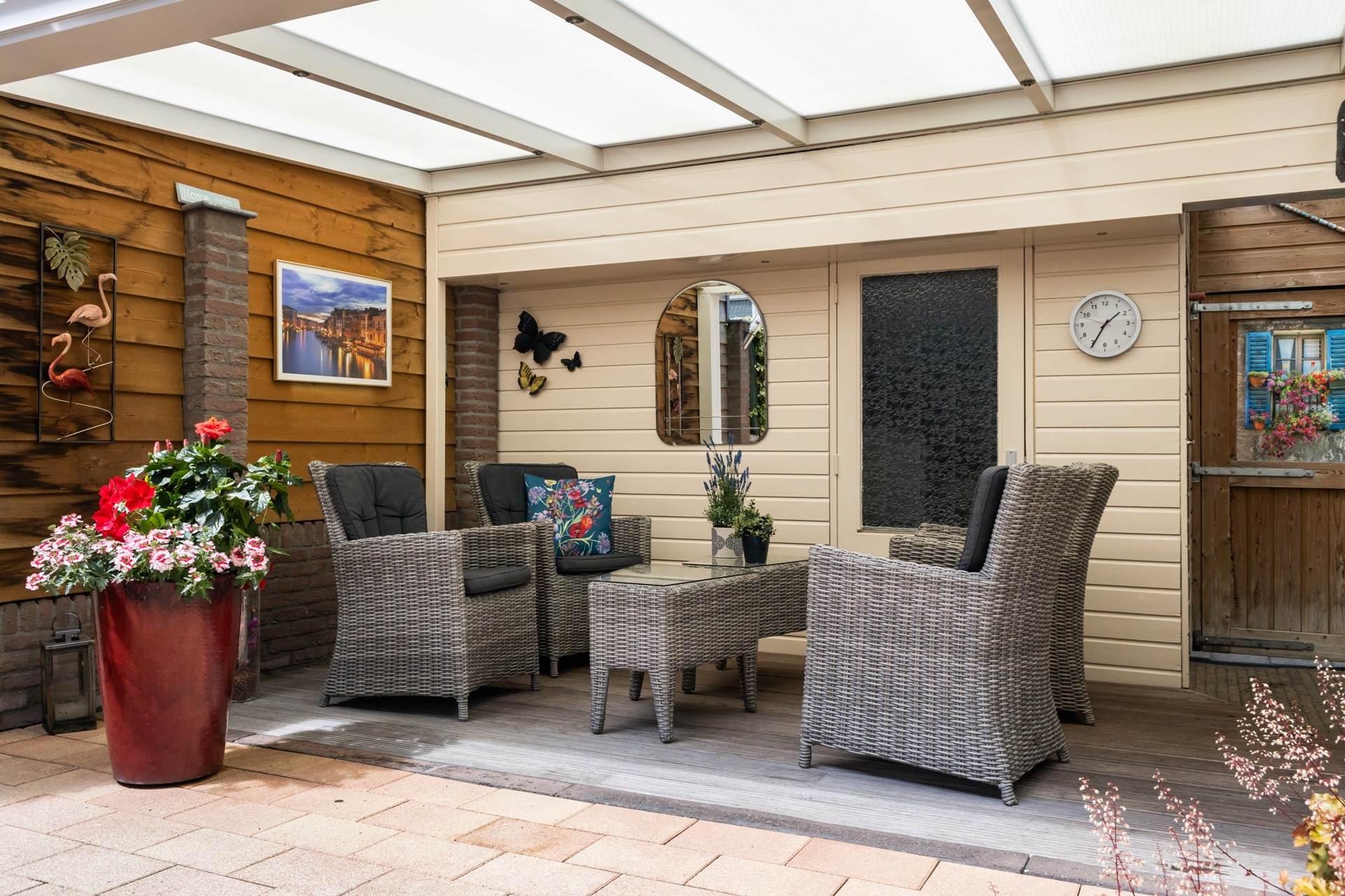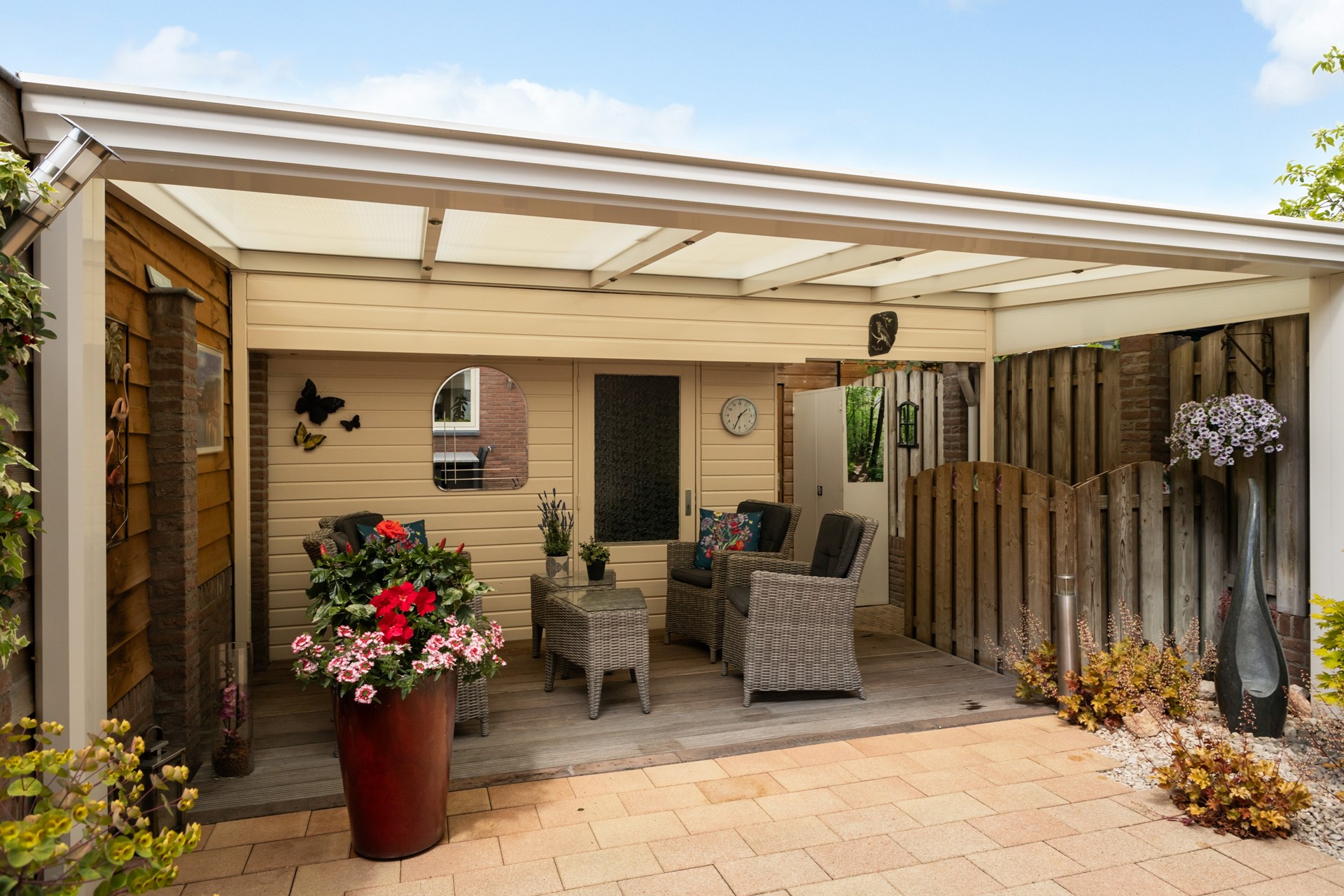De verzorgde tuin achter de woning beschikt o.a. over een bestraat terras, een border en een heerlijke overkapping; hierdoor biedt deze tuin altijd wel een mogelijkheid om van zon of schaduw te genieten! Er is een houten berging aanwezig; over bergruimte dus geen zorgen. Tot slot is er nabij de woning voldoende parkeergelegenheid en is er voldoende speelgelegenheid in de kindvriendelijke buurt aanwezig. Kom gauw kijken!