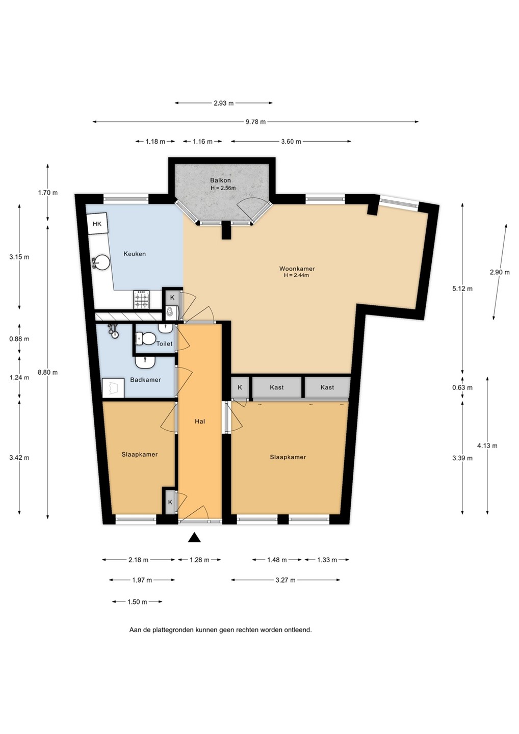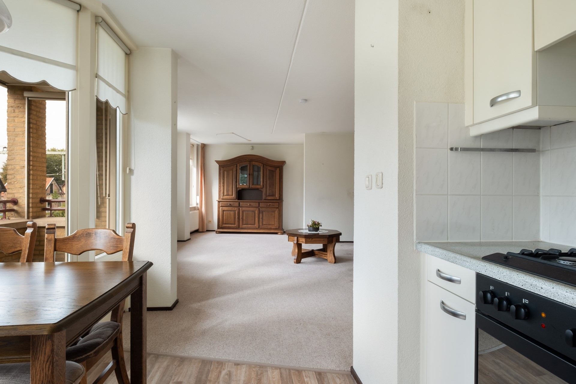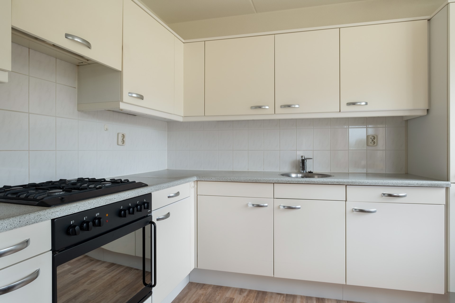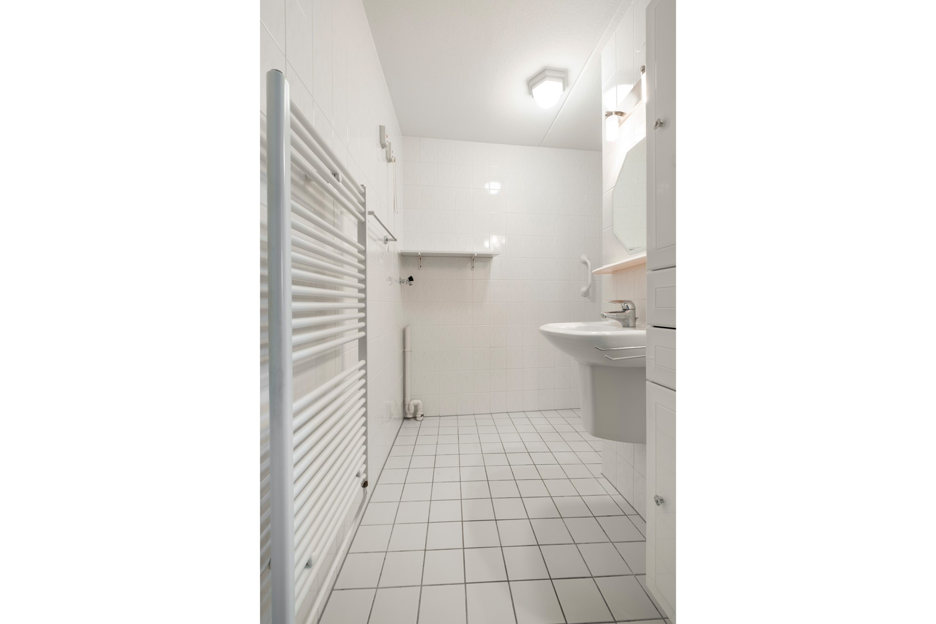 Via de galerij bereik je de entree van het appartement. Bij binnenkomst kom je in de hal, die toegang biedt tot twee slaapkamers, de badkamer, het separate toilet en de woonkamer. De ruime woonkamer biedt plaats voor een comfortabele zithoek en geeft direct toegang tot het zonnige balkon. De open keuken in L-vorm grenst aan de woonkamer en is uitgerust met een 4-pits gaskookplaat, afzuigkap, oven, koelkast en vriezer. In de woonkamer bevindt zich bovendien een kast met de cv-installatie (Nefit, 2022). De volledig betegelde badkamer met anti-slipvloer, bereikbaar vanuit de hal, is voorzien van een inloopdouche en een wastafel met toiletkast. Van de twee slaapkamers is de royale slaapkamer uitgerust met een vaste kastenwand, terwijl de kleinere slaapkamer ideaal is als logeerkamer of hobbyruimte. Tot slot is de verdieping, m.u.v. van de keuken en badkamer, voorzien van vloerbedekking.
