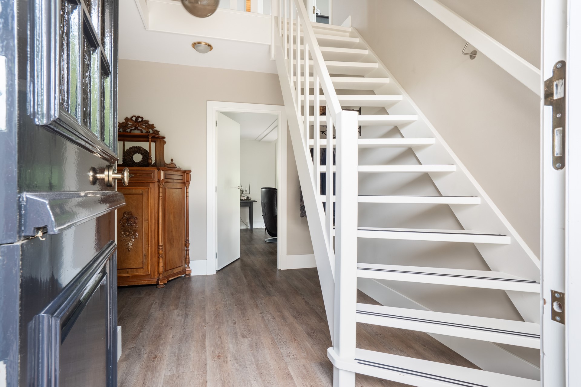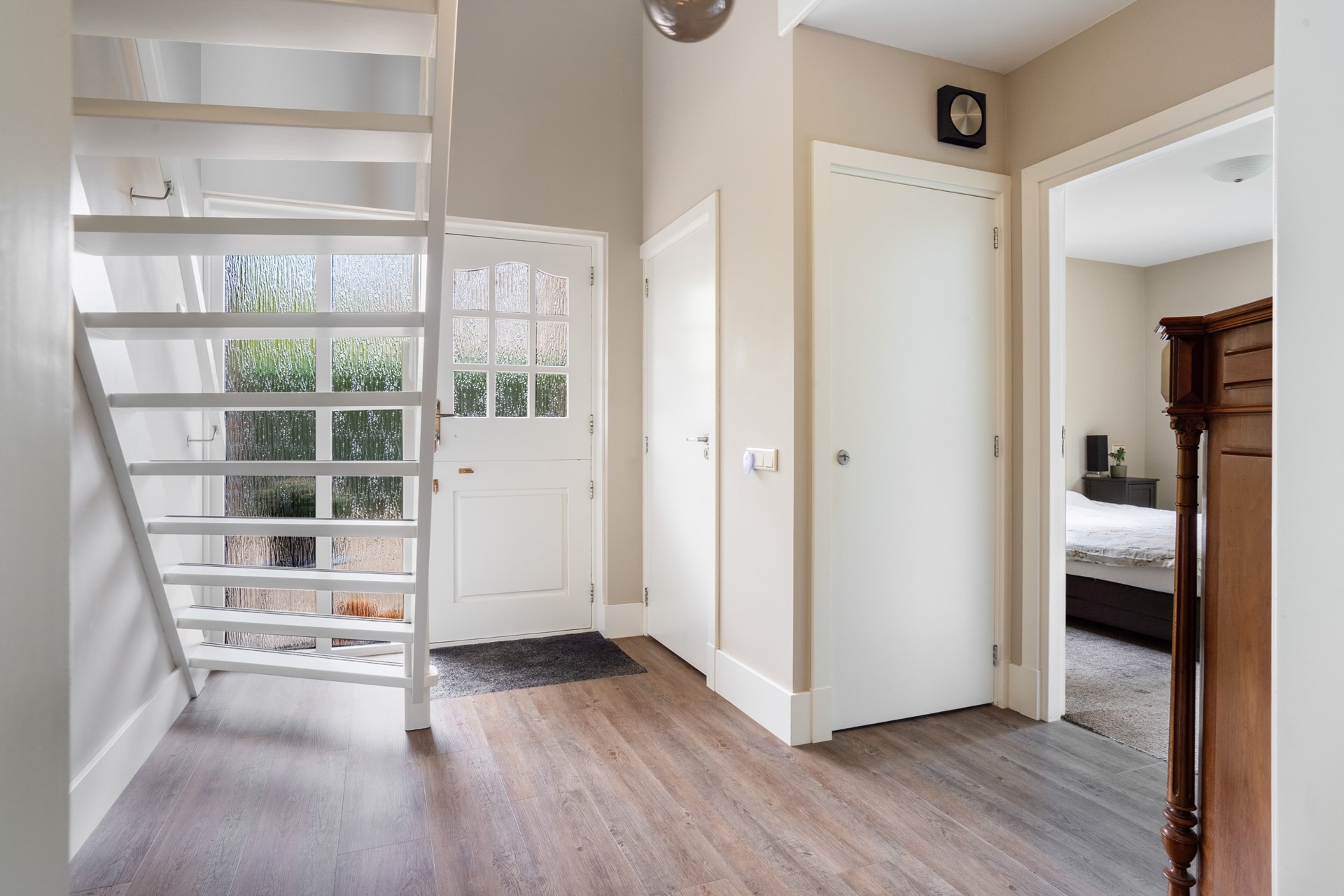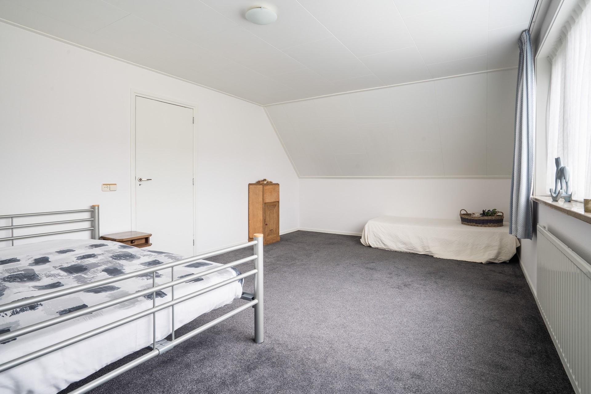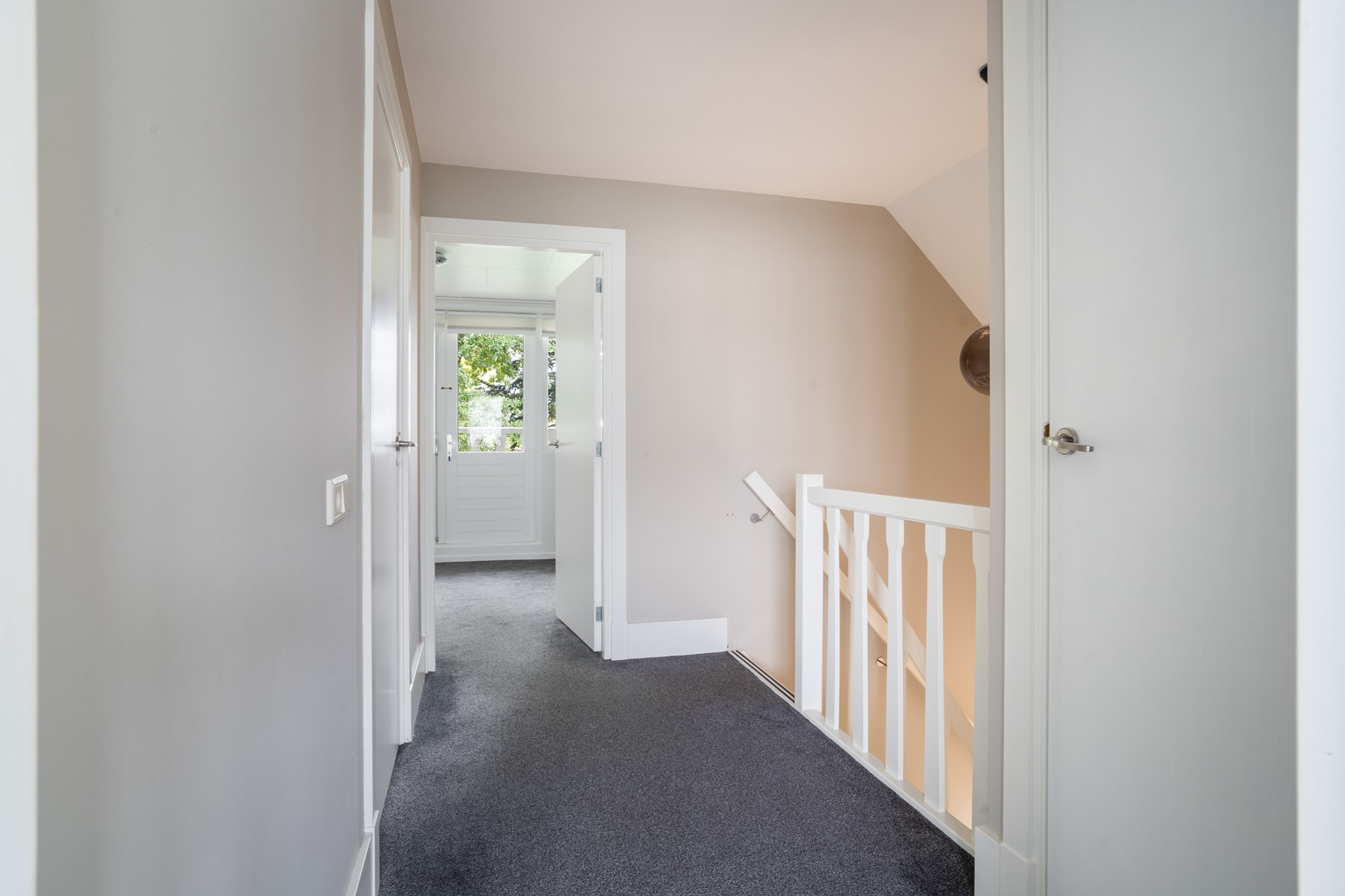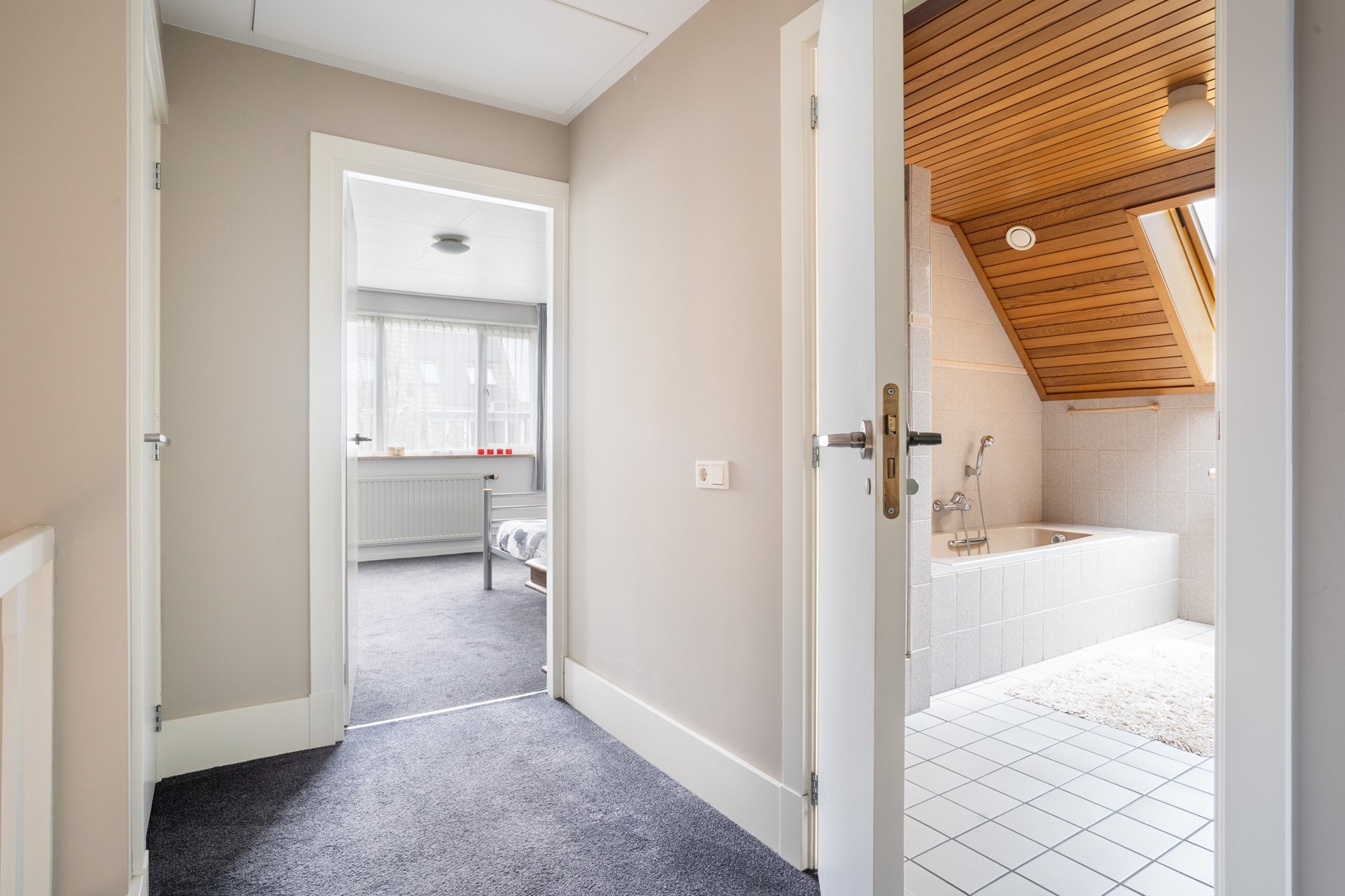 Via de vaste trap bereik je de overloop met een sfeervolle vide op de eerste verdieping. Vanaf hier heb je toegang tot twee royale slaapkamers, de badkamer en een bergkast waar de cv-installatie (Remeha Tzerra, 2015) is geplaatst. De slaapkamer aan de voorzijde beschikt over een leuk balkon op het zuidoosten en een vaste kast voor extra bergruimte. Ook de slaapkamer aan de achterzijde is voorzien van vaste kasten. De badkamer is compleet uitgerust met een douche, wastafel, ligbad, toilet en een dakraam dat zorgt voor prettig daglicht en natuurlijke ventilatie. Tot slot is via een vlizotrap de vliering bereikbaar, ideaal voor extra bergruimte.