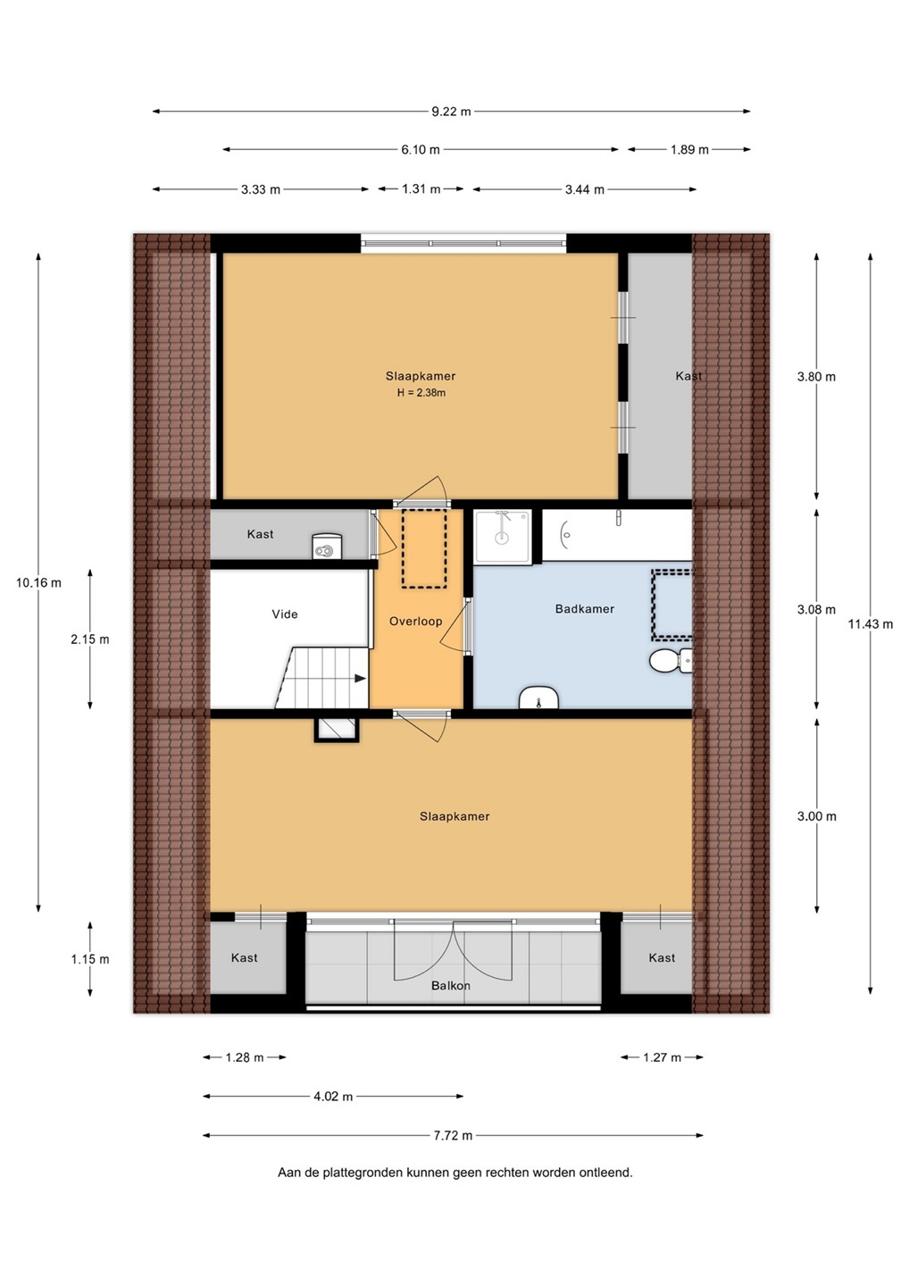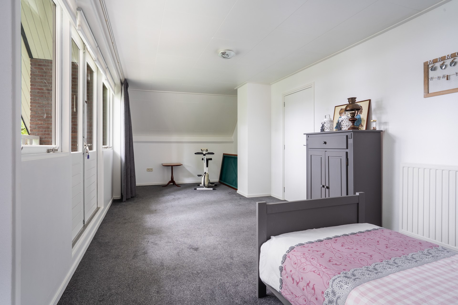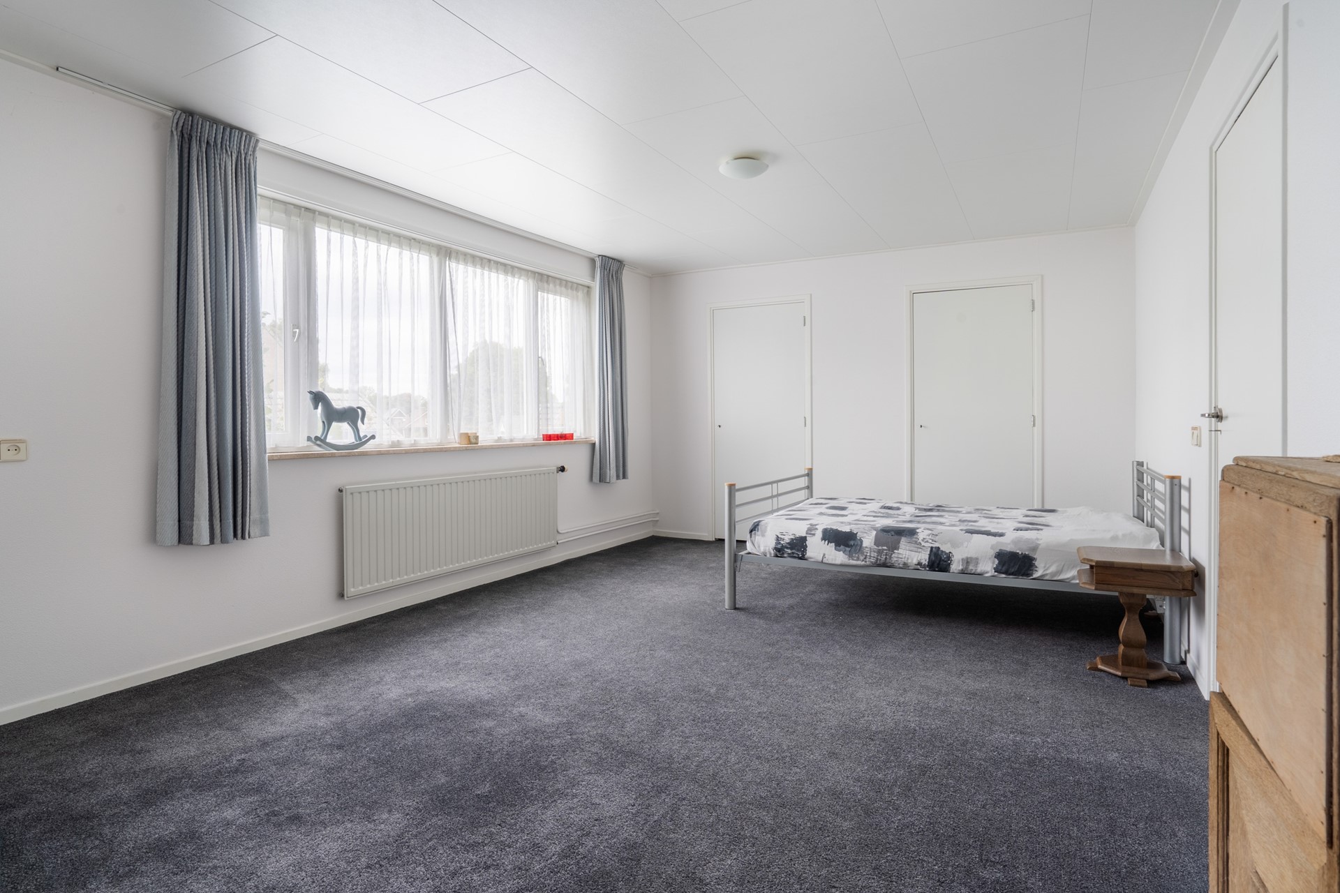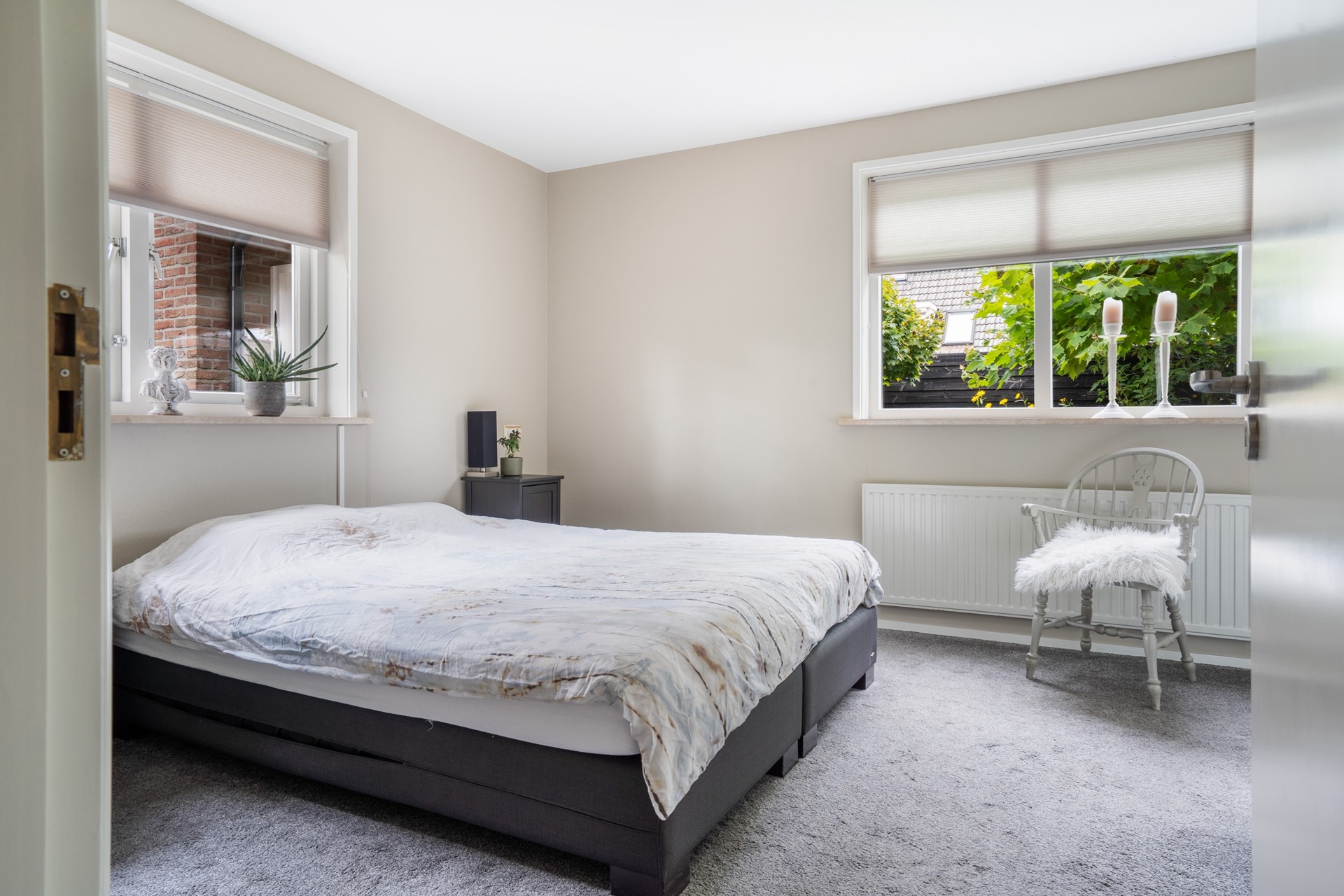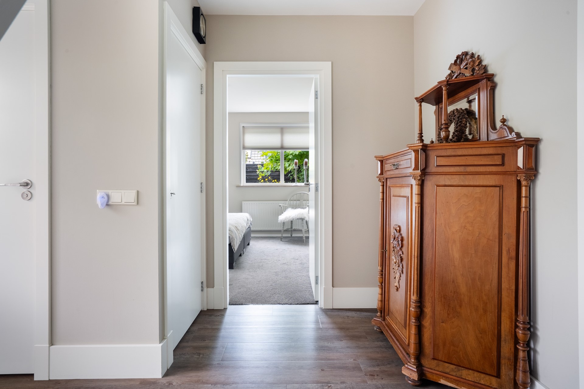 Via de vaste trap bereik je de overloop met een sfeervolle vide op de eerste verdieping. Vanaf hier heb je toegang tot twee royale slaapkamers, de badkamer en een bergkast waar de cv-installatie (Remeha Tzerra, 2015) is geplaatst. De slaapkamer aan de voorzijde beschikt over een leuk balkon op het zuidoosten en een vaste kast voor extra bergruimte. Ook de slaapkamer aan de achterzijde is voorzien van vaste kasten. De badkamer is compleet uitgerust met een douche, wastafel, ligbad, toilet en een dakraam dat zorgt voor prettig daglicht en natuurlijke ventilatie. Tot slot is via een vlizotrap de vliering bereikbaar, ideaal voor extra bergruimte.