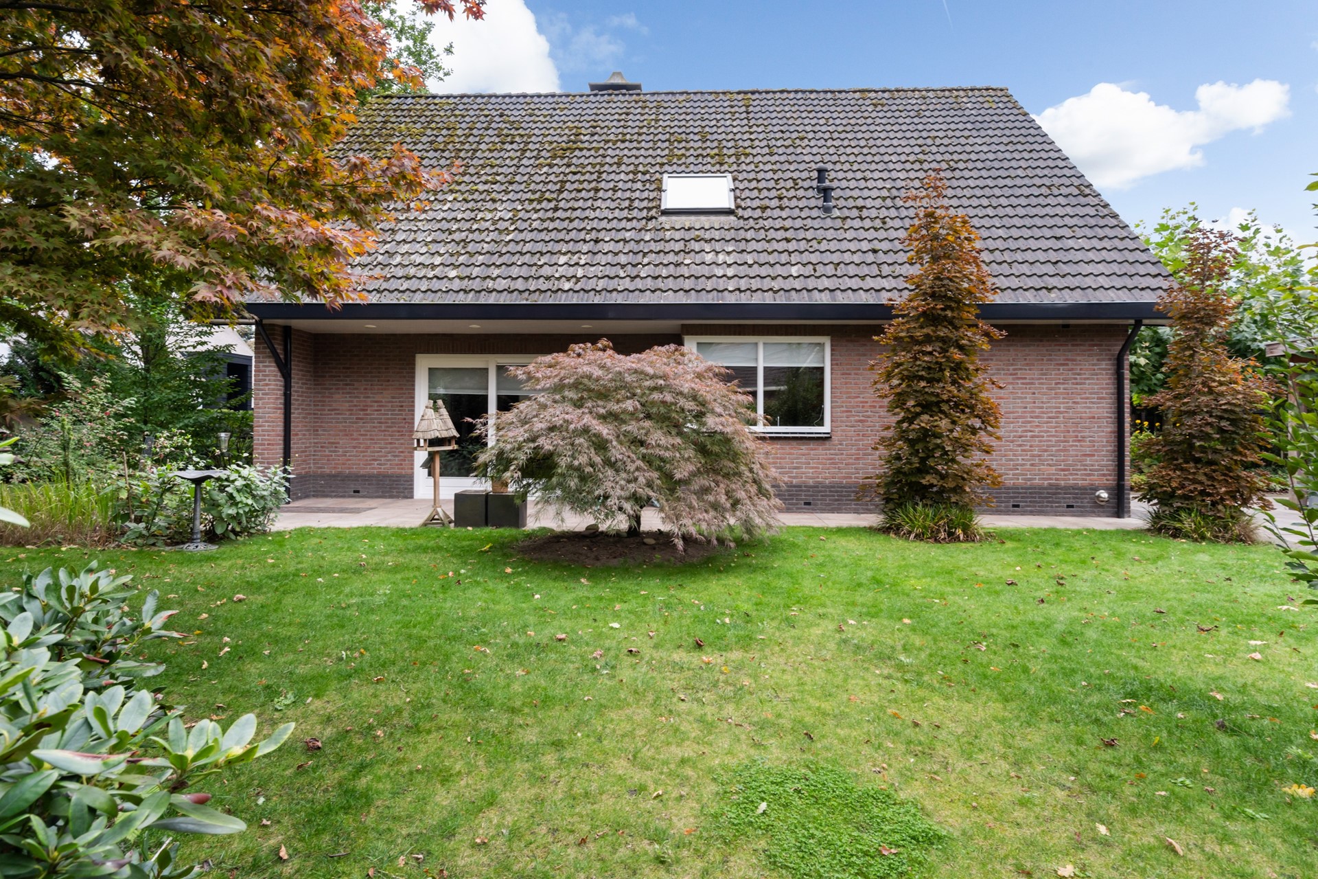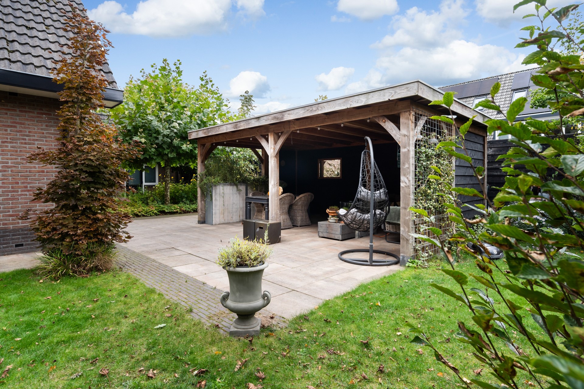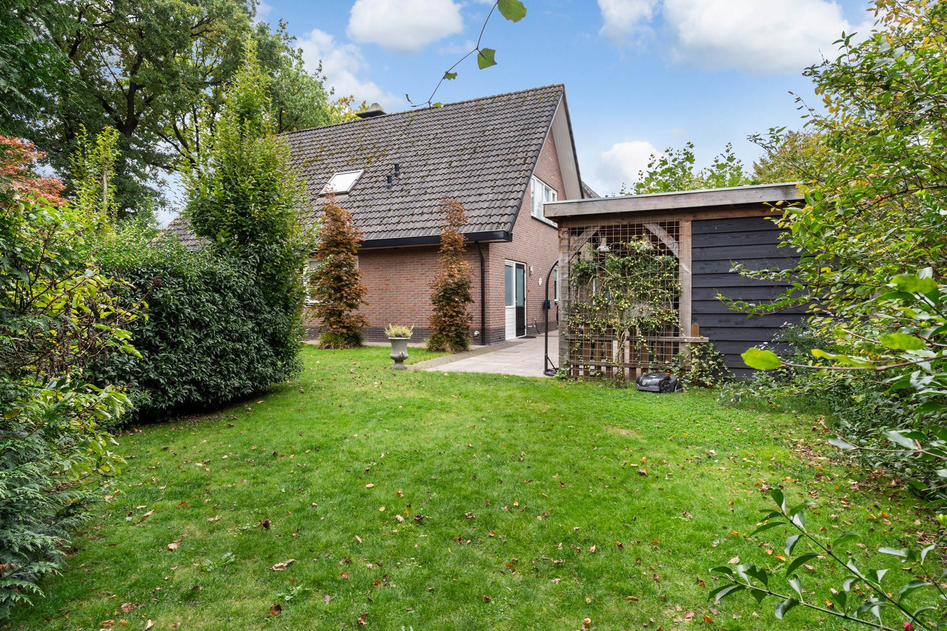 De royale tuin rondom de woning is een heerlijke plek vol groen, beplanting en privacy, ideaal om volop van het buitenleven te genieten. Je kunt ontspannen onder de overkapping, op het bestraatte terras zitten of je groene vingers kwijt in de tuin. Een groot pluspunt is de vrijstaande garage. Met een kelder en vliering biedt deze voldoende ruimte voor opslag of eventueel als hobbyruimte. Parkeren is ook geen probleem: op de royale oprit is er ruimte voor minimaal vijf auto’s.