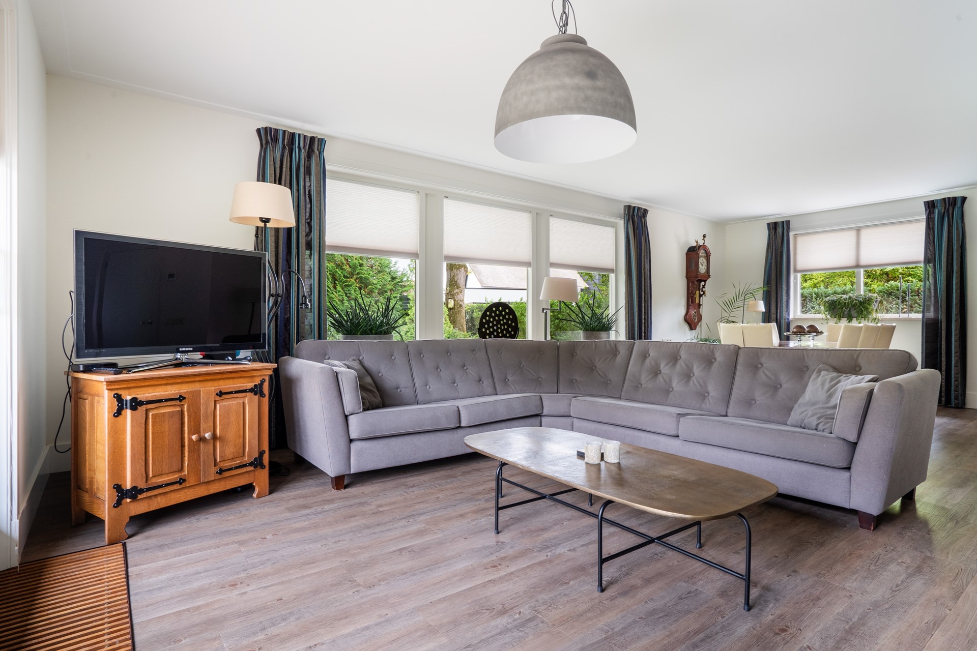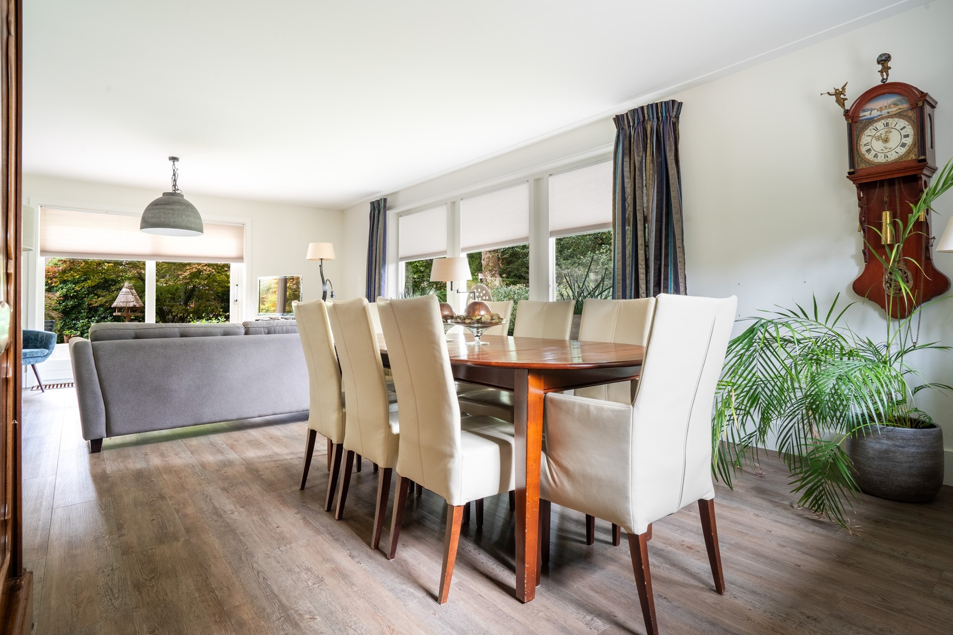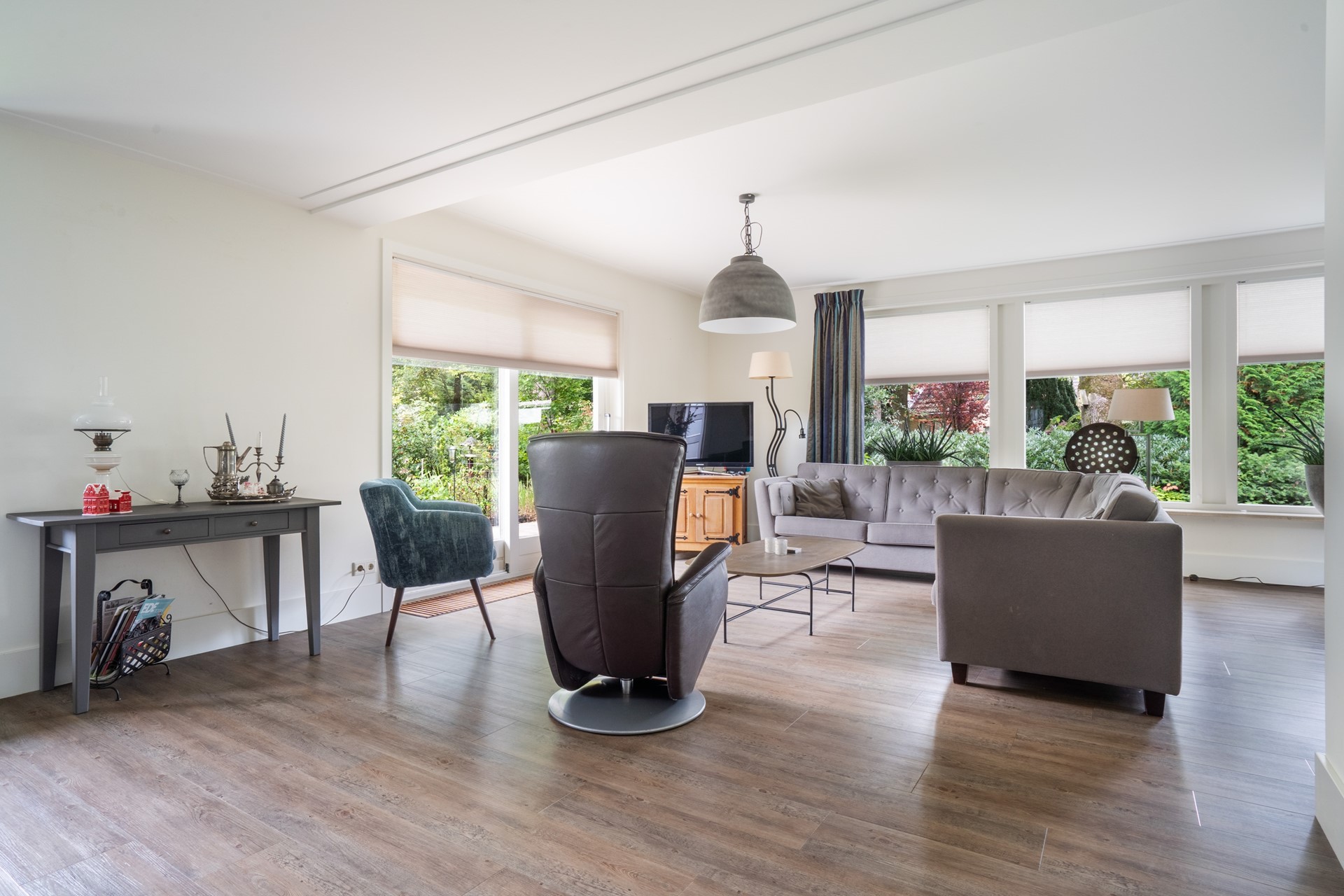De royale tuin rondom de woning is een heerlijke plek vol groen, beplanting en privacy, ideaal om volop van het buitenleven te genieten. Je kunt ontspannen onder de overkapping, op het bestraatte terras zitten of je groene vingers kwijt in de tuin. Een groot pluspunt is de vrijstaande garage. Met een kelder en vliering biedt deze voldoende ruimte voor opslag of eventueel als hobbyruimte. Parkeren is ook geen probleem: op de royale oprit is er ruimte voor minimaal vijf auto’s.