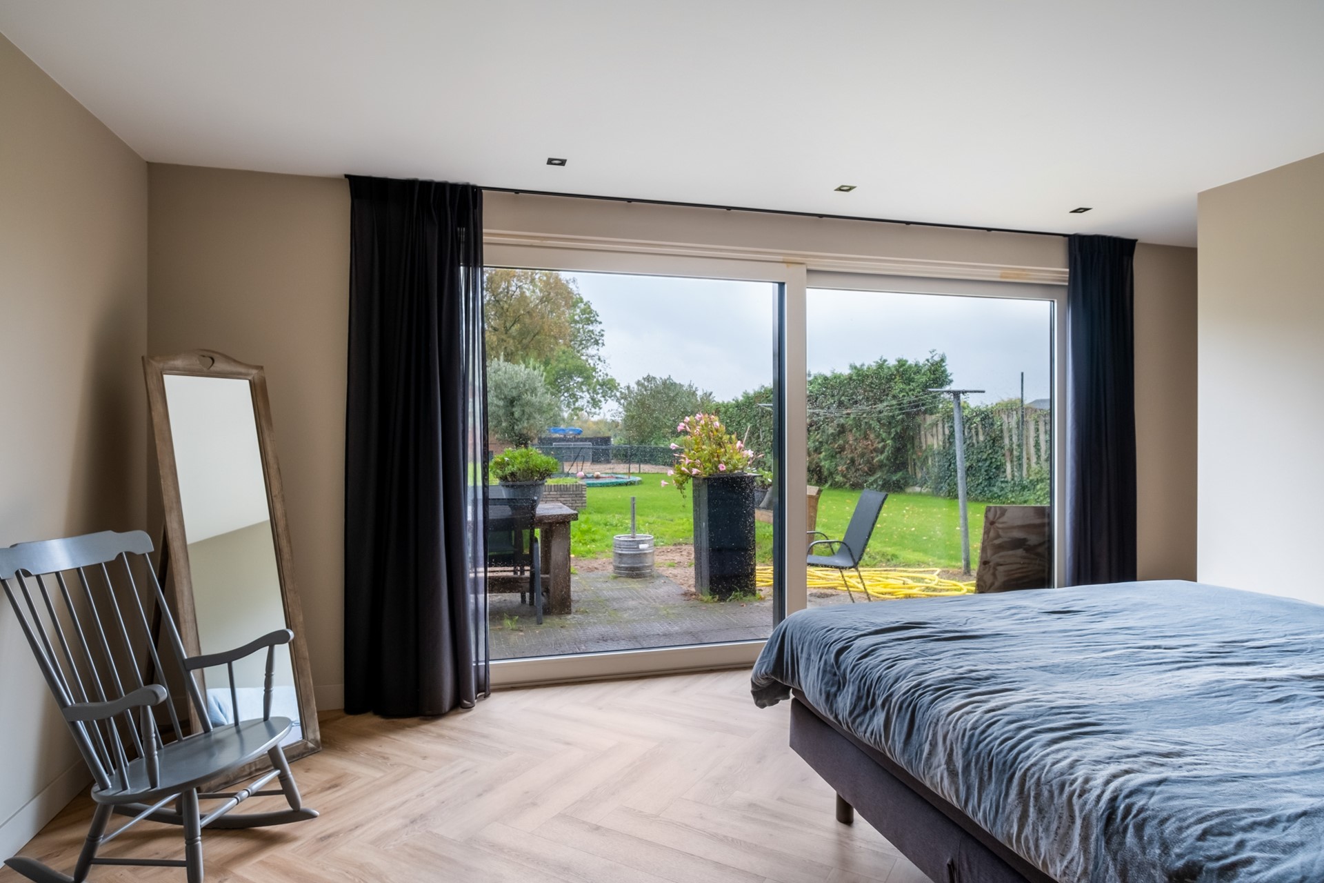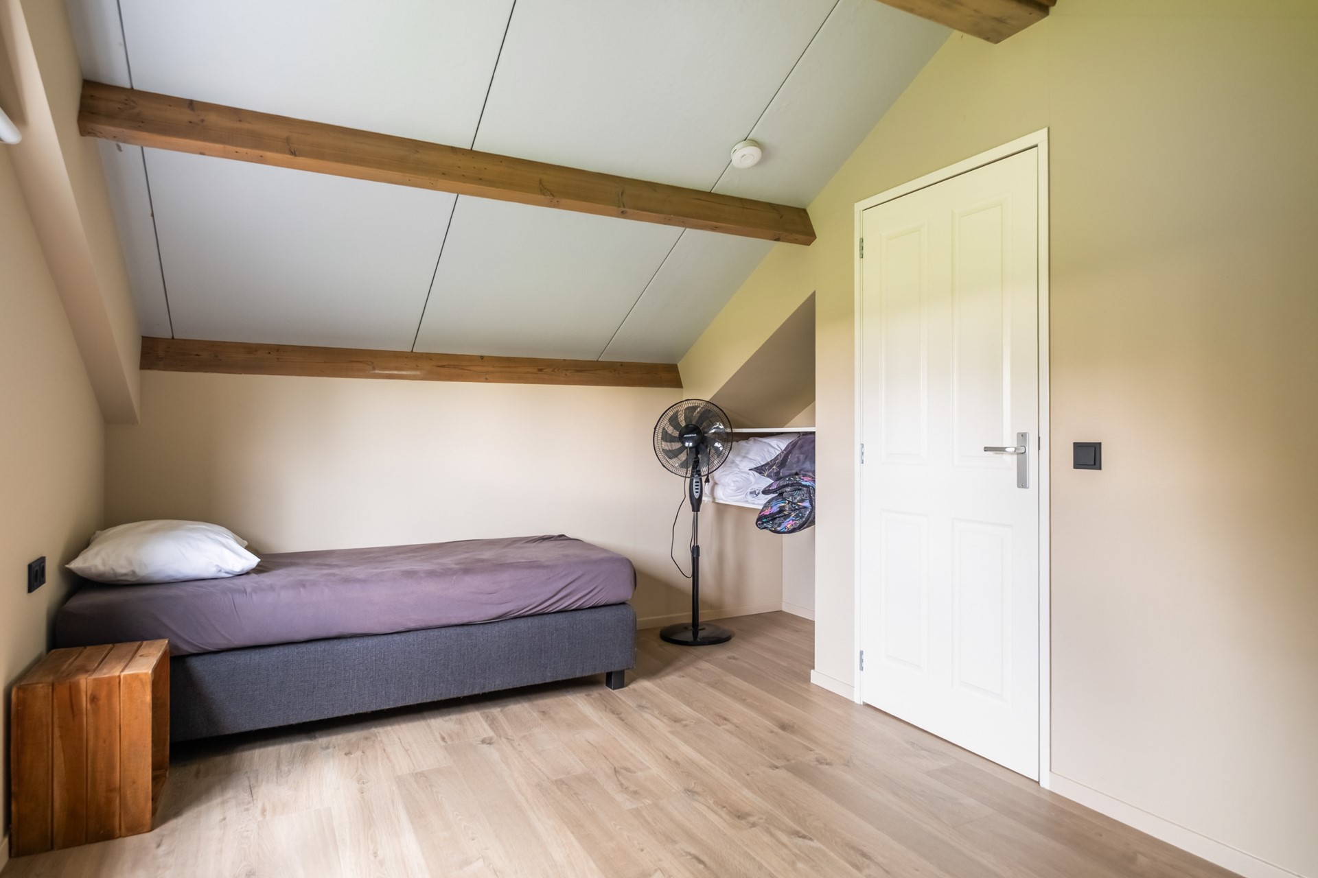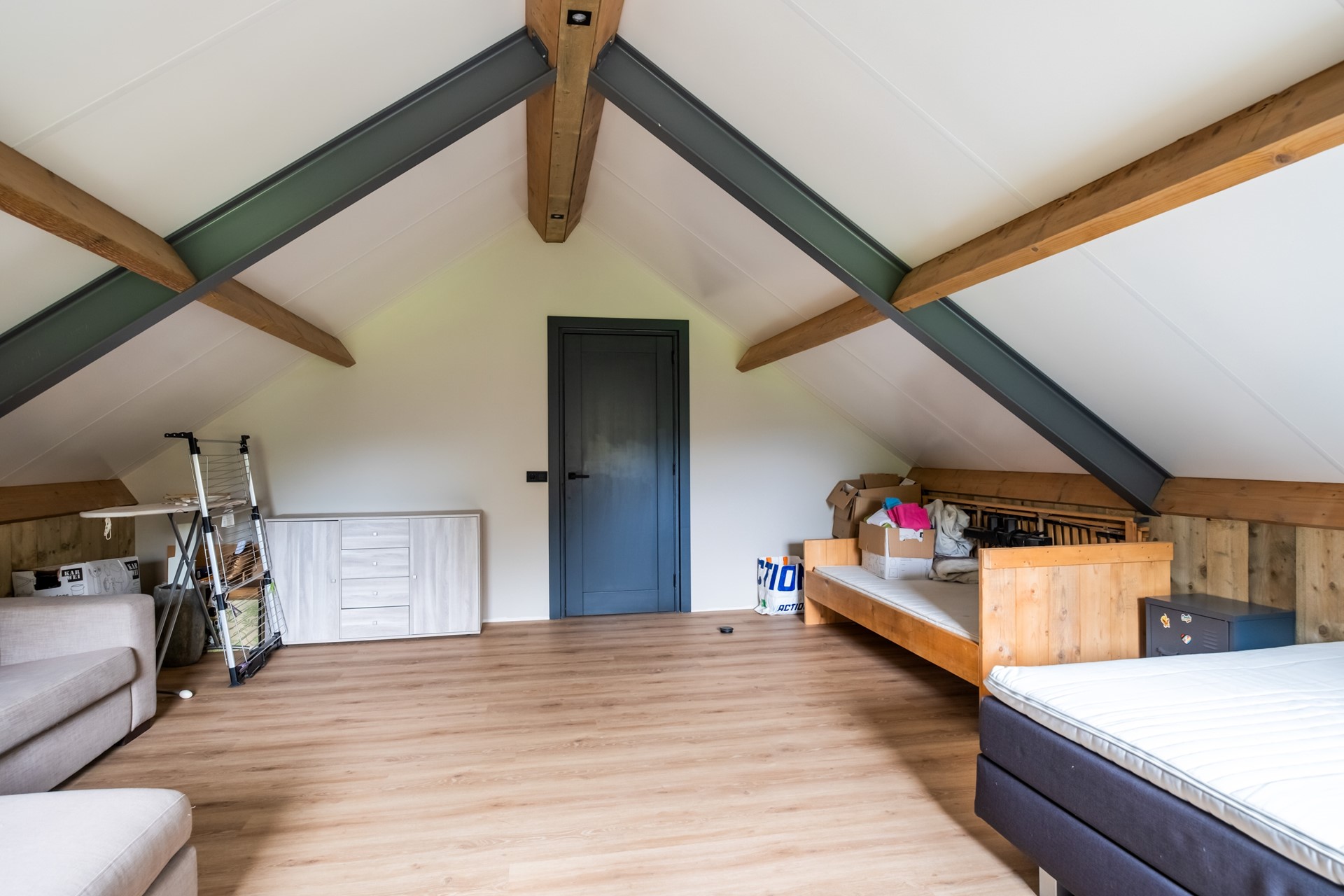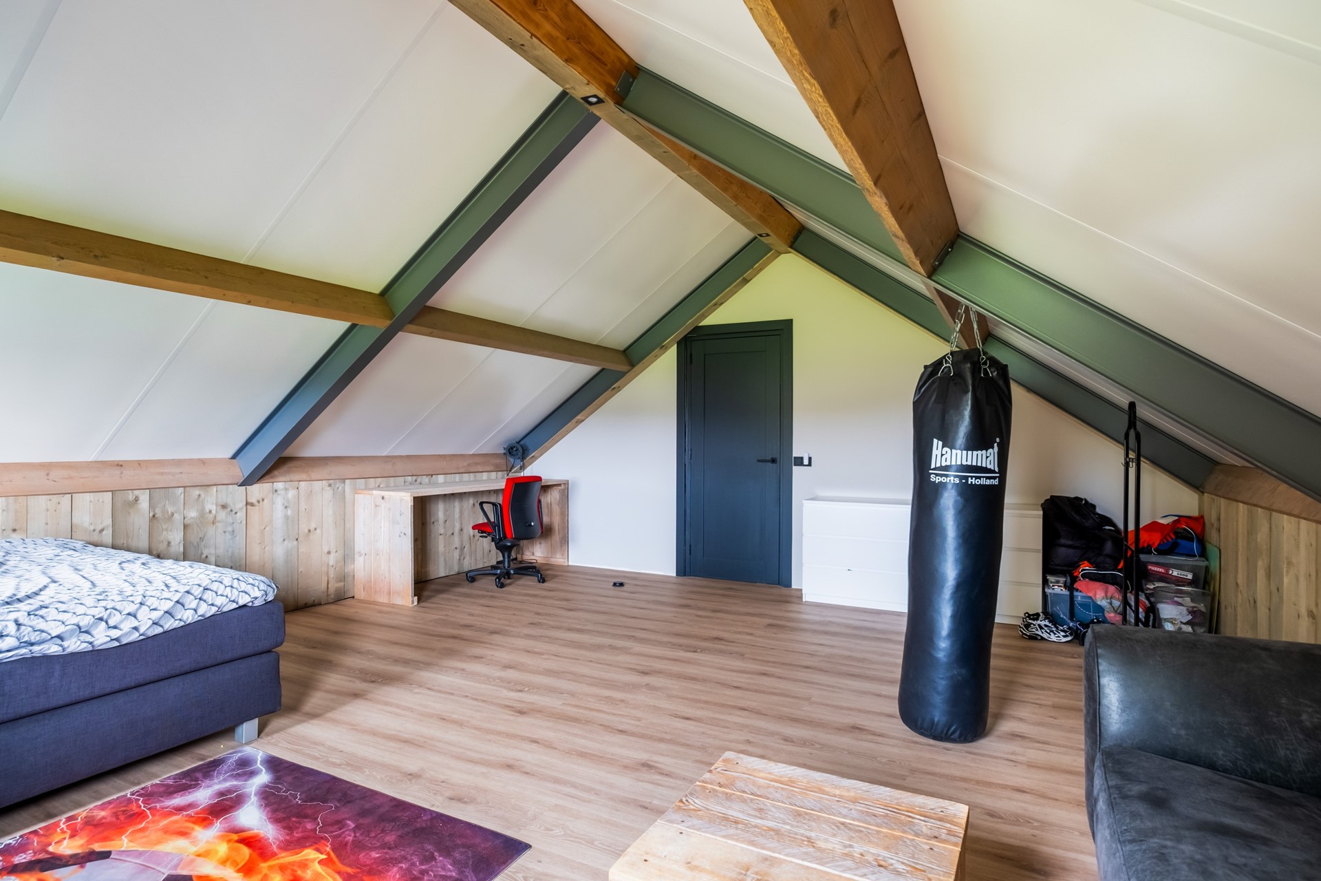 De riante tuin rondom de woning biedt een prachtig uitzicht over de omliggende landerijen en zorgt voor de gewenste privacy. Op het perceel bevindt zich daarnaast een ruime schuur, ideaal voor werken aan huis. De schuur is voorzien van een overheaddeur met toegang tot het garagegedeelte. Via een deur kom je in een hal met wasbak, wateraansluitingen en een toiletruimte. Vanuit de garage zijn bovendien meerdere bergruimtes bereikbaar. Aan de schuur is een vergunde Bed & Breakfast gesitueerd, volledig uitgerust met een eigen keukenblok (inductiekookplaat, afzuigkap, koelkast en oven), een badkamer met inloopdouche, wastafelmeubel en toilet, een slaapkamer met inbouwkast en een 2e slaapkamer op de verdieping. De B&B beschikt over een eigen terras en een leuk uitzicht op de dierenweide, bijvoorbeeld geschikt voor hobbymatig kleinvee zoals alpaca’s. Tot slot is er ruim voldoende parkeergelegenheid op eigen terrein. Deze unieke woning biedt veel verschillende gebruiksmogelijkheden, die we graag tijdens een bezichtiging nader toelichten.