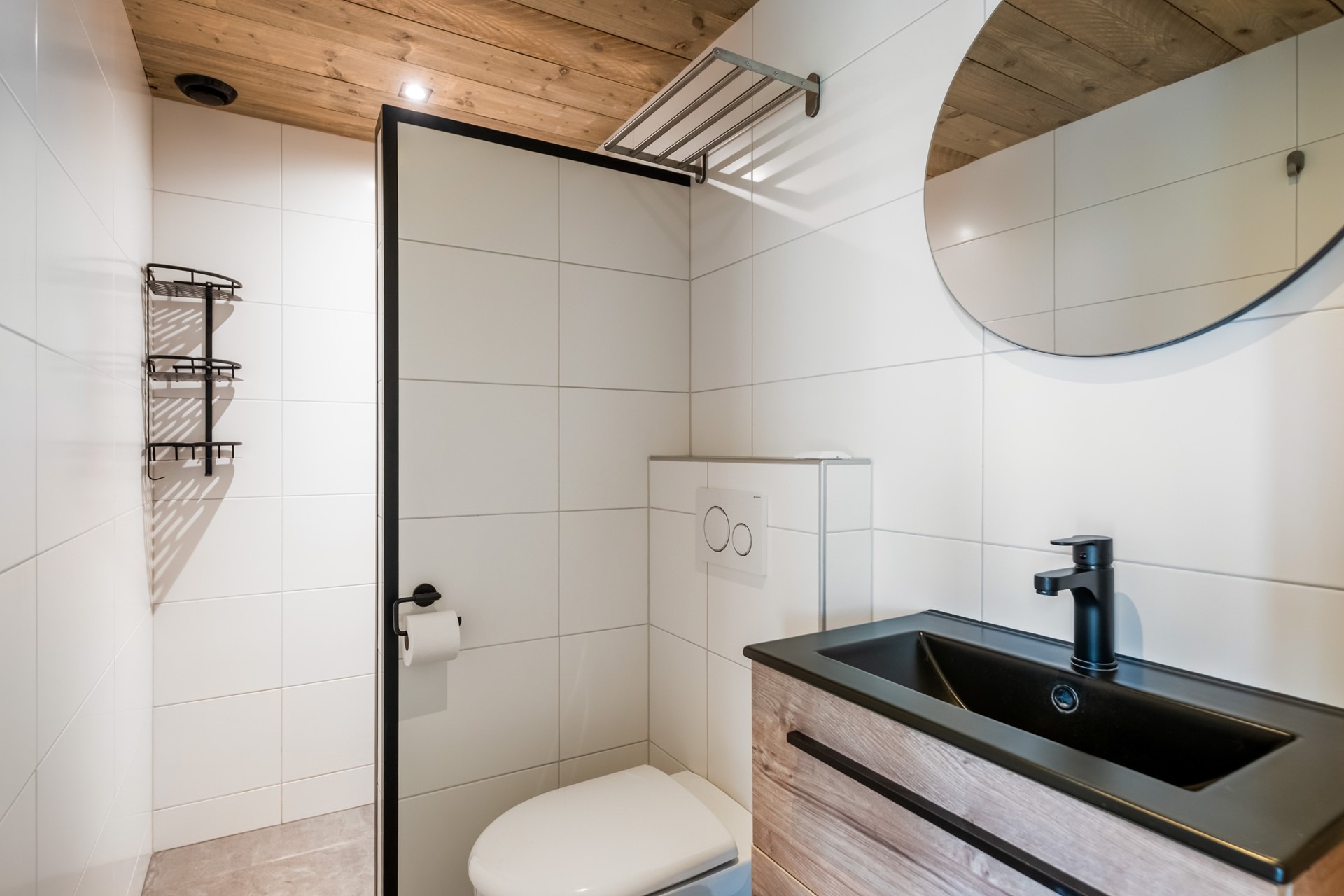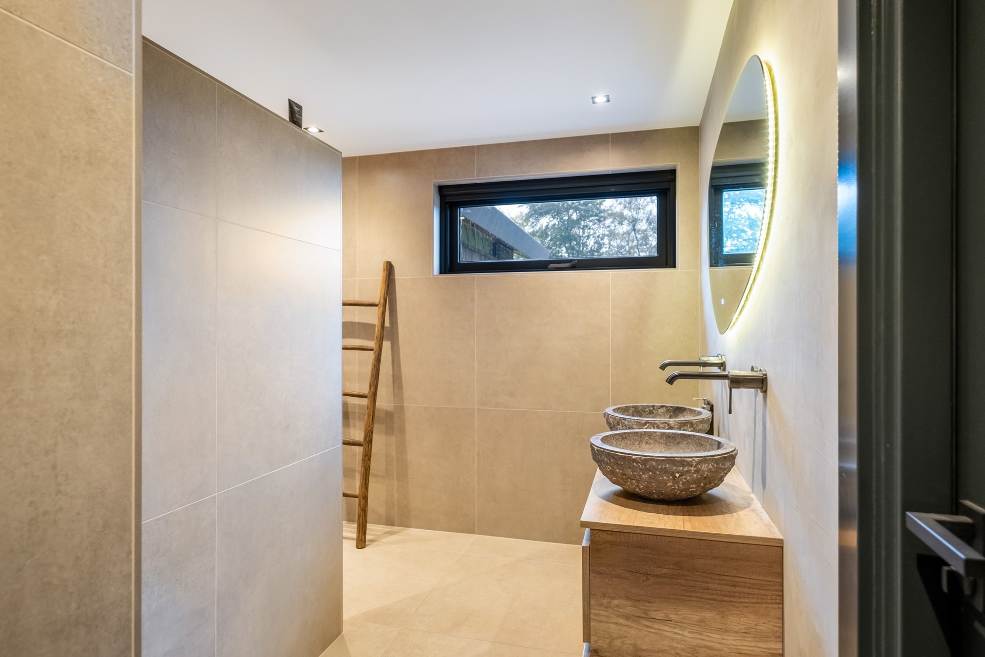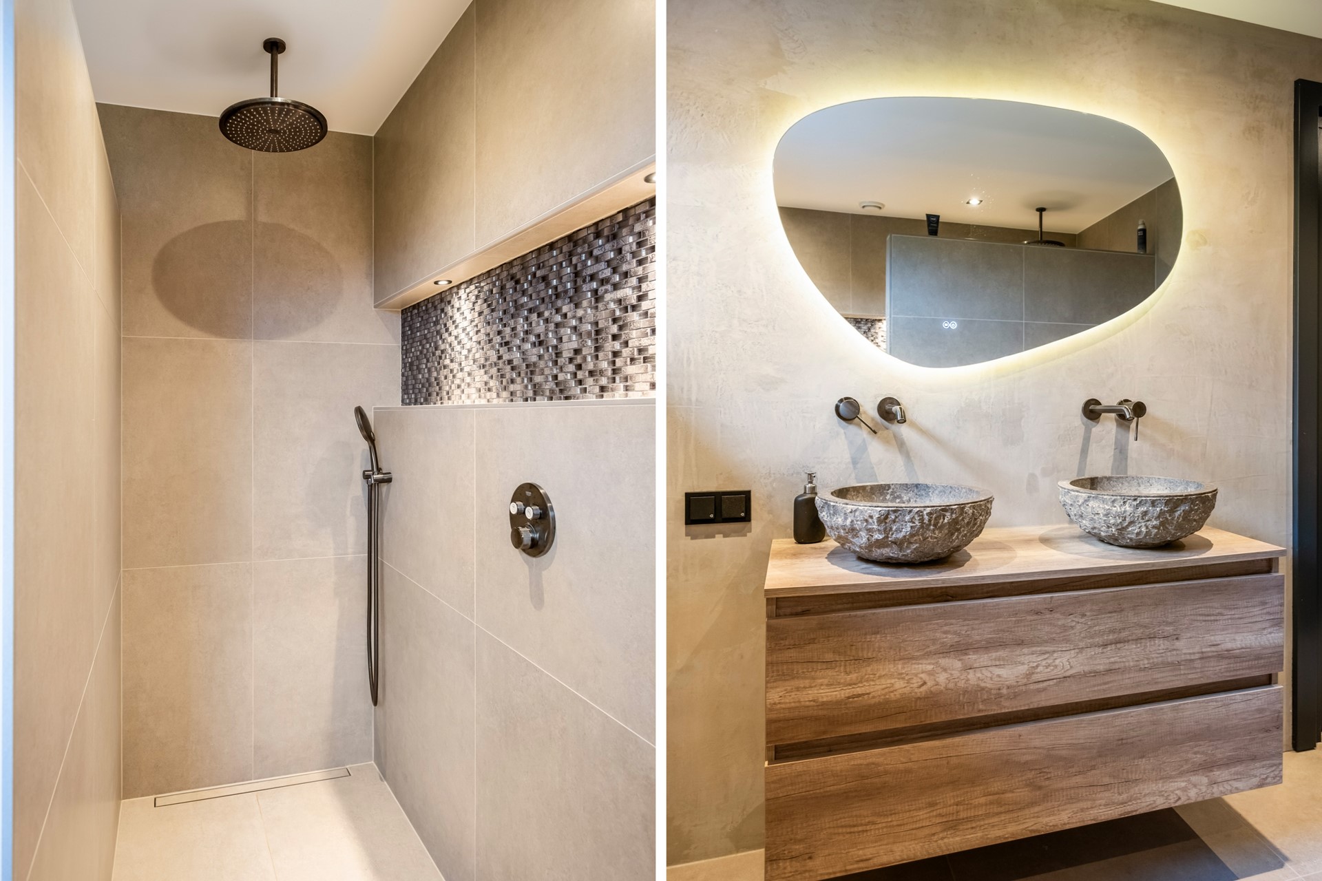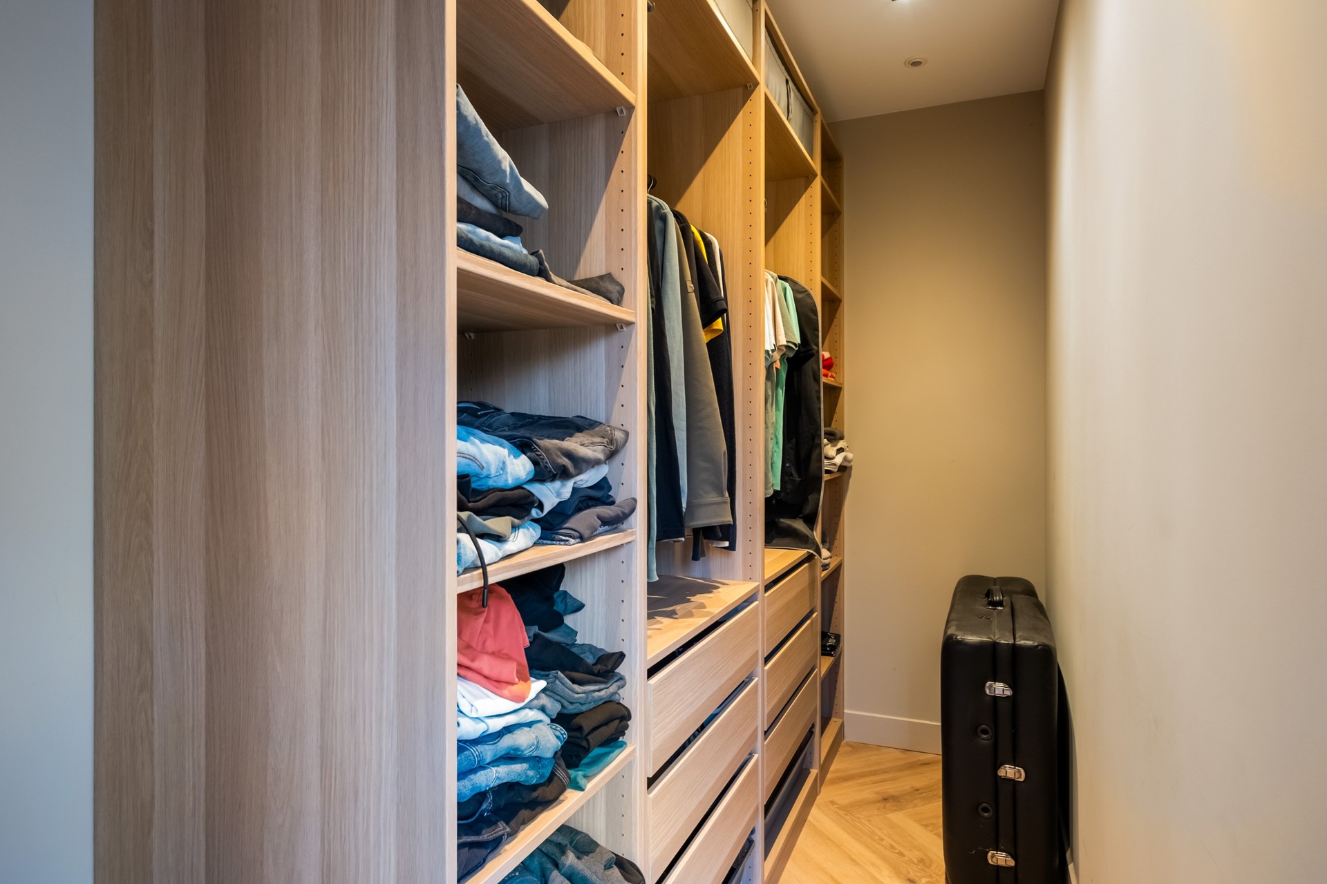 Via de vaste trap bereik je de overloop op de eerste verdieping, die toegang biedt tot twee slaapkamers, een wasruimte en een toiletruimte met wandcloset en fontein. Beide slaapkamers zijn ruim opgezet en bieden voldoende mogelijkheden om te slapen, studeren of ontspannen, bijvoorbeeld voor oudere kinderen. De wasruimte is praktisch ingericht met aansluitingen voor wasmachine en droger.