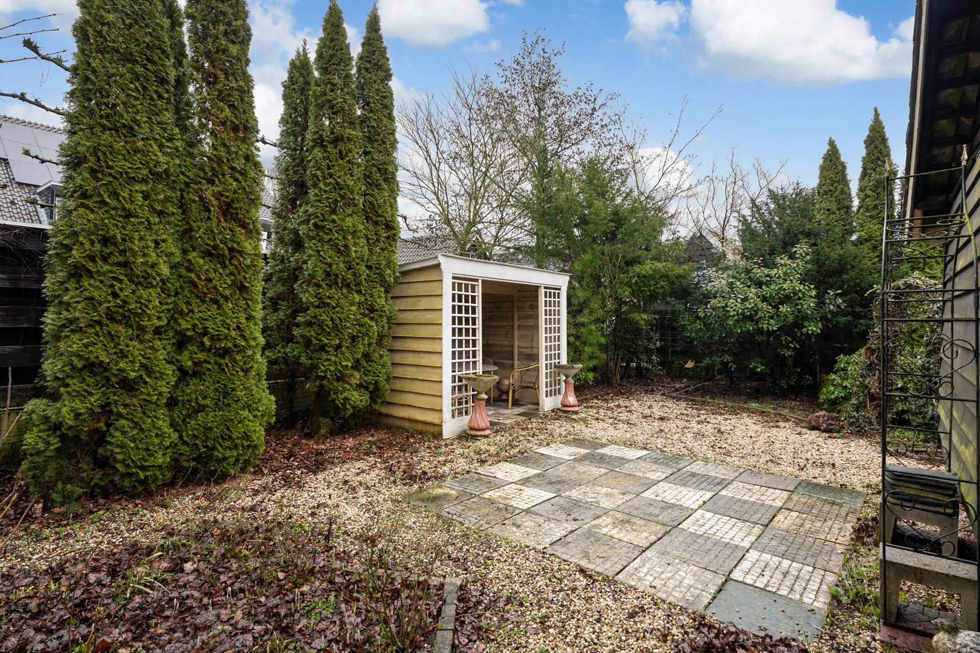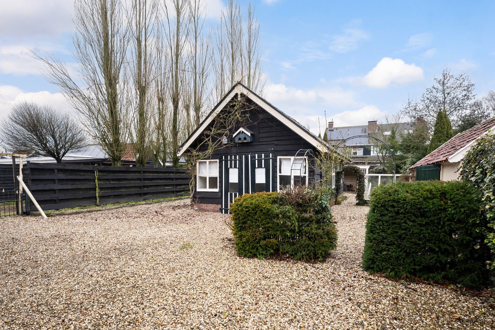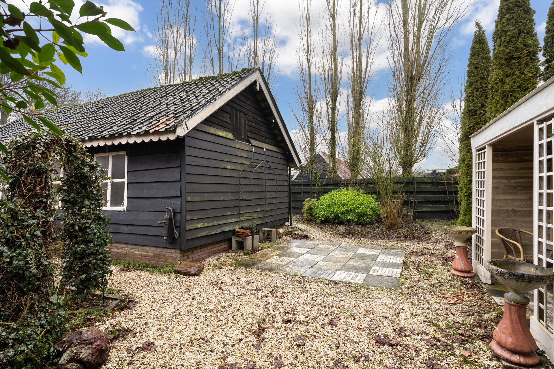 Ook buiten verrast deze woning. De tuin is uitzonderlijk ruim voor een locatie nabij het centrum van het dorp en biedt volop privacy. Achterin bevinden zich diverse opstallen met uiteenlopende gebruiksmogelijkheden – ideaal voor opslag, hobby of werk aan huis. Aan de voorzijde parkeer je eenvoudig meerdere auto’s op eigen terrein, wat het comfort compleet maakt. Dit is zo’n woning die je zelden tegenkomt: monumentaal, vrijstaand, ruim en op een toplocatie. Een kans die je eigenlijk niet wilt laten lopen. Neem gerust contact op voor een bezichtiging en ervaar zelf de sfeer van deze bijzondere plek.