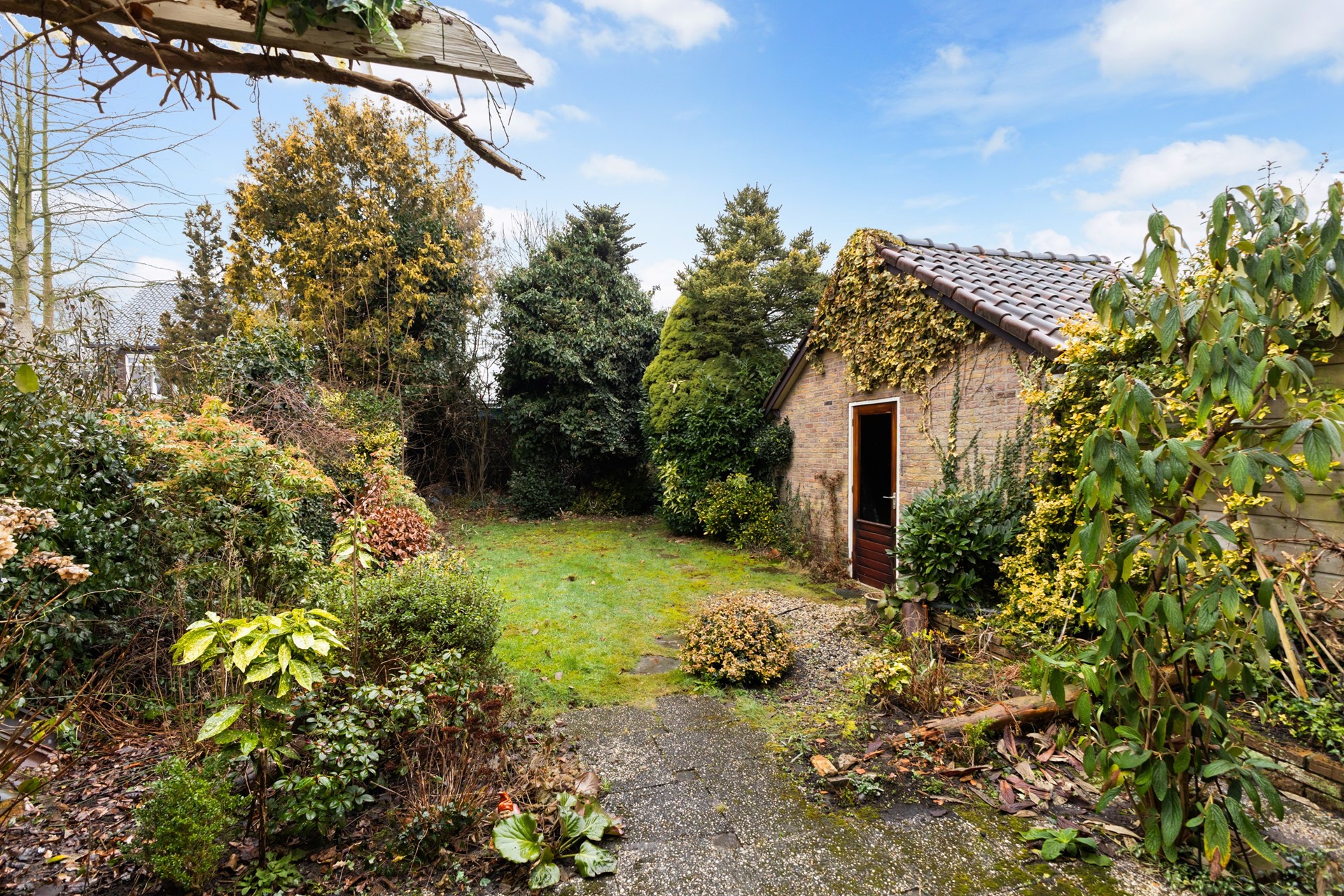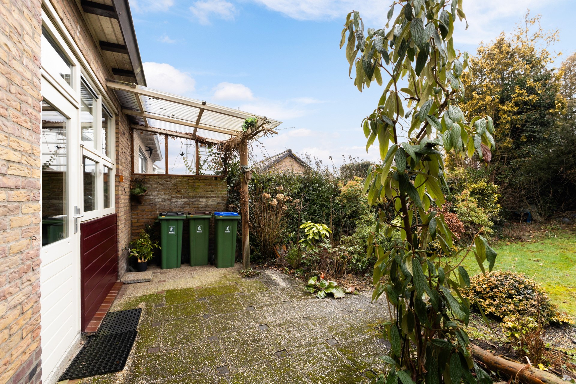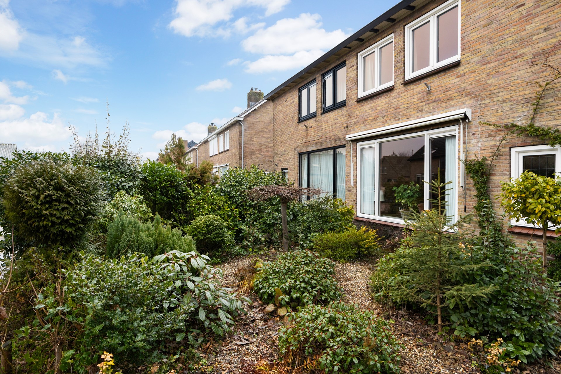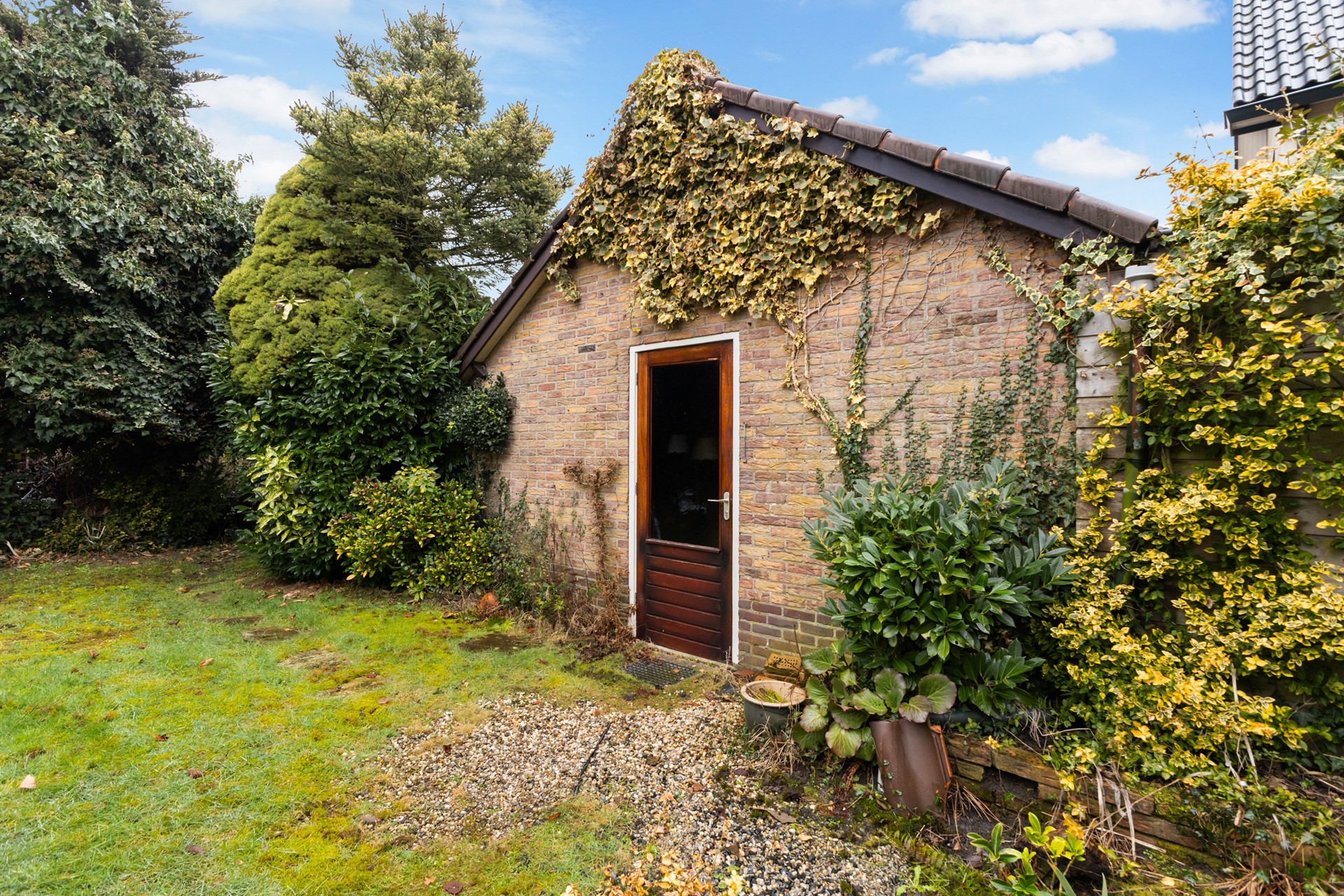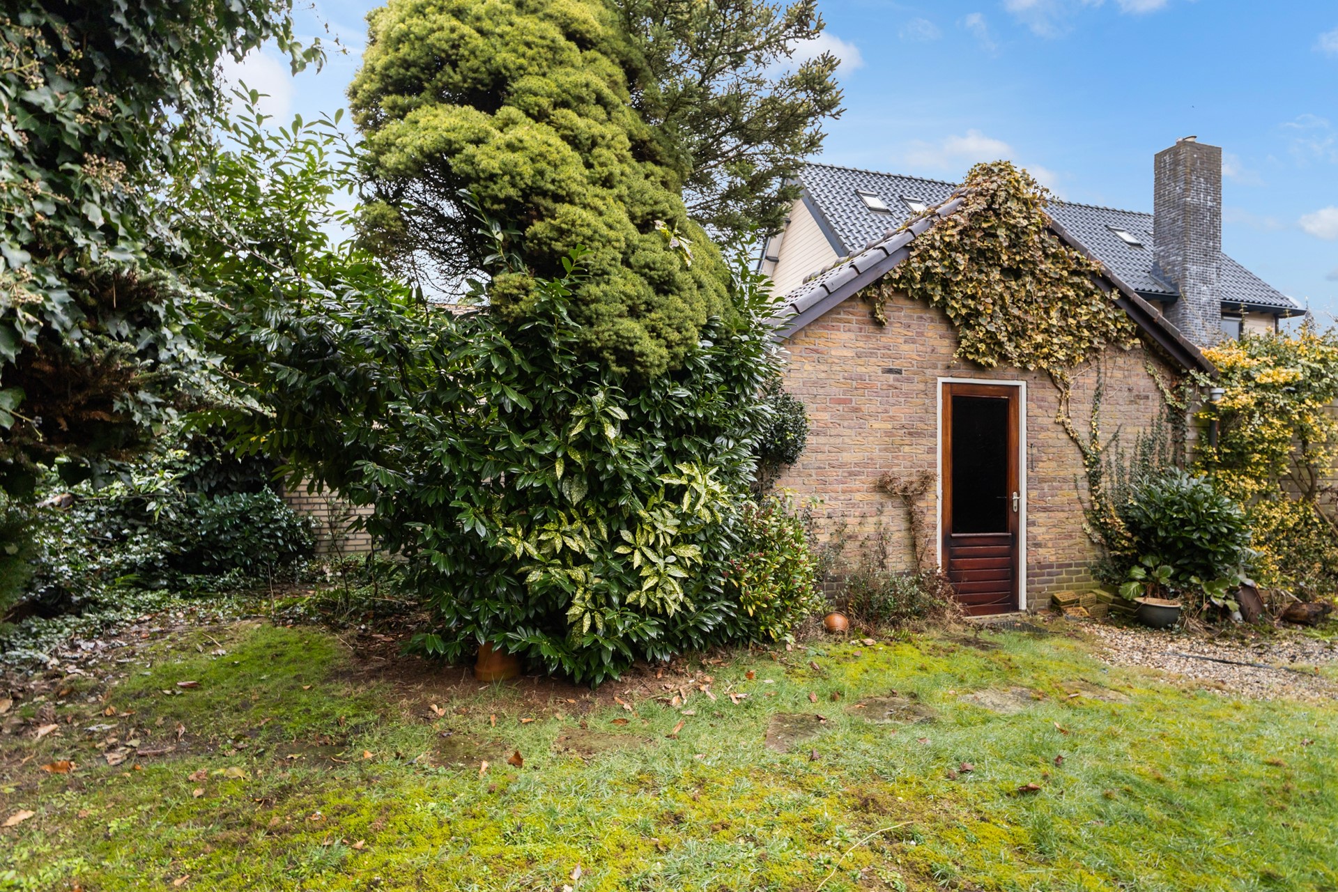De groene tuin vormt samen met de garage en de royale oprit een mooie aanvulling op de woning. Met een ruim gazon, een bestraat terras en volop beplanting geniet je hier van veel privacy en een fijne buitenruimte. De stenen garage biedt volop mogelijkheden, bijvoorbeeld voor het stallen van een auto, fietsen of extra opslag. Daarnaast is er op de ruime oprit plaats voor maar liefst drie auto’s op eigen terrein.